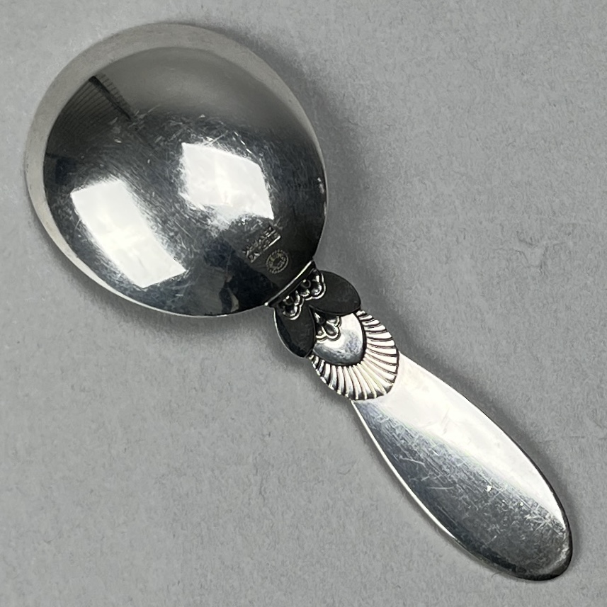 Georg Jensen sterling silver sugar spoon, in the “Cactus” pattern, designed by Gundorph Albertus (Danish, 1887 – 1969) and introduced in 1930, 3-7/8″ L, 26 grams. CONDITION: SHIPPING: In-House Shipping Available. Please read our Shipping Policies and Terms and Conditions
