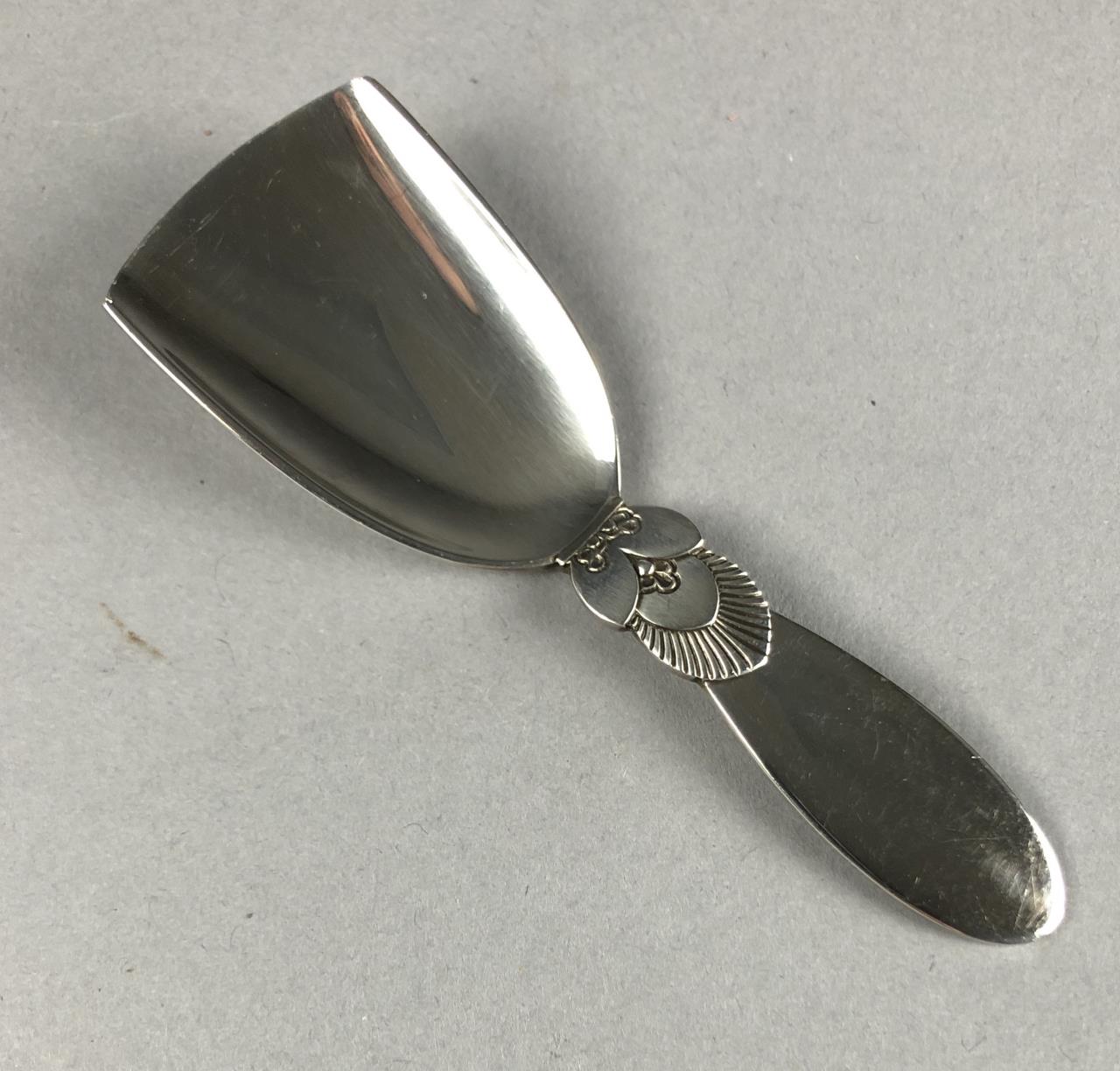 Georg Jensen sterling silver sugar shovel, or sugar scoop, in the “Cactus” pattern, designed by Gundorph Albertus (Danish, 1887 – 1969) and introduced in 1930, 3-7/8″ L, 24 grams. CONDITION: SHIPPING: In-House Shipping Available. Please read our Shipping Policies and Terms and Conditions