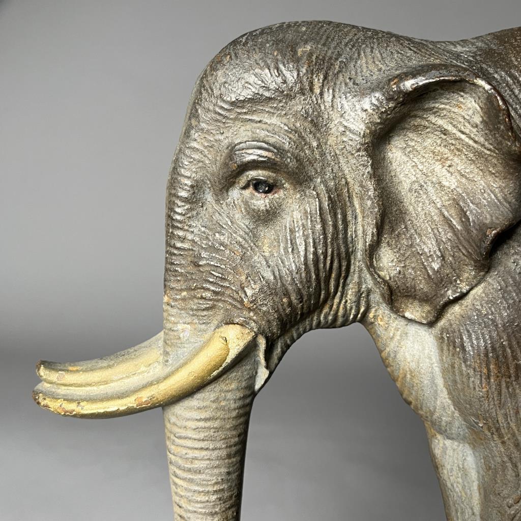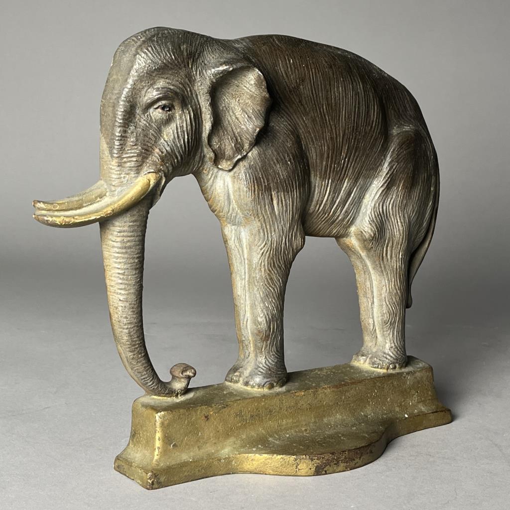 Bradley & Hubbard elephant door stop, painted cast iron, circa early 20th Century, 10-1/2″ (H). CONDITION: SHIPPING: In-House Shipping Available. Please read our Shipping Policies and Terms and Conditions