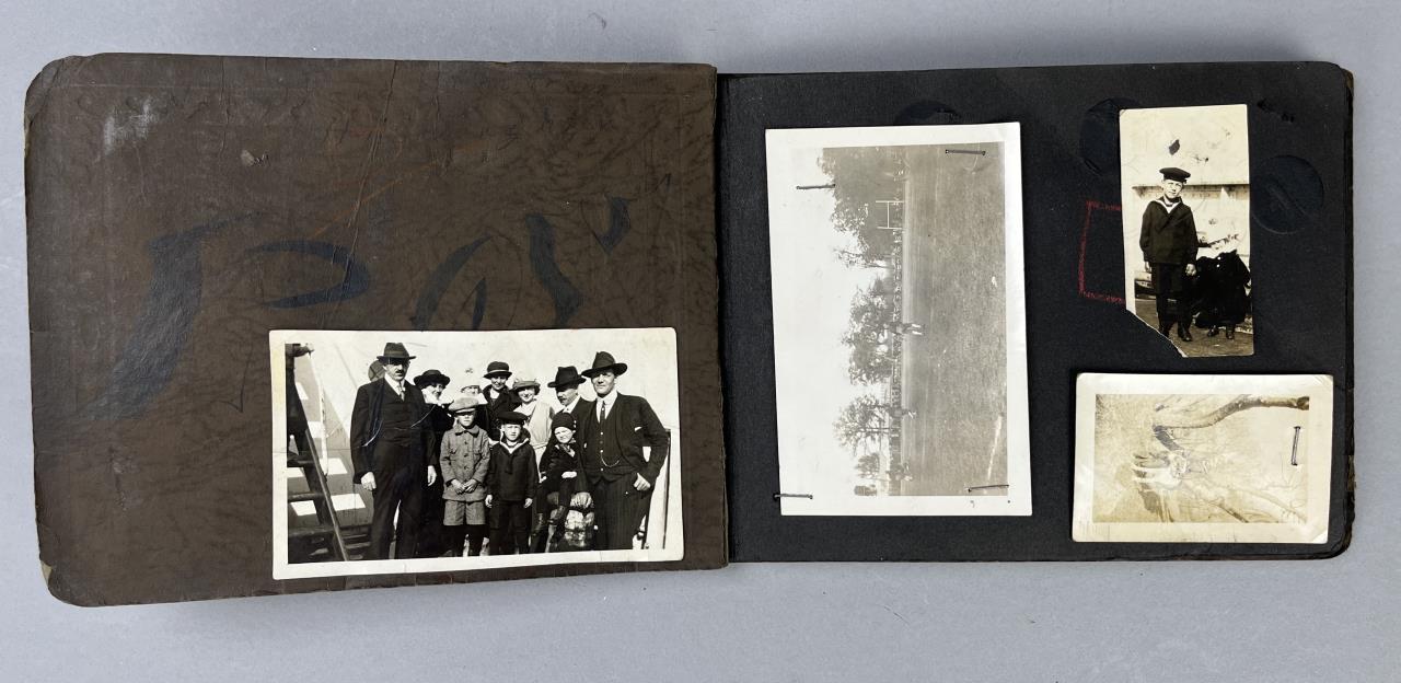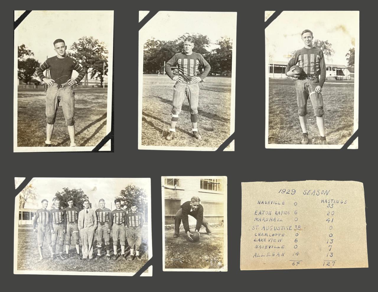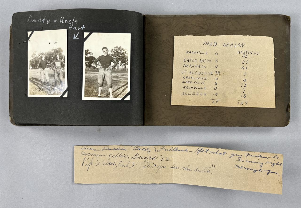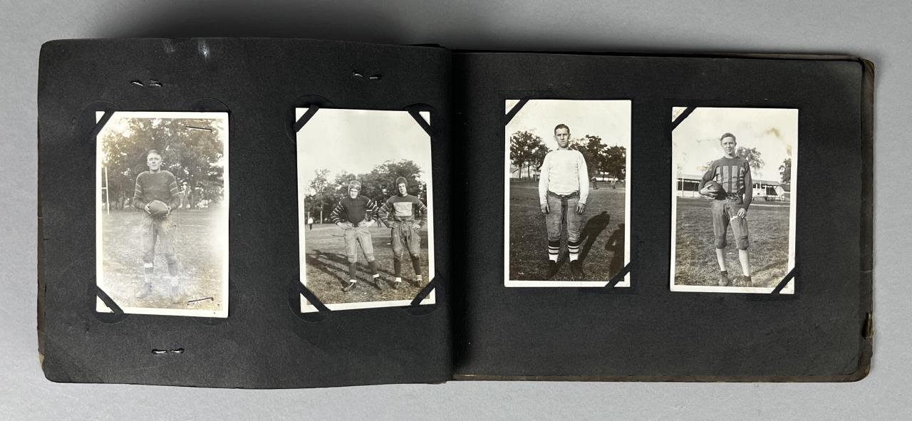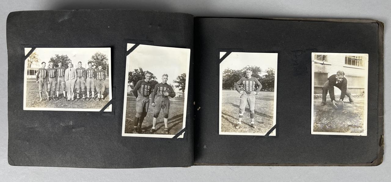 Album of black and white photographs, with several possibly featuring players from the 1929 Hastings (Michigan) High School Football team, as well as hand written notes, 8″ x 5-3/4″. CONDITION: SHIPPING: In-House Shipping Available. Please read our Shipping Policies and Terms and Conditions