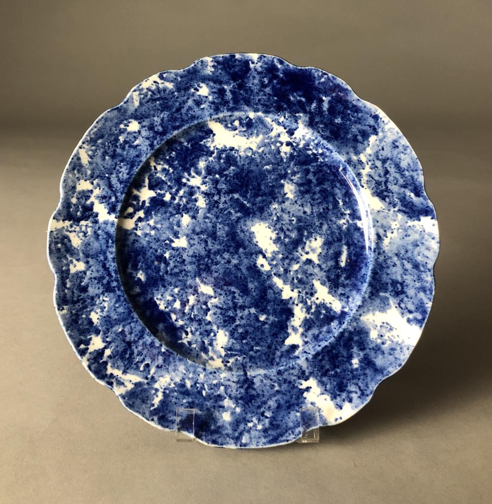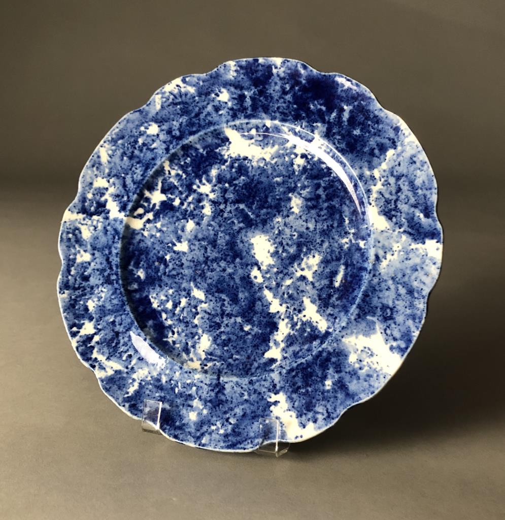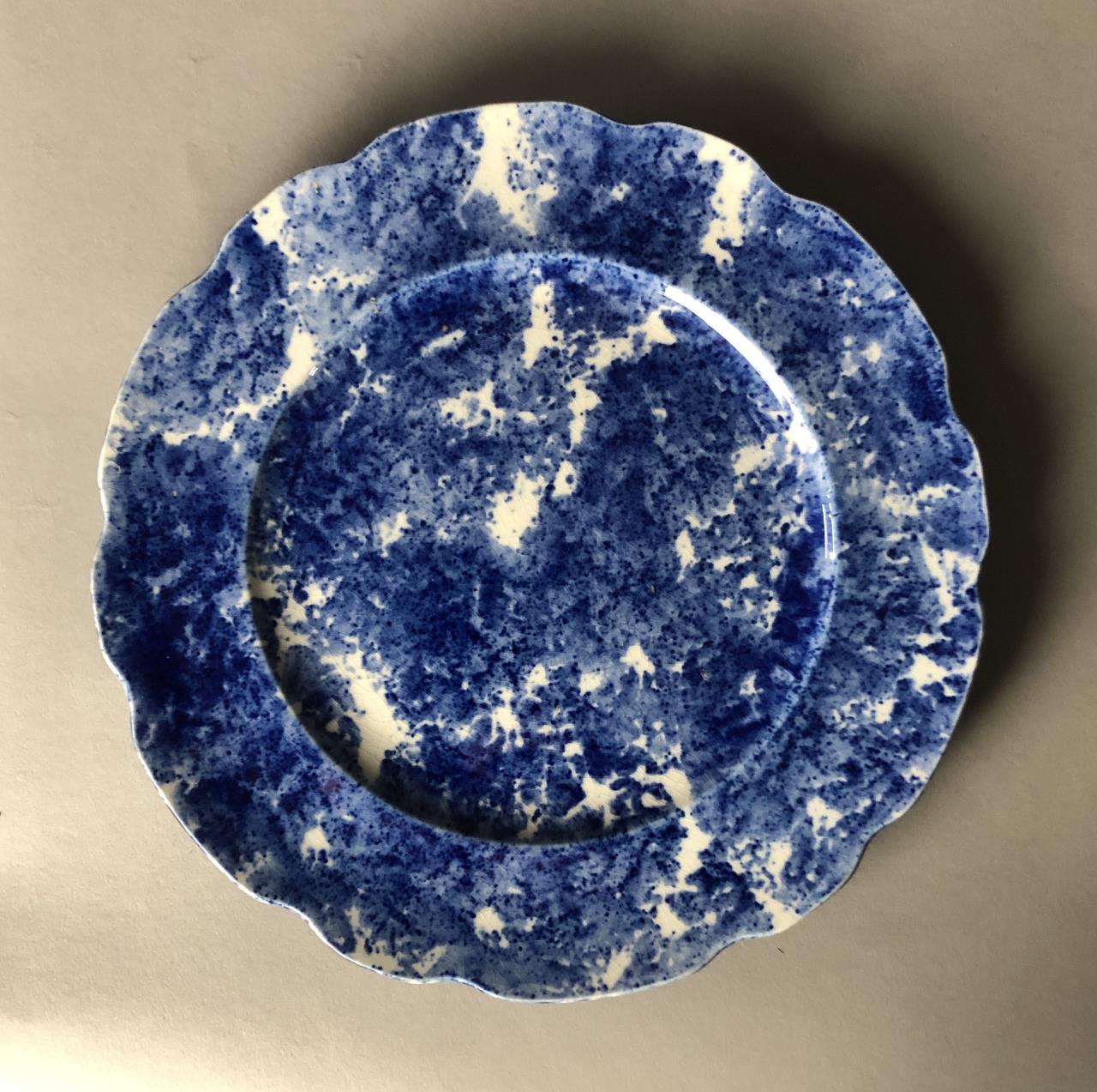 Scalloped edge, blue and white spongeware, dinner plate, unmarked, 10-1/4″ in diameter. CONDITION: SHIPPING: In-House Shipping Available. Please read our Shipping Policies and Terms and Conditions