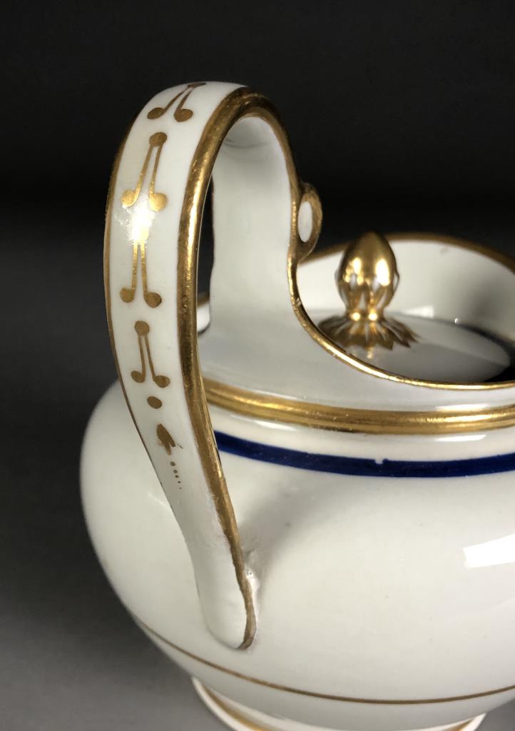 Antique armorial porcelain teapot, with underglaze blue beehive mark on underside, 5-5/8″ in height. CONDITION: Possible older professional repair to handle. SHIPPING: In-House Shipping Available. Please read our Shipping Policies and Terms and Conditions