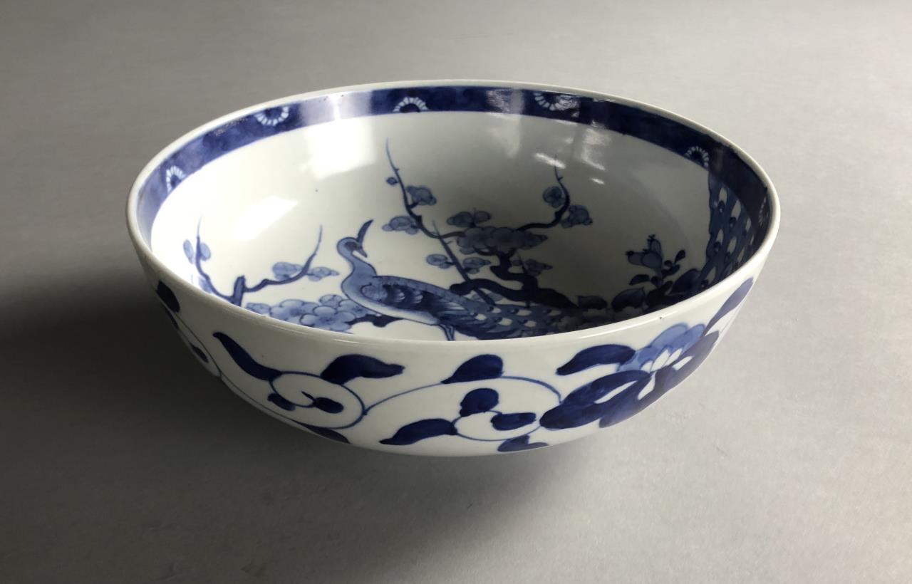 Japanese Arita blue and white porcelain bowl, Meiji Period, circa late 19th Century, 9-1/2″ x 3-1/2″. CONDITION: SHIPPING: In-House Shipping Available. Please read our Shipping Policies and Terms and Conditions