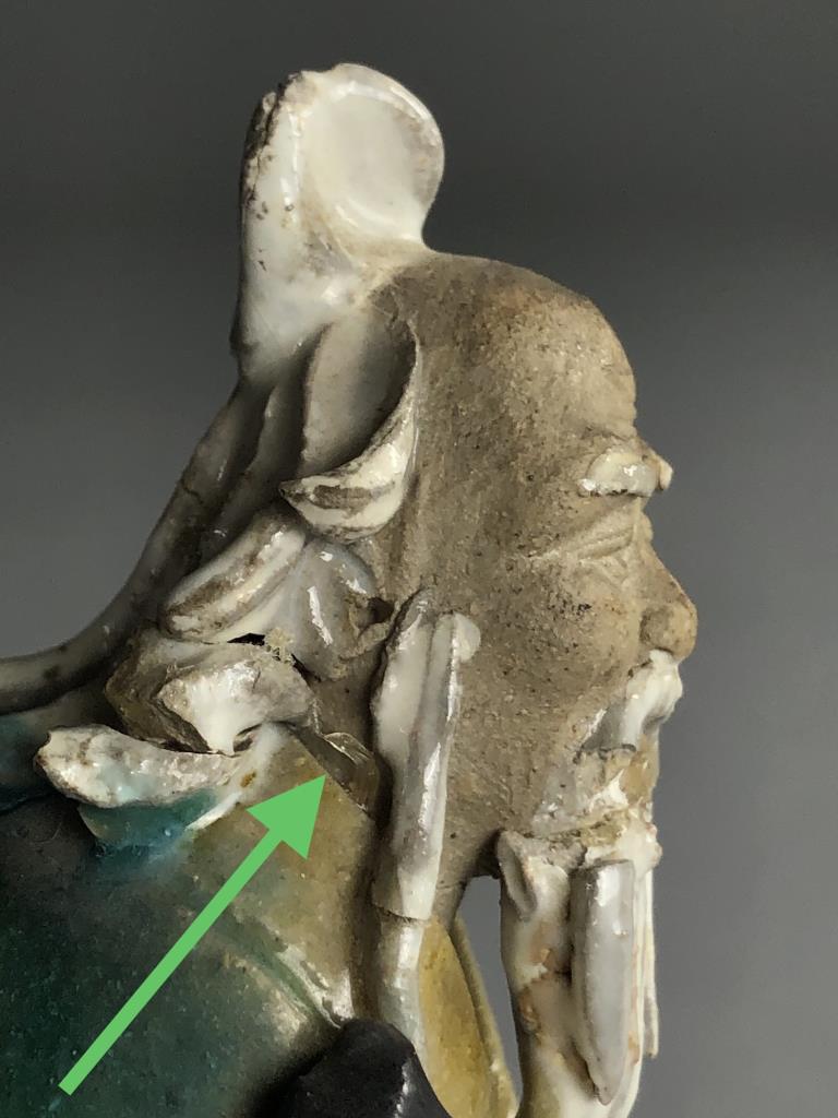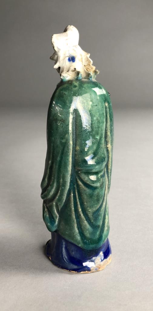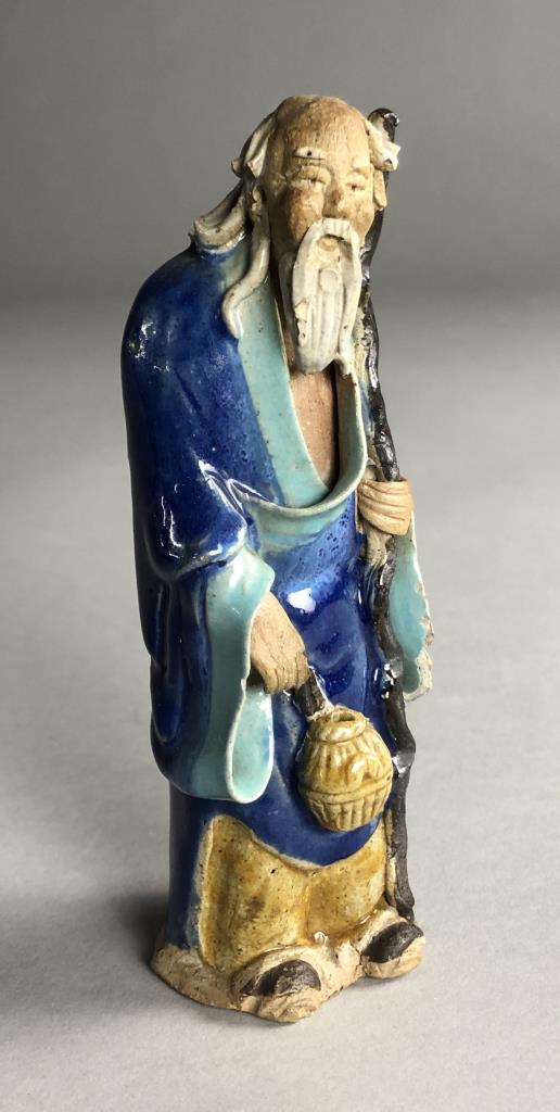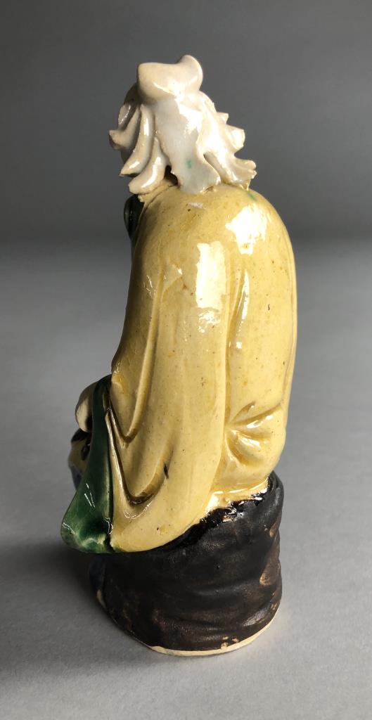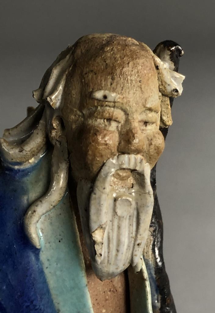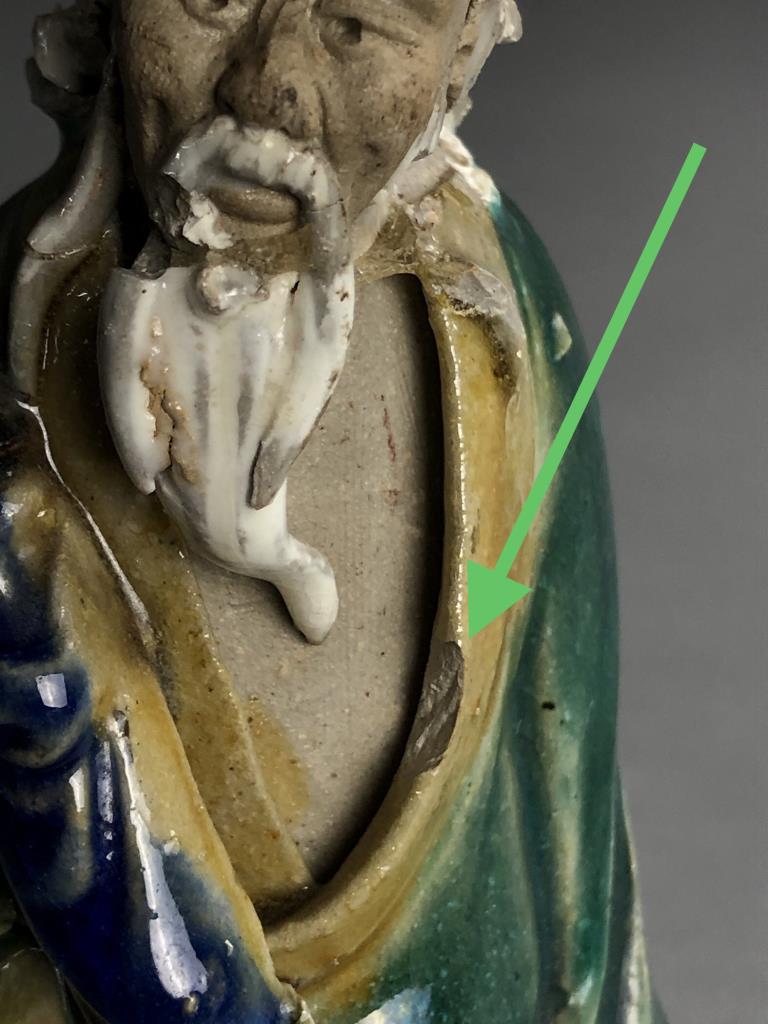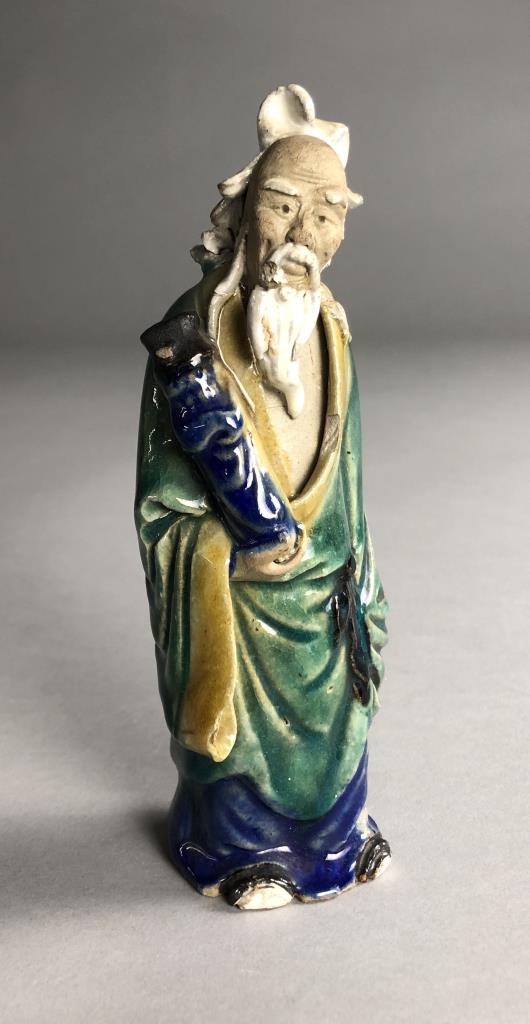 Three Chinese mud men figures, circa early 20th Century, each with impressed “China” on bottom, the largest is approximately 6-1/2″ tall. CONDITION: The head on the largest one has been broken and repaired, there is also a chip on the edge of the collar of the robe, please see last three photos. SHIPPING: In-House Shipping Available. Please read our Shipping Policies and Terms and Conditions
