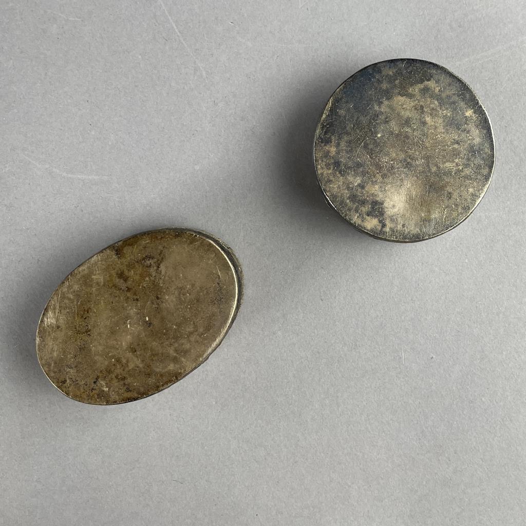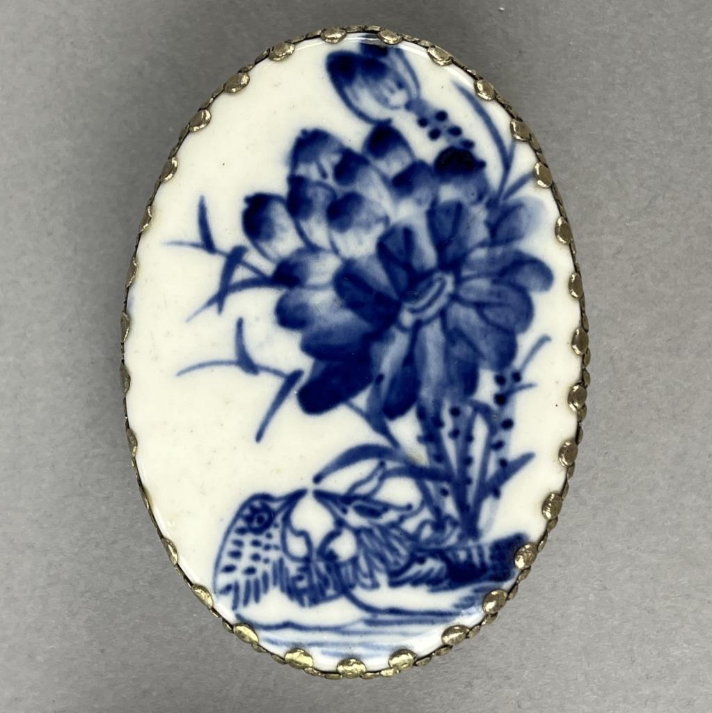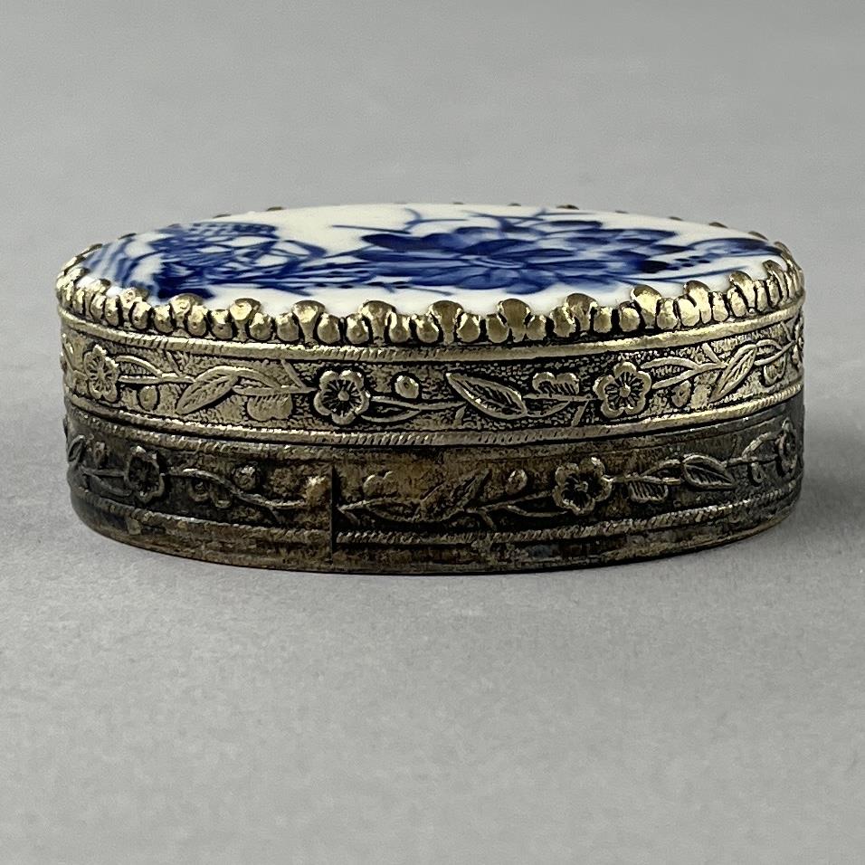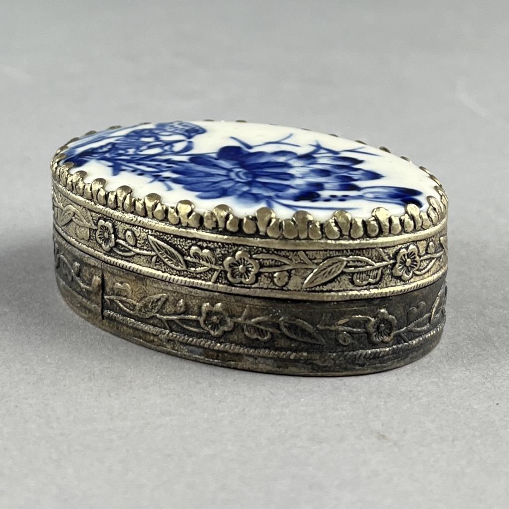 Two silverplated compacts, or trinket boxes, with fragments of either 18th or 19th Century Chinese blue and white porcelain, possibly brought up from one of the many shipwrecks that was discovered during 1980s, the larger one is approximately 2-9/16″ x 1-13/16″ x 7/8″. CONDITION: SHIPPING: In-House Shipping Available. Please read our Shipping Policies and Terms and Conditions