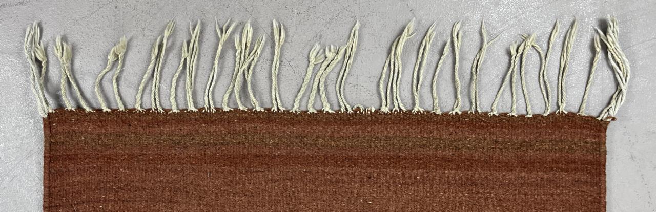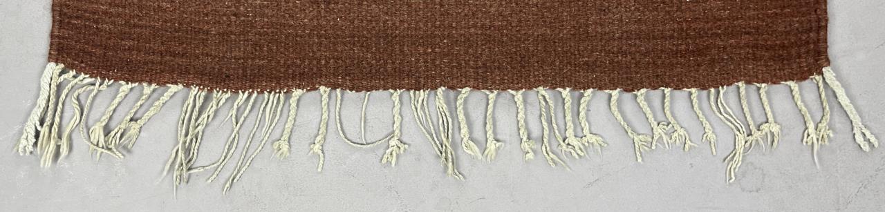 Handwoven Mexican Zapotec rug, most likely from the Oaxacan region, depicting a stylized image of interlocking or zigzagging fish, wool and cotton, circa mid 20th Century, approximately 4′ 11″ x 2′ 5″ (not including fringe). CONDITION: SHIPPING: In-House Shipping Available. Please read our Shipping Policies and Terms and Conditions