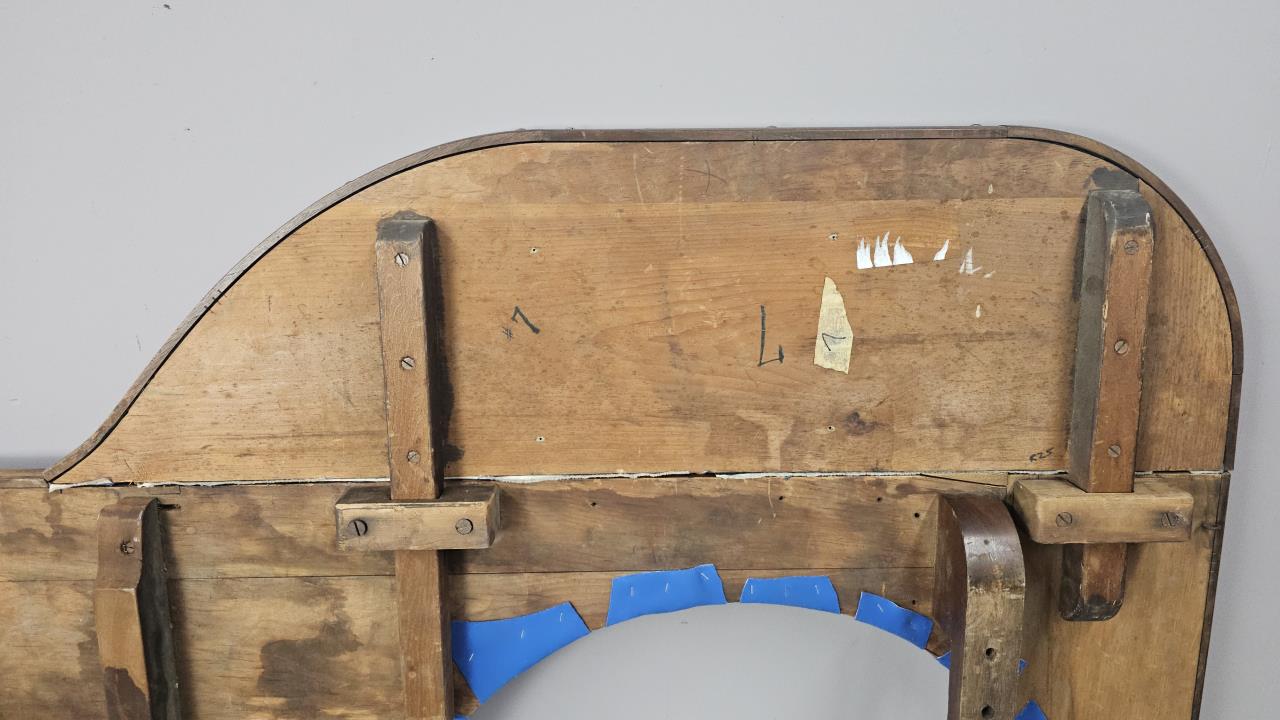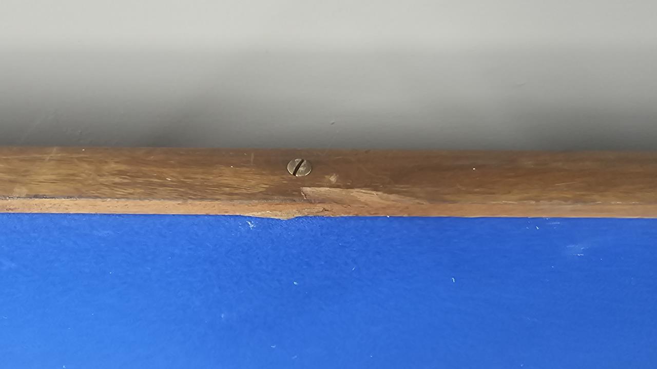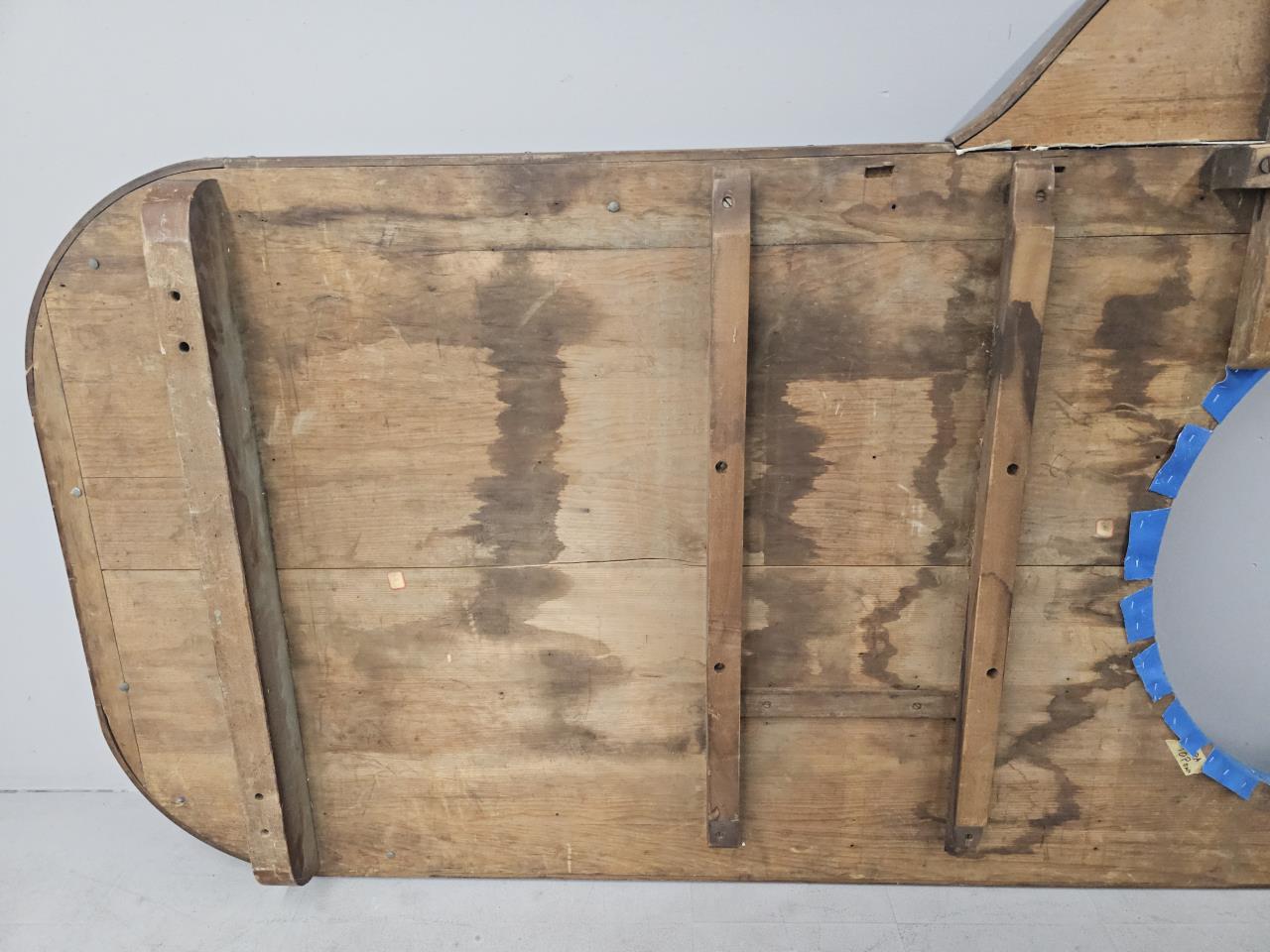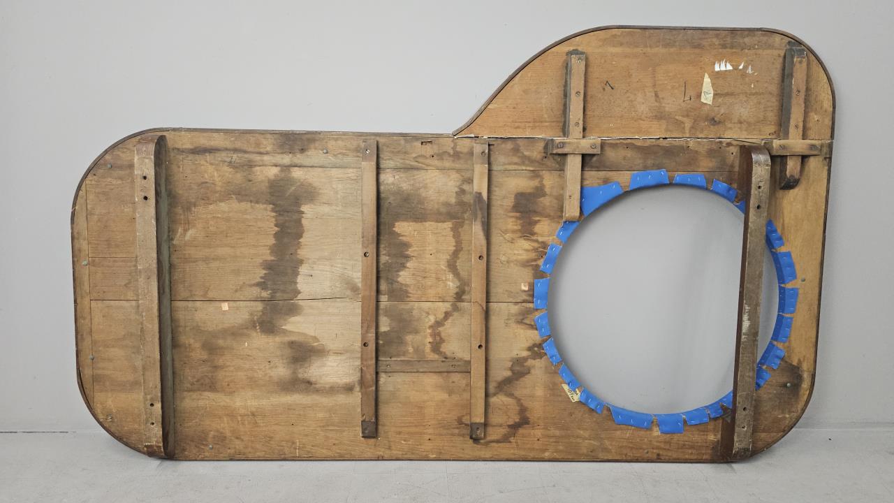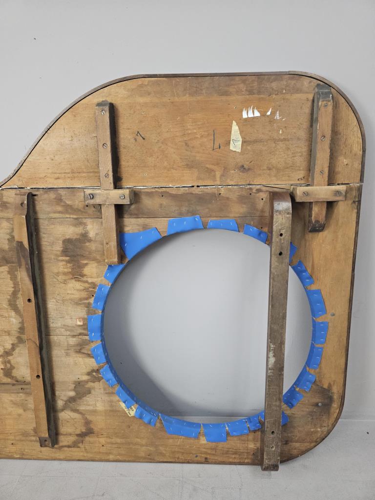 Measures 96″ long and 56.5″ wide at the dealer station. Blue felt has been replaced on an older casino or saloon tabletop. CONDITION: Wear appropriate for age. Wood shows wear. Some staining to the felt. SHIPPING: In-House Shipping Available. Please read our Shipping Policies and Terms and Conditions