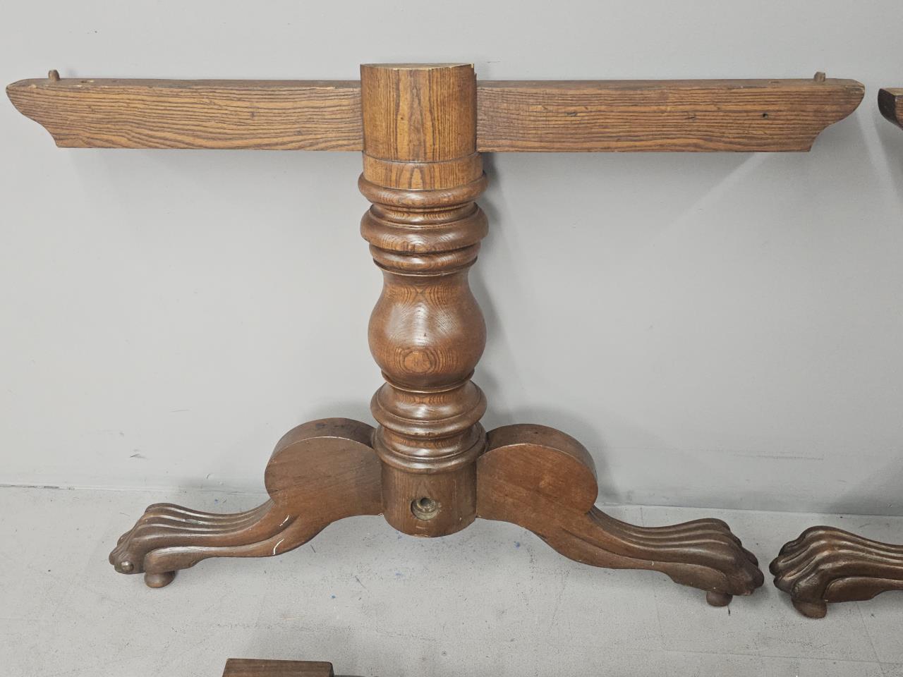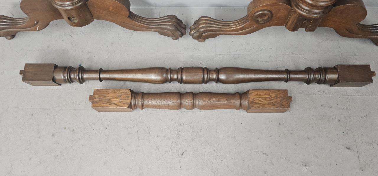 Antique roulette or faro table legs with 2 cross pieces. The longer is not an exact wood match to the legs. Hardware to attach the support piece to the legs is not included. Shorter cross piece is 34.25″ long without the knob on the end. The longer is 62.5″ long. The legs are 32″ tall. CONDITION: Wear appropriate to age and use. The wood is scuffed and worn as shown. SHIPPING: Local pick-up or third party shipping only for this lot. Please see the Shipping Policy for information on suggested shippers. We recommend the Pak Mail Store of Battle Creek to assist you. Please contact the shipper of your choice for shipping estimates on this lot. Refer to the Shipping section in our full Terms and Conditions for all information on shipping.