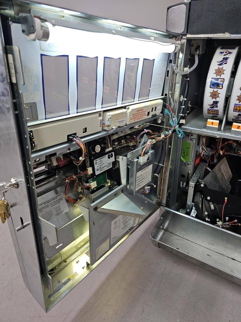 This machine is being sold for home or collector use only. Buyers are responsible for ensuring compliance with local laws and regulations regarding private ownership of gaming machines. Due to size and weight, buyer is responsible for transport or moving arrangements. CONDITION: The machine presents in clean used condition, consistent with prior commercial use. Cabinet surfaces show typical handling marks, minor scuffs, and some wear to the chrome trim. The front and side graphics remain colorful and intact. Internals appear complete with reels, wiring, validator, and ticket printer in place. The LCD screen and reel window are clean. Keys are included, and both doors open smoothly. Overall, this is a solid working example suitable for collectors or game room display.