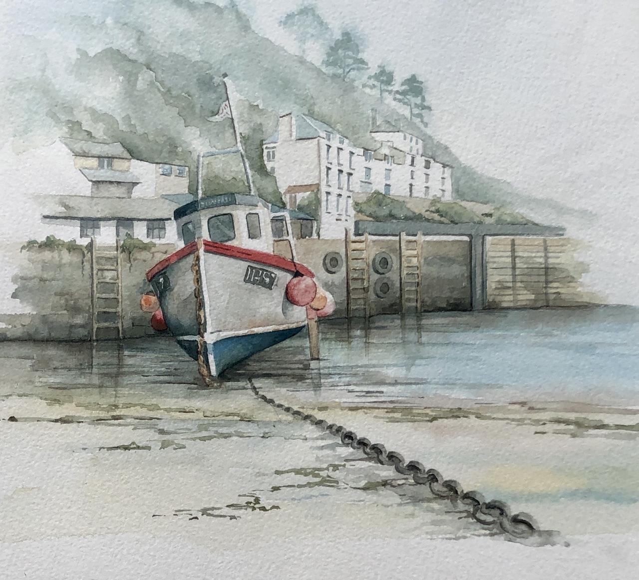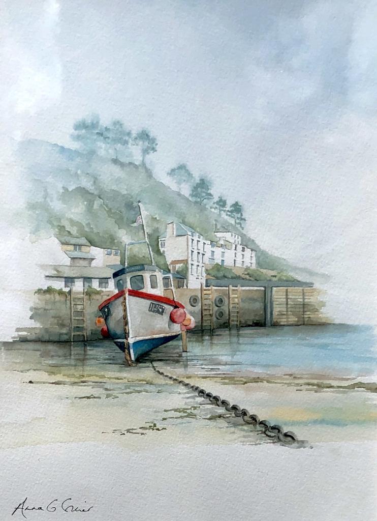 Anna G. Collier Cornish Harbor Watercolor Painting