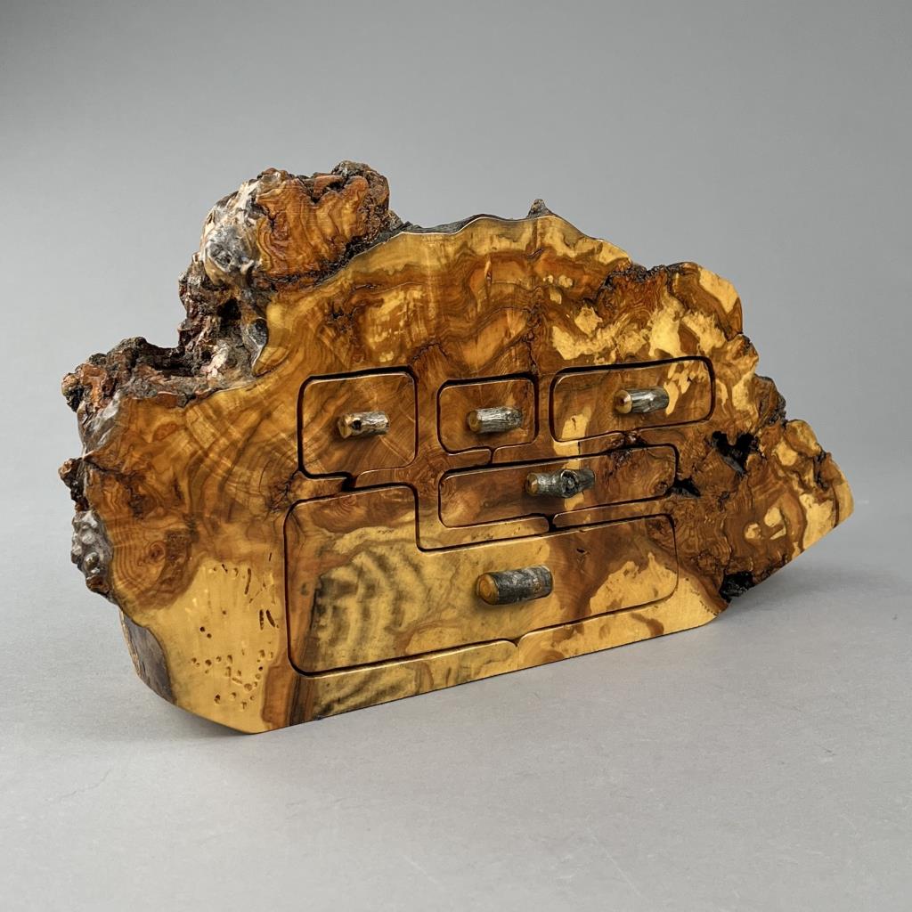 John Koch Artisan Live Edge Burl Wood Jewelry Box