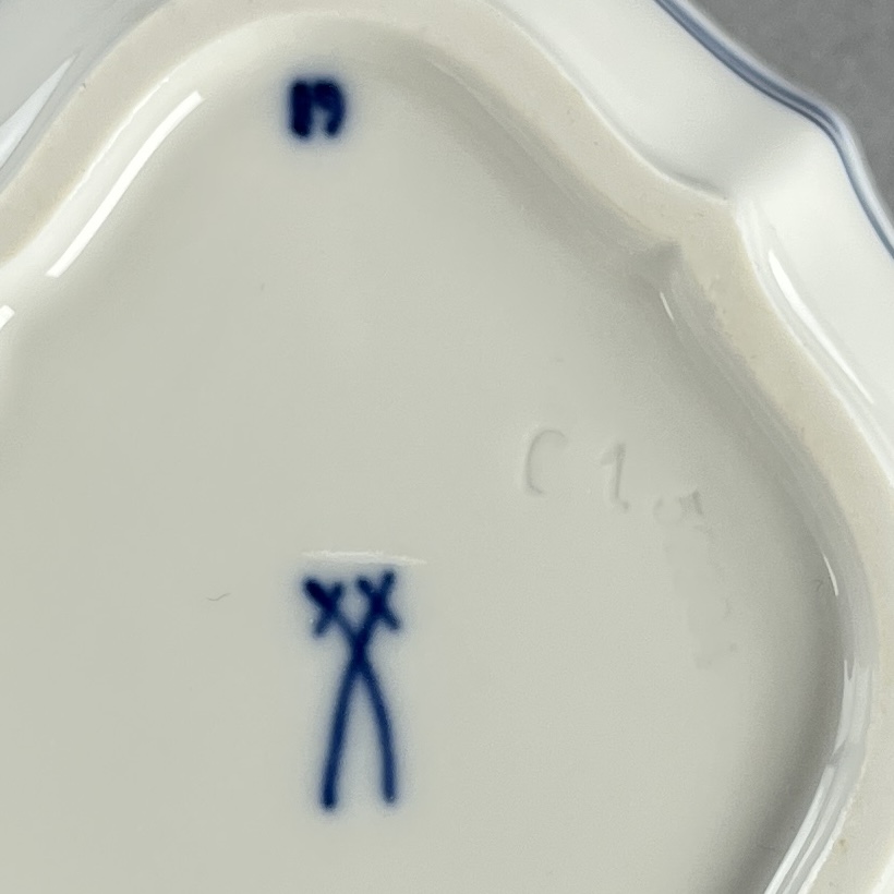 Meissen trinket box, in the “Blue Onion” pattern, with separate lid, underglaze crossed swords mark on the underside, 3-3/4″ x 3-1/8″ x 1-3/4″. CONDITION: SHIPPING: In-House Shipping Available. Please read our Shipping Policies and Terms and Conditions