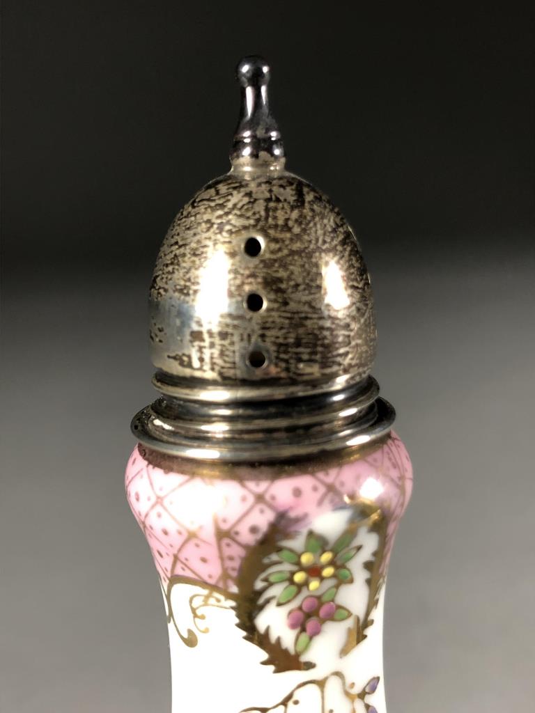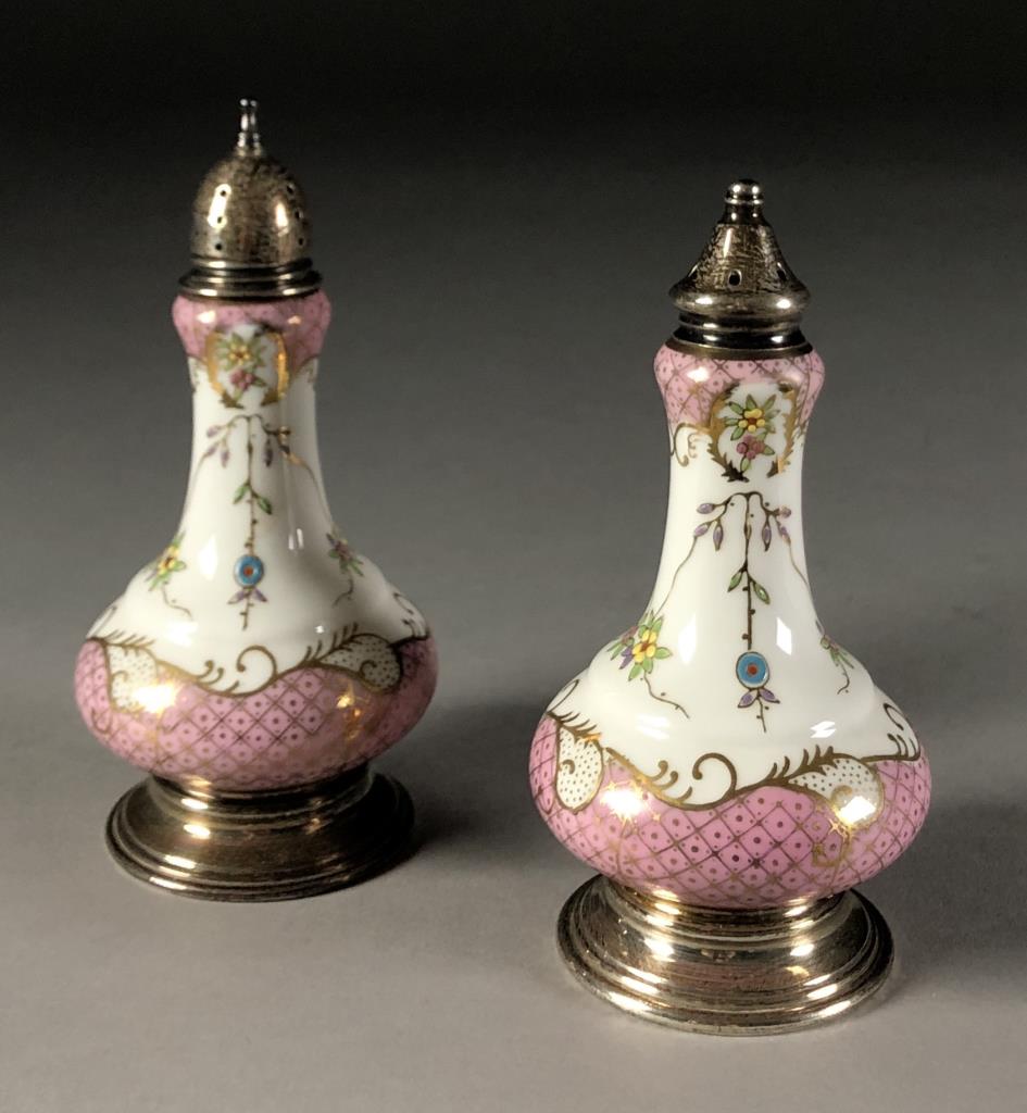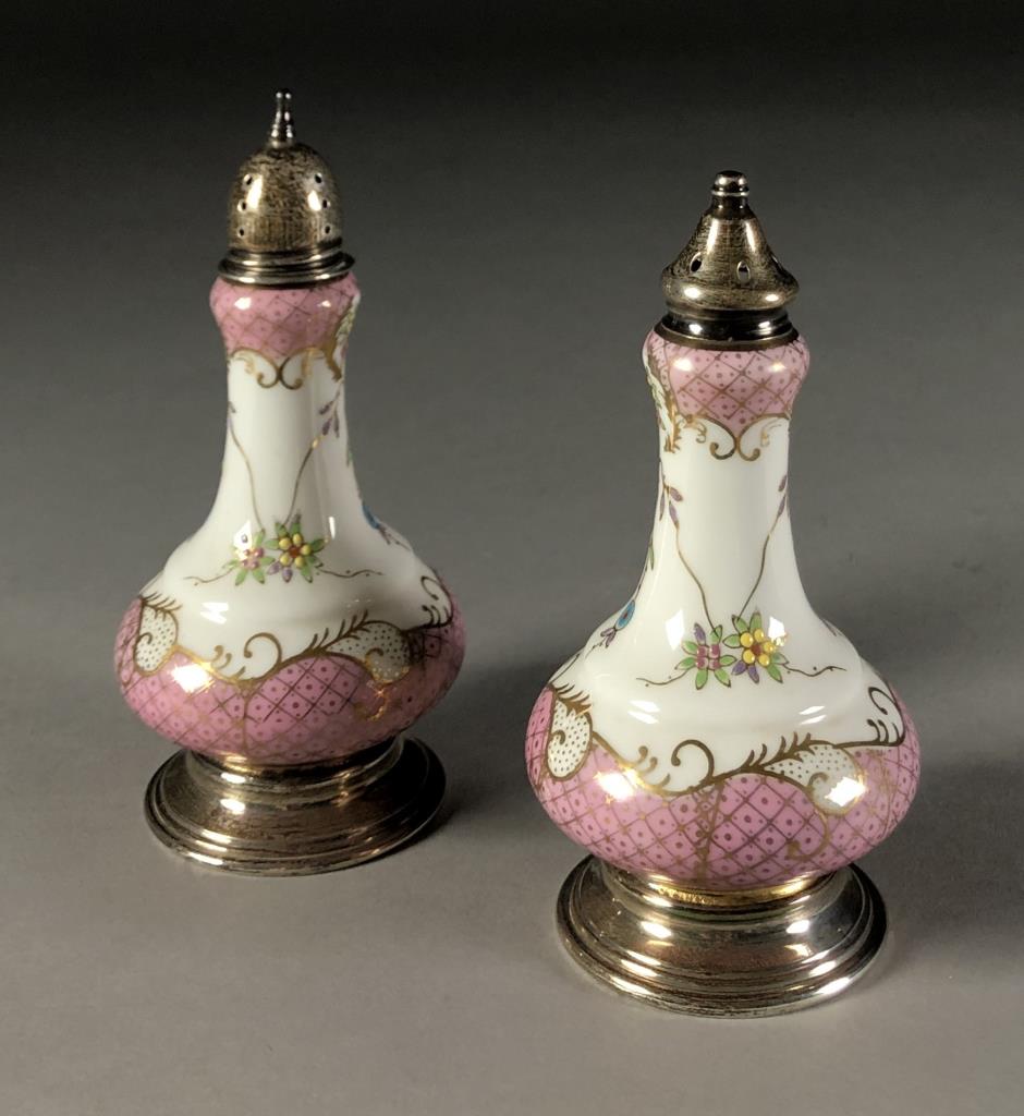 A&E Lewis "Floraine" Porcelain & Sterling Shakers