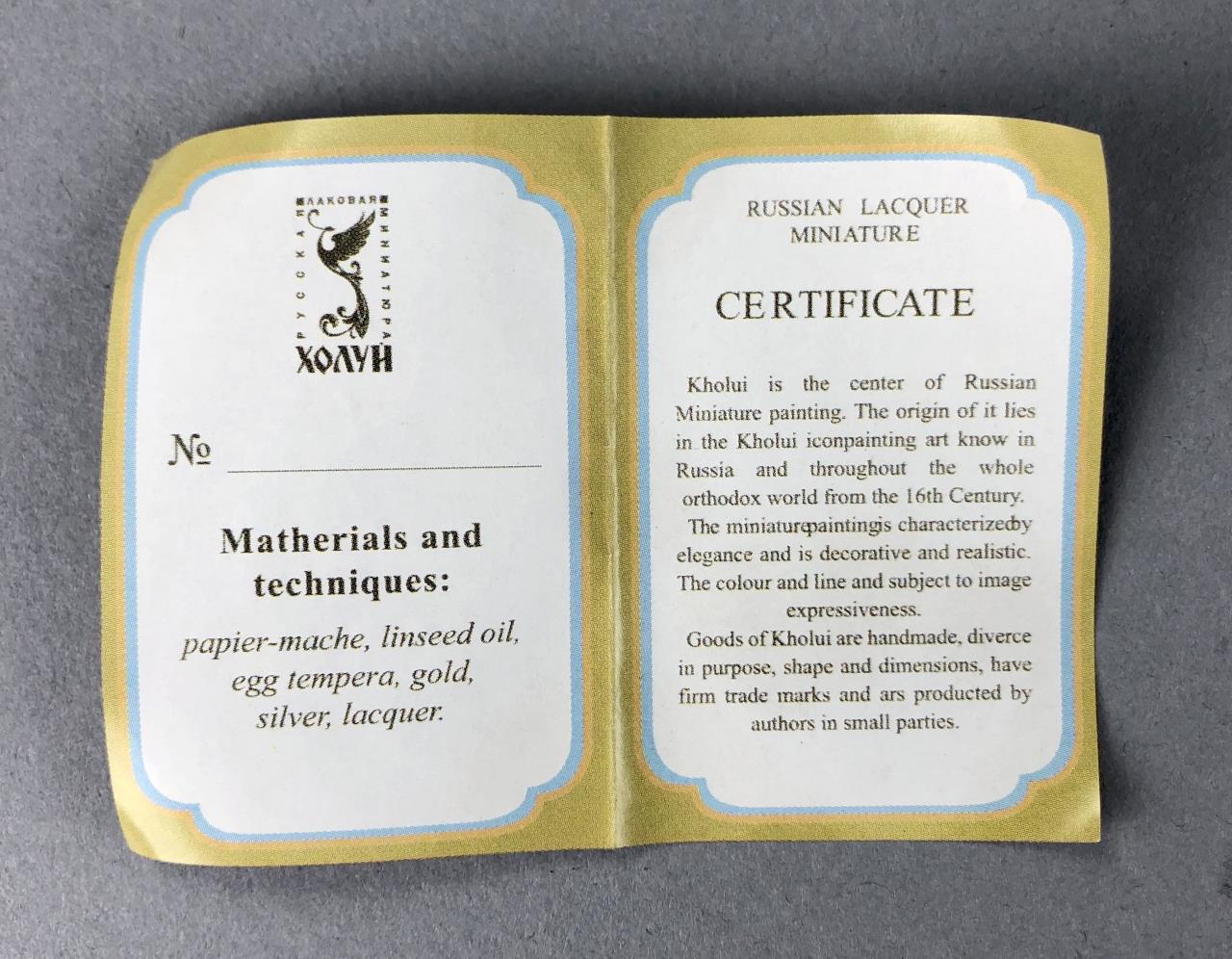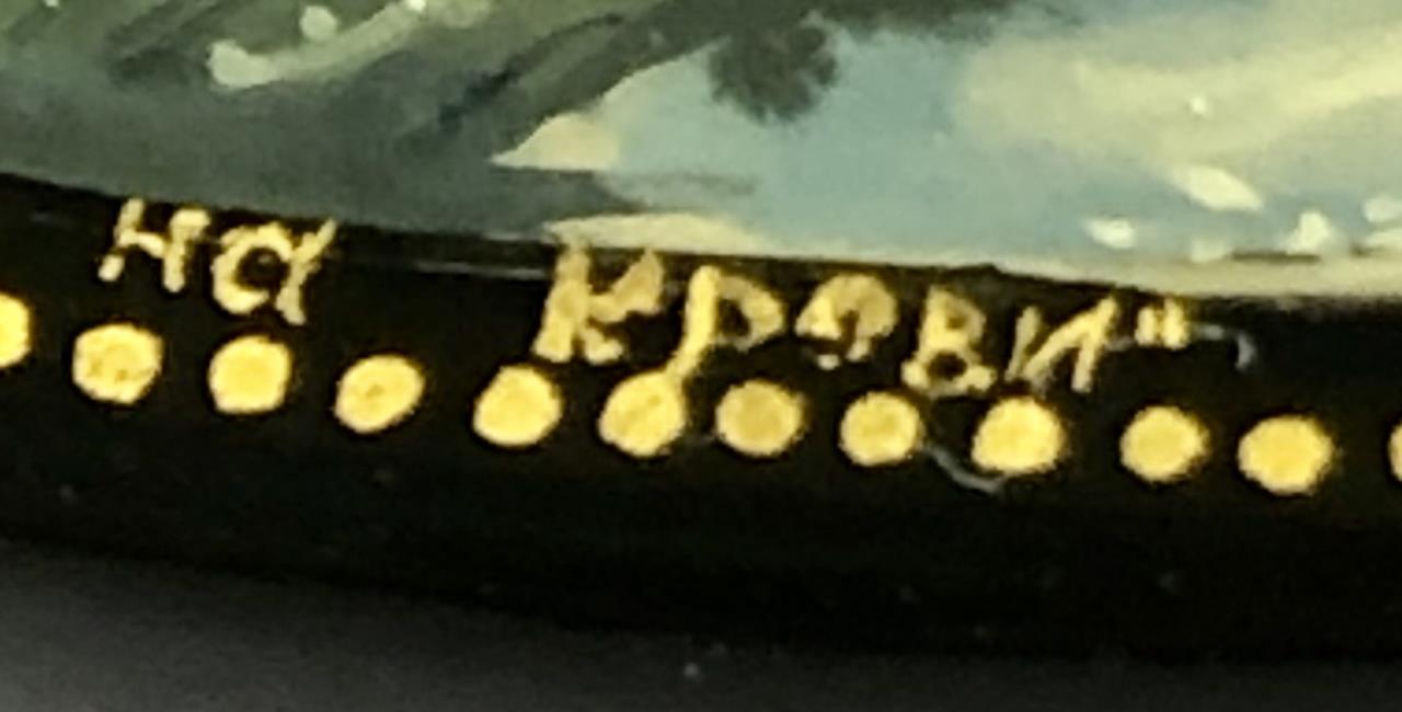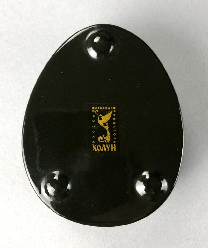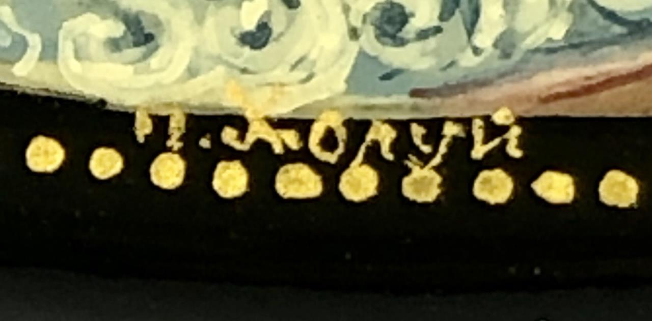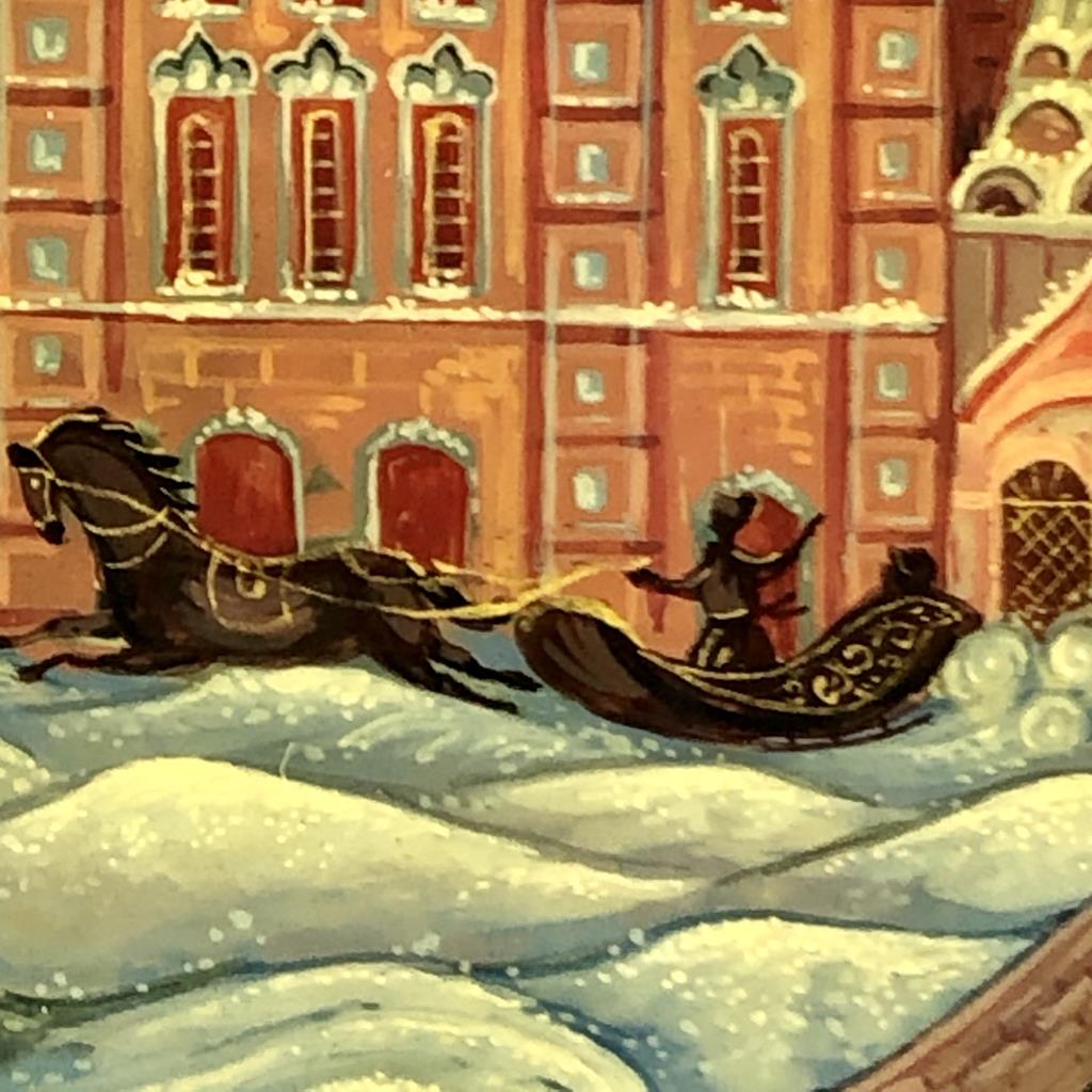 Russian papier-mache and black lacquer box, Kholui School, depicting The Church of the Savior on Spilled Blood, a Russian Orthodox church in Saint Petersburg, detached lid, hand painted, with red interior, and gold metallic accents, artist signed lower right, approximately 3-1/4″ L x 2-1/2″ W x 1-1/8″H. Provenance: ex-private Saint Johns, Michigan, USA collection. CONDITION: SHIPPING: In-House Shipping Available. Please read our Shipping Policies and Terms and Conditions