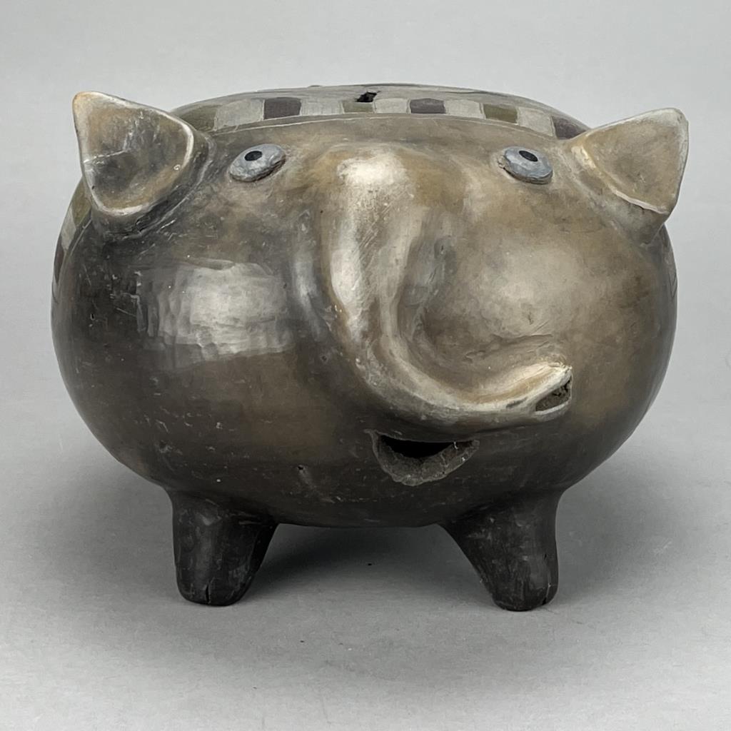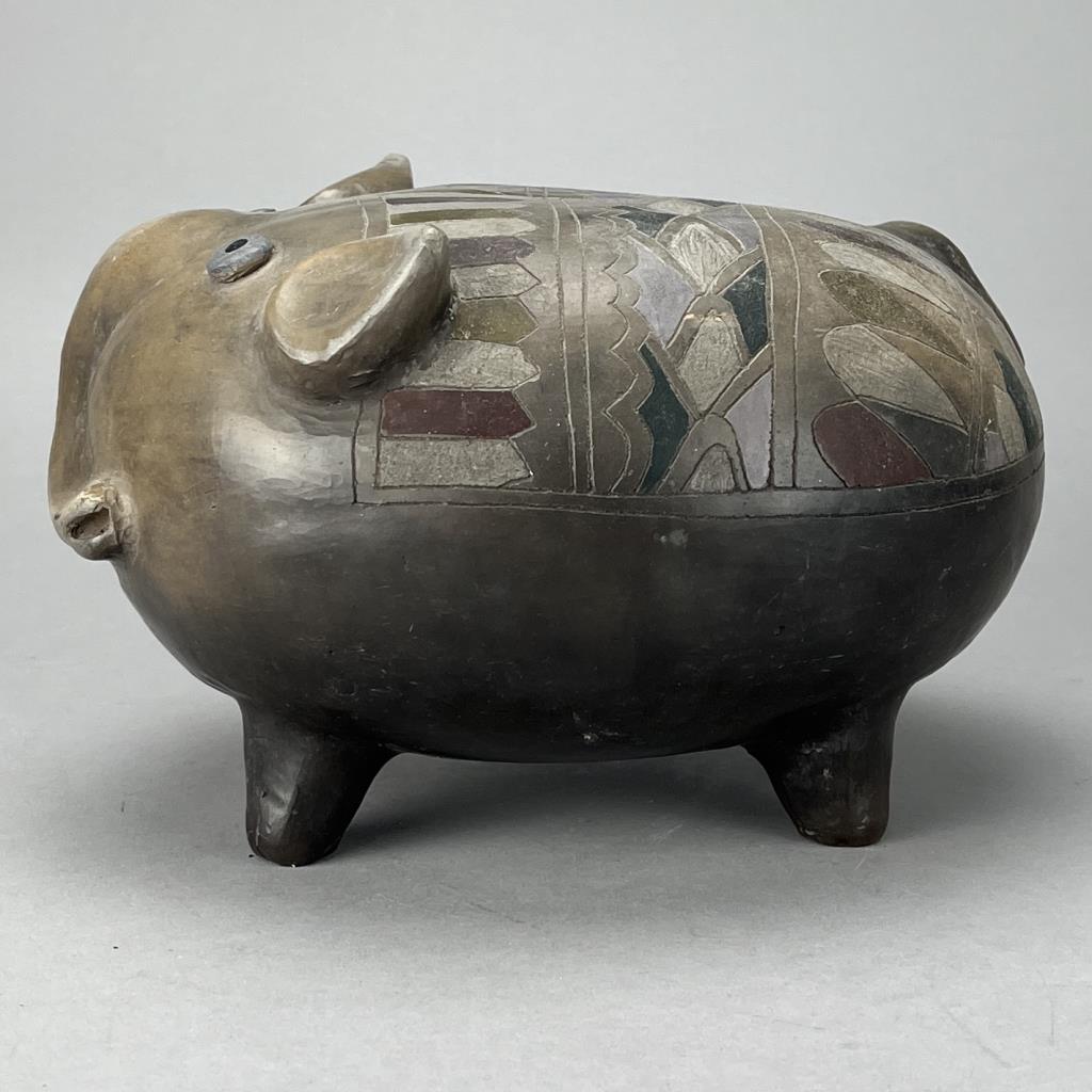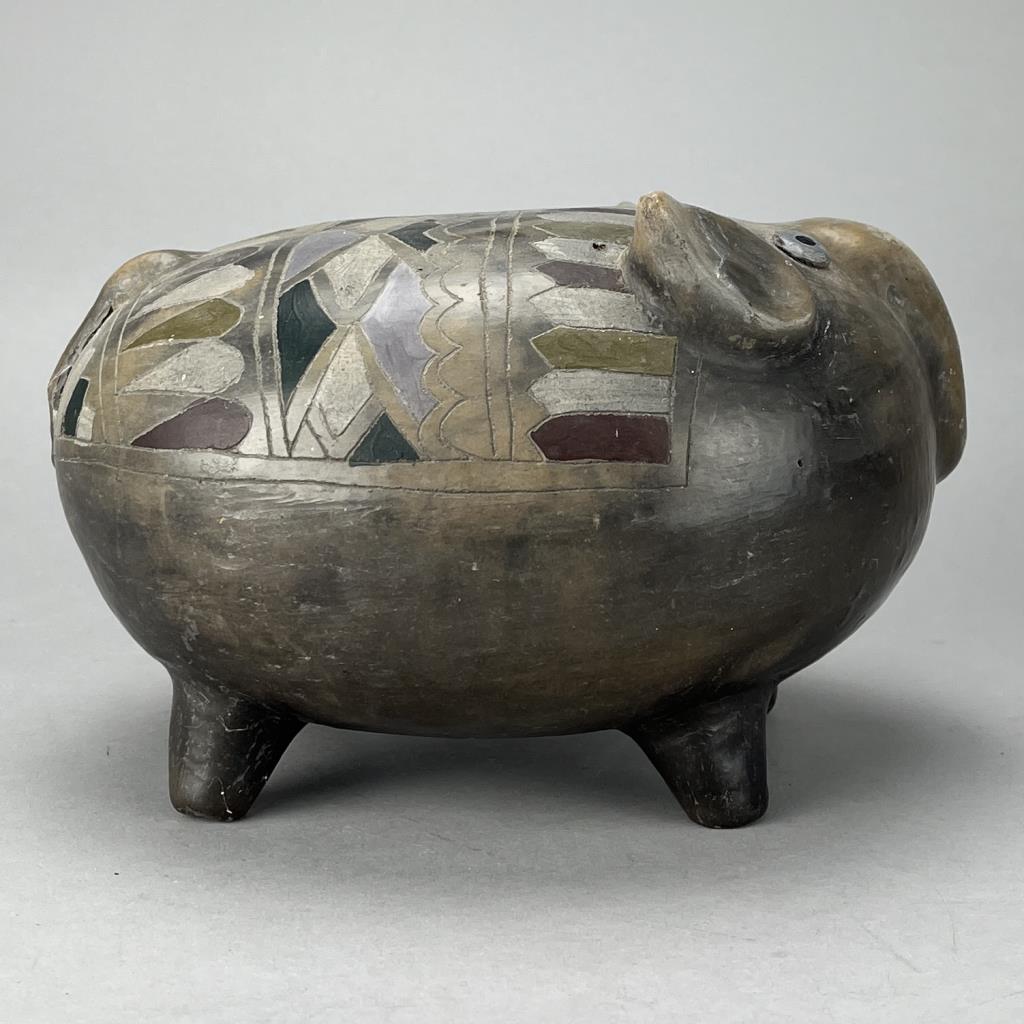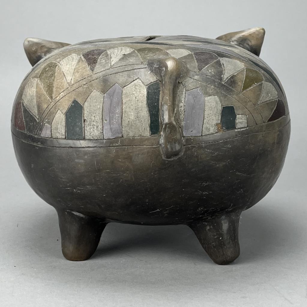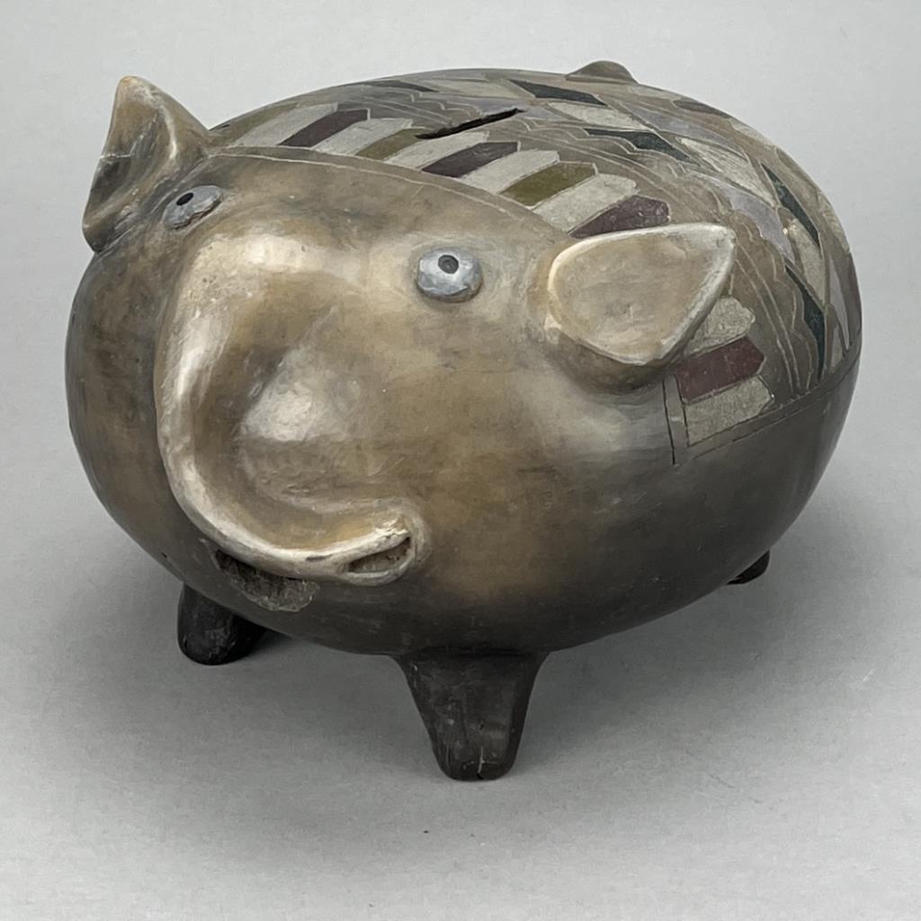Mexican Tonala folk art figural bank in the form of an Elephant, circa mid to late 20th Century. CONDITION: SHIPPING: In-House Shipping Available. Please read our Shipping Policies and Terms and Conditions