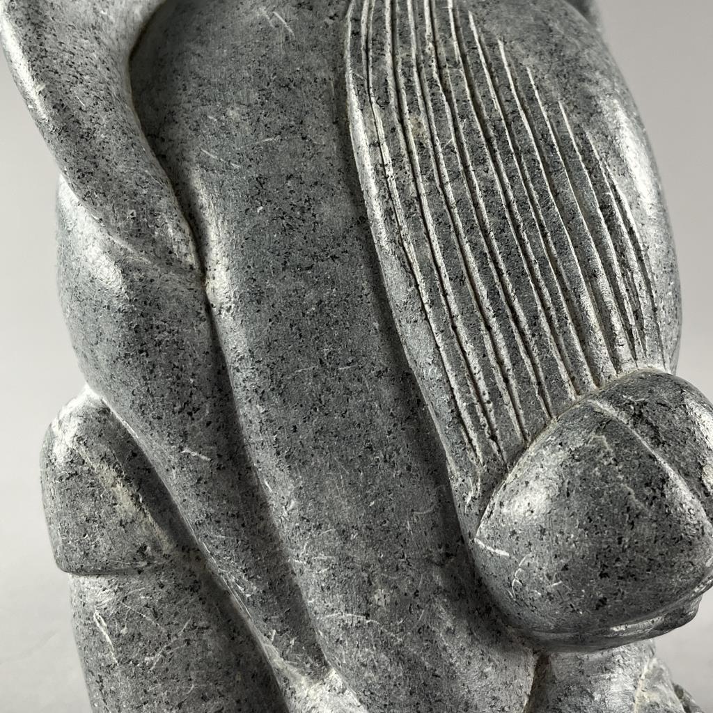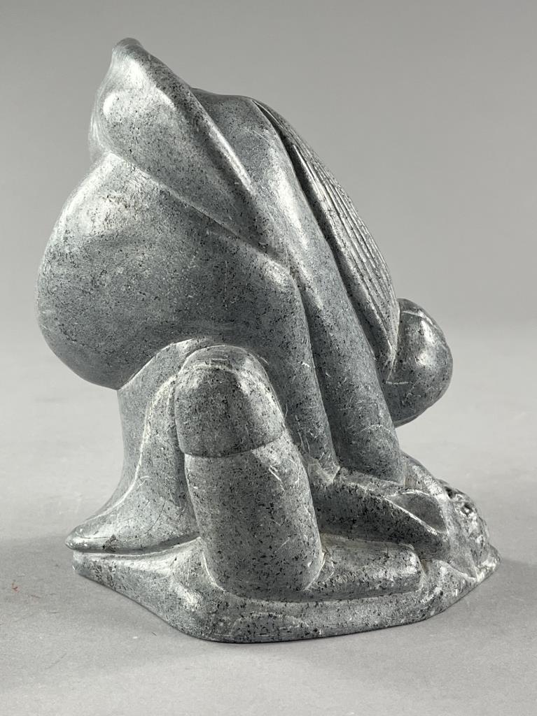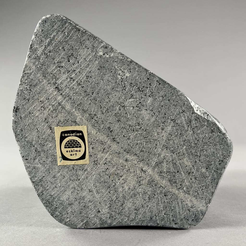 Inuit soapstone (also know as steatite) carving, depicting a mother and baby, attributed to the Pangnirtung/Pannirtuq carver Silasie Nakashuk (Inuk, b. 1969), signed on bottom “Silasie,” late 20th Century, approximately 7-1/2″ (H). Provenance: ex-private Okemos, Michigan, USA collection of Inuit and Canadian First Nations art. CONDITION: SHIPPING: In-House Shipping Available. Please read our Shipping Policies and Terms and Conditions