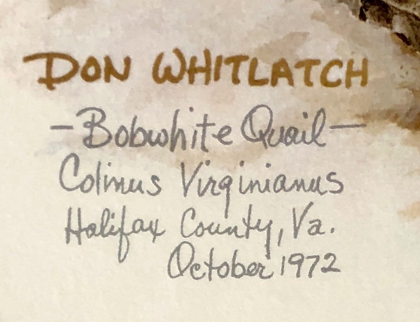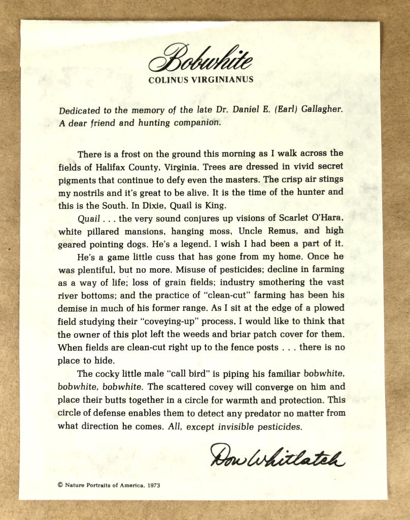 Don Whitlatch Signed Bobwhite Quail Print
