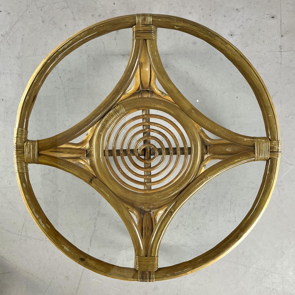 32" Round Rattan & Glass Table