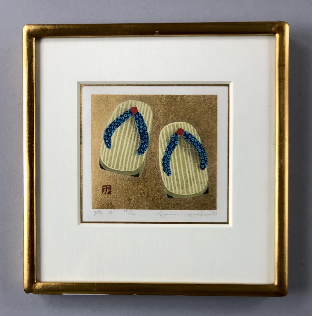 2 Kunio Kaneko Japanese Woodblock Prints Sandals
