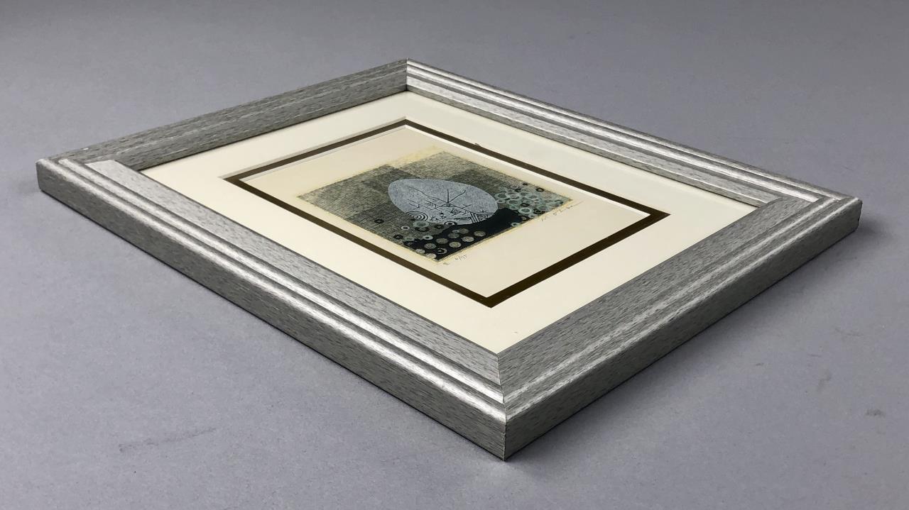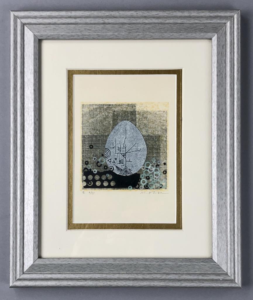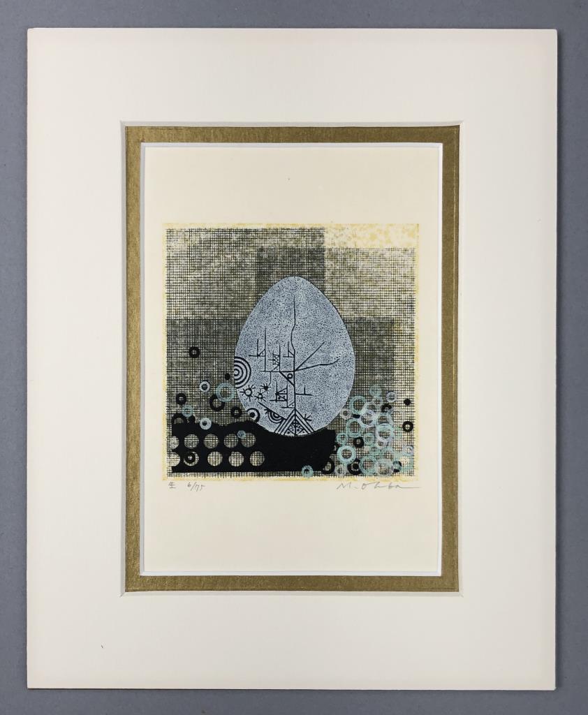 Contemporary, limited edition, artist signed, Japanese print, most likely a woodblock, pencil signed lower right possibly “M. Obhn” and numbered lower left “6/75,” in a silver gilt wood frame measuring approximately 12″ x 10″. Provenance: ex-private Saint Johns, Michigan, USA collection; Kansa’s Gallery BOQ, Tokyo, Japan, 1/1977. Original receipts, bills of sale, invoices, or other similar documents of purchase or ownership may not necessarily be included even when pictured and are only shown to help better establish the provenance of a piece. CONDITION: SHIPPING: In-House Shipping Available. Please read our Shipping Policies and Terms and Conditions