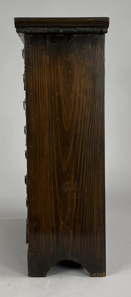 Chinese apothecary cabinet, 27 drawers and 2 doors, handmade, wood with brass hardware, 21″ x 7-11/16″ x 24-7/16″. CONDITION: There is a split in the bottom of one drawer, please see last photo. SHIPPING: Local pick-up or third party shipping only for this lot. Please see the Shipping Policy for information on suggested shippers. We recommend the Pak Mail Store of Battle Creek to assist you. Please contact the shipper of your choice for shipping estimates on this lot. Refer to the Shipping section in our full Terms and Conditions for all information on shipping.