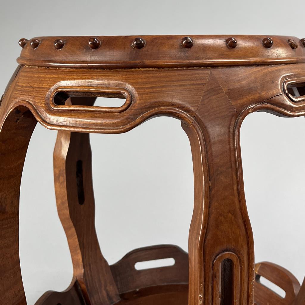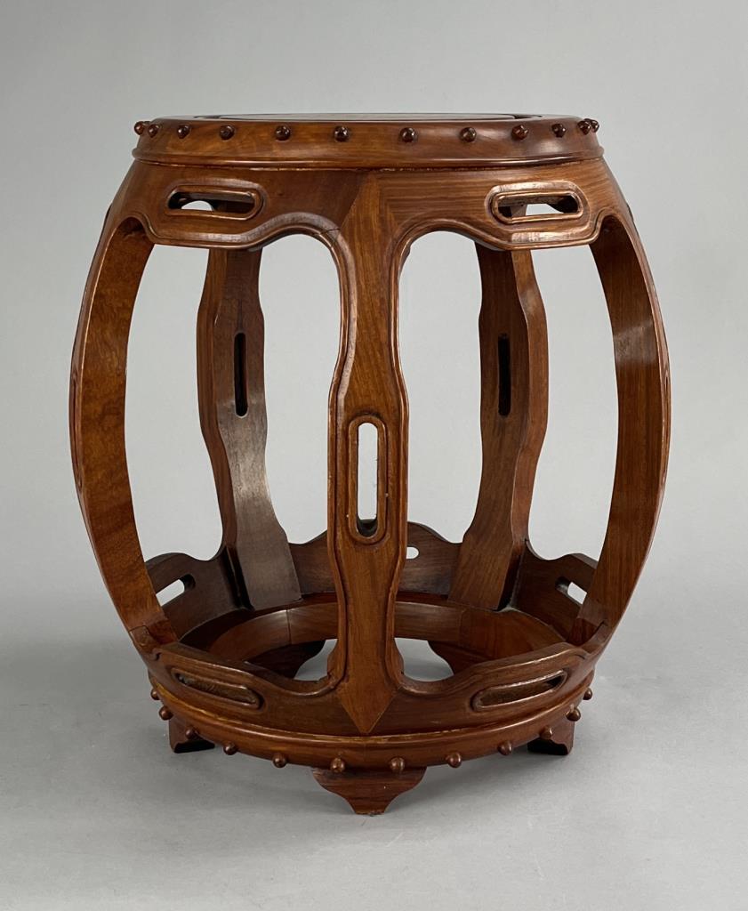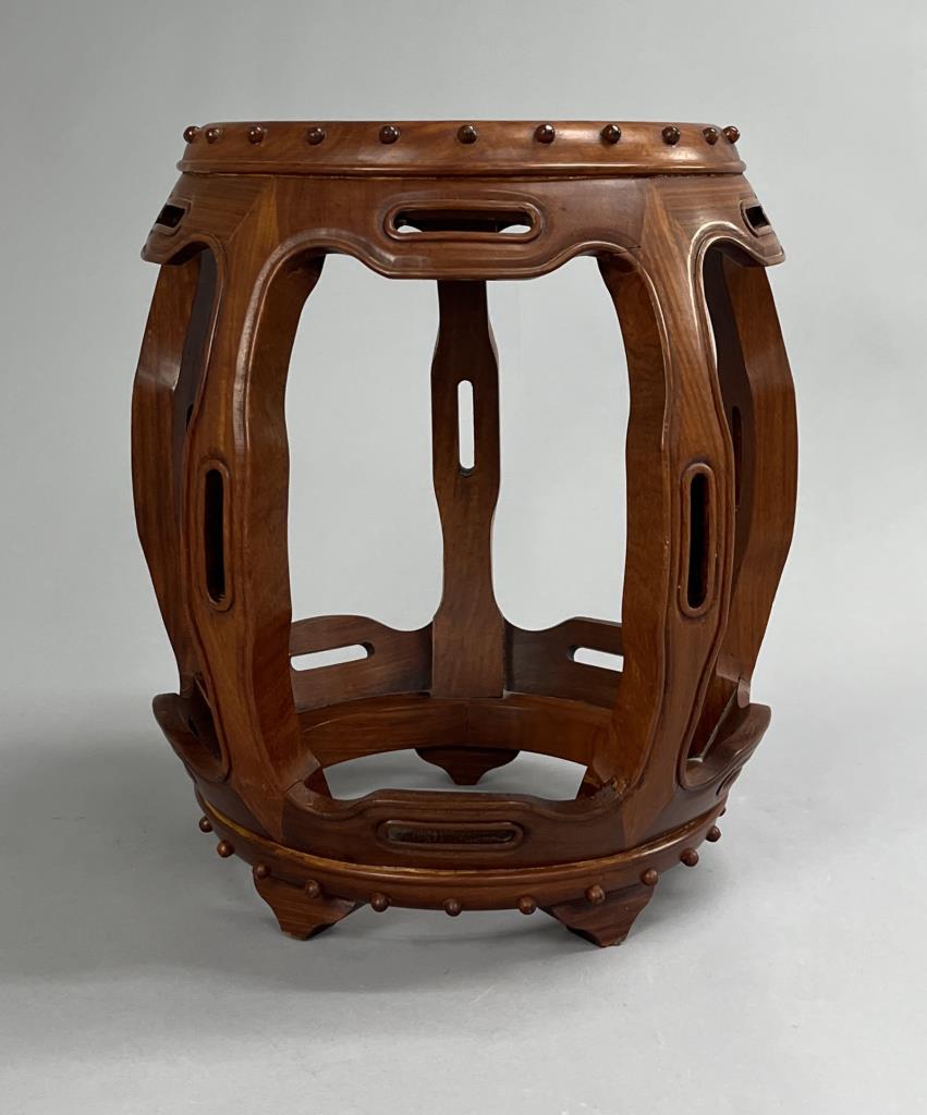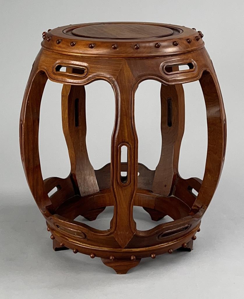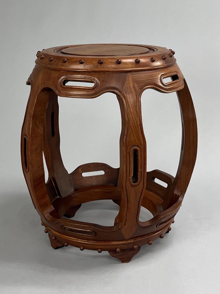 Chinese Teak Wood Barrel Form Drum Stool