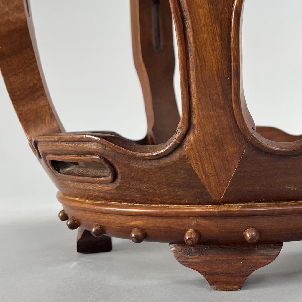 Chinese barrel form drum or garden stool, Song Dynasty style, handmade with traditional mortise, tenon, and pegged construction, possibly from the workshop of George Zee & Company (Kowloon, Hong Kong), circa mid to late 20th Century, most likely teak wood, approximately 17-3/4″ (H) x 16″ (D). CONDITION: At least two older breaks and repairs, please see last photos. SHIPPING: Local pick-up or third party shipping only for this lot. Please see the Shipping Policy for information on suggested shippers. We recommend the Pak Mail Store of Battle Creek to assist you. Please contact the shipper of your choice for shipping estimates on this lot. Refer to the Shipping section in our full Terms and Conditions for all information on shipping.