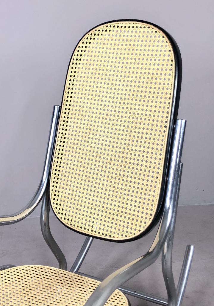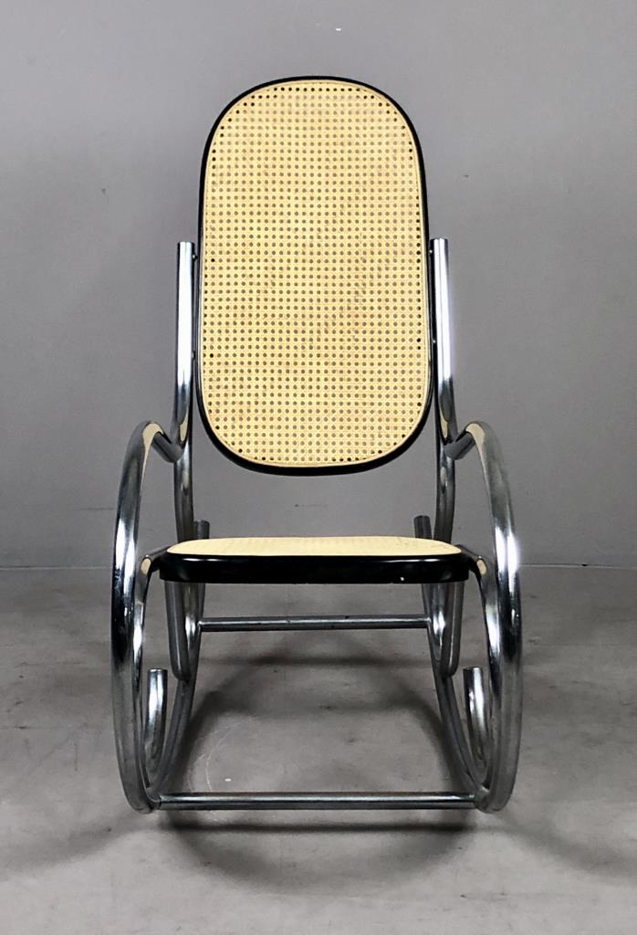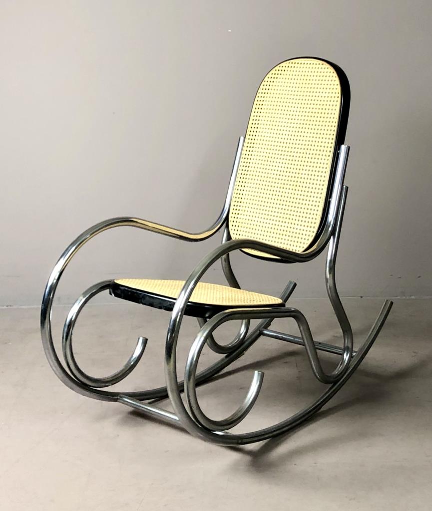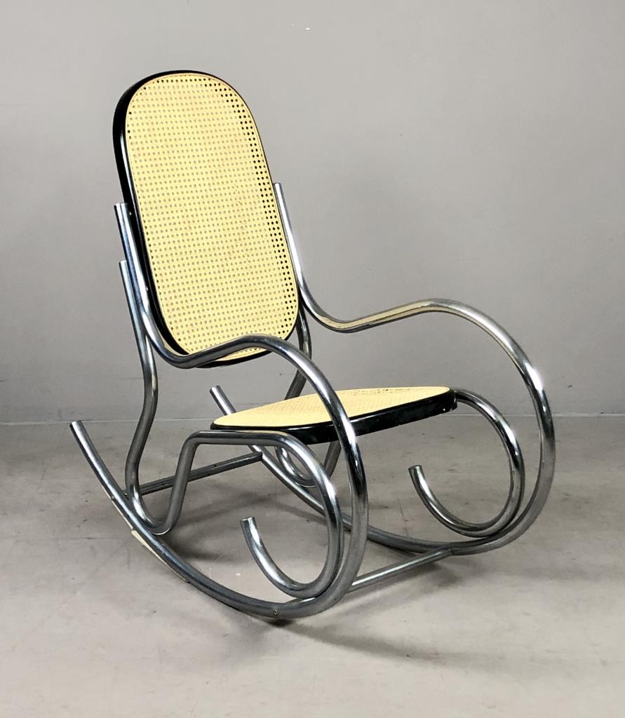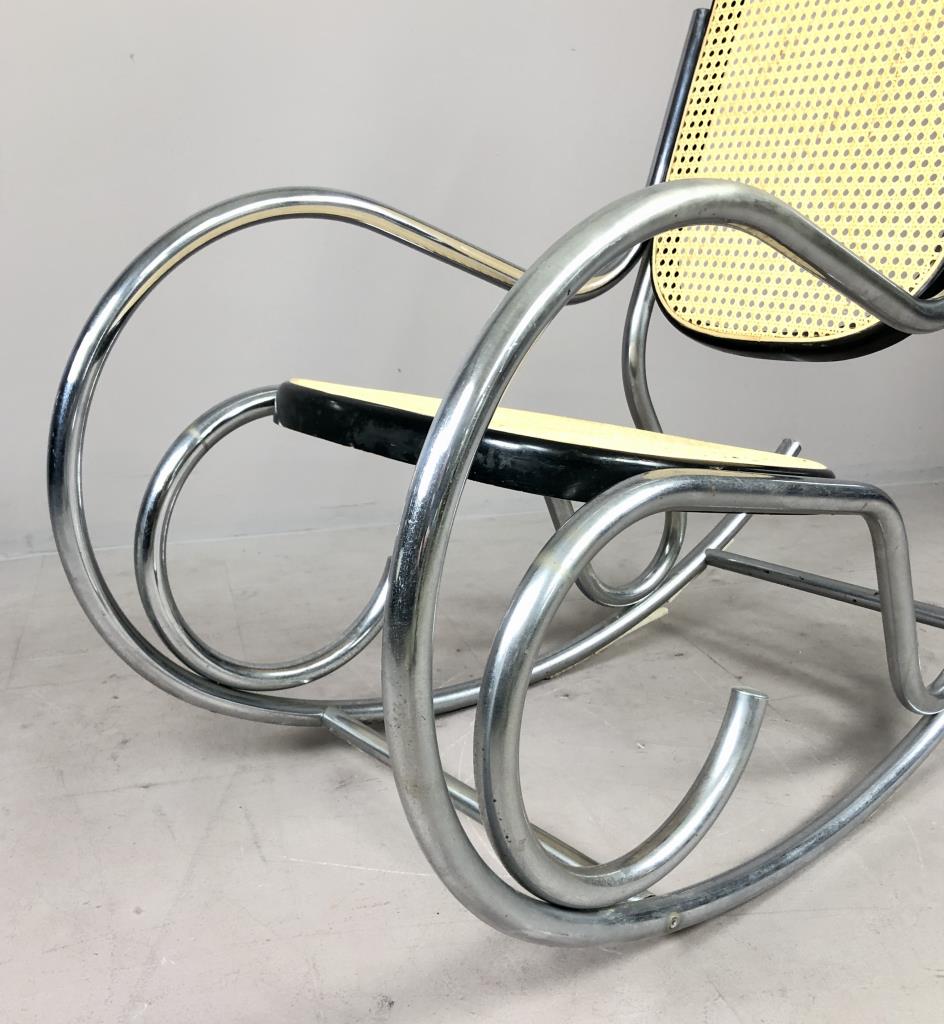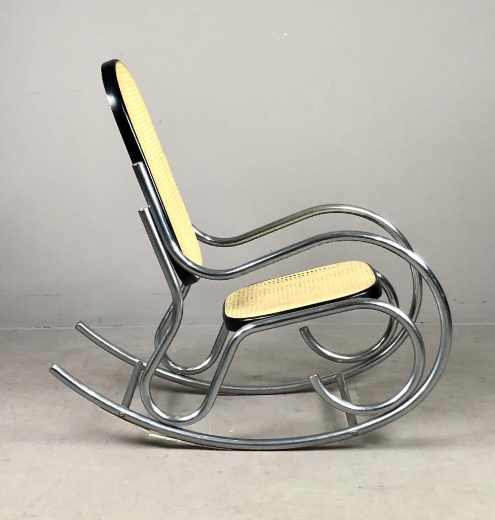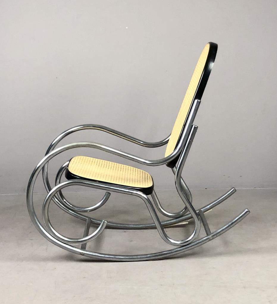 Marcel Breuer Style Chrome & Wicker Rocking Chair