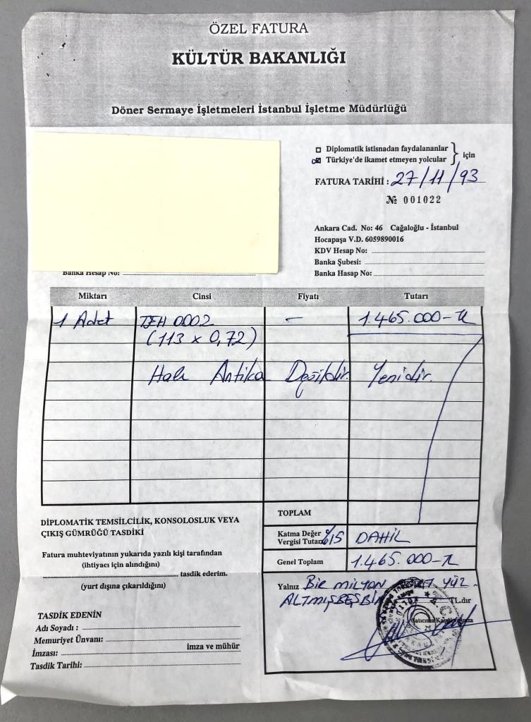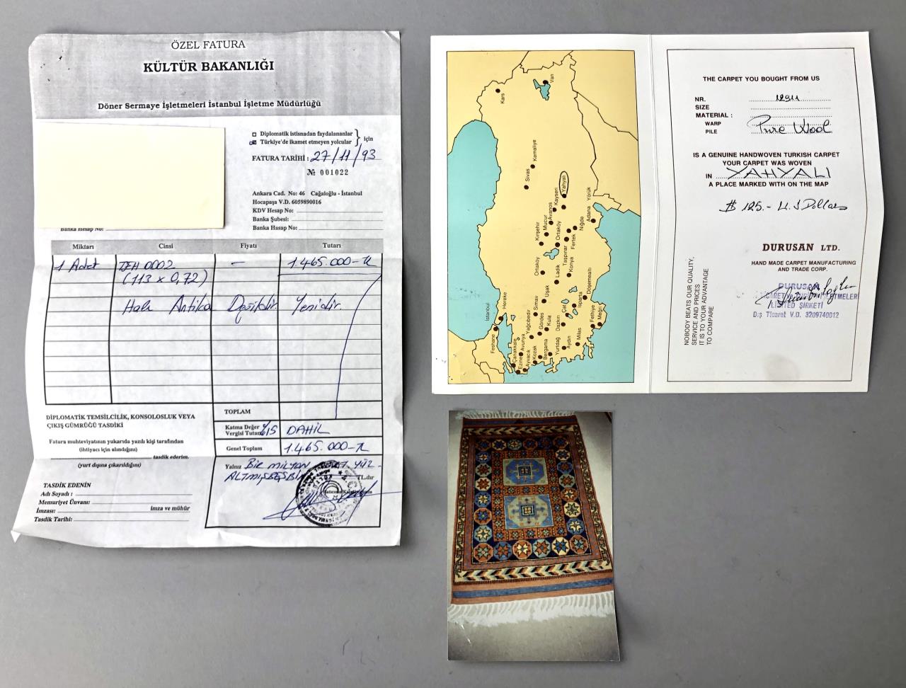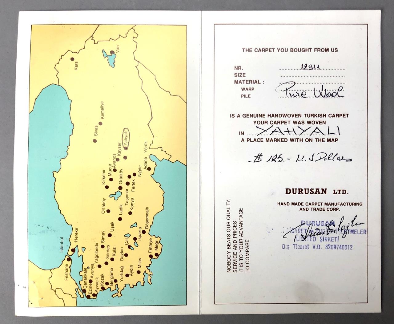 Turkish Yahyali wool rug, hand-knotted, purchased in Turkey in 1993, includes original receipt and certificate of authenticity, approximately 3’8-1/2″ x 2’5-1/2″ CONDITION: SHIPPING: In-House Shipping Available. Please read our Shipping Policies and Terms and Conditions