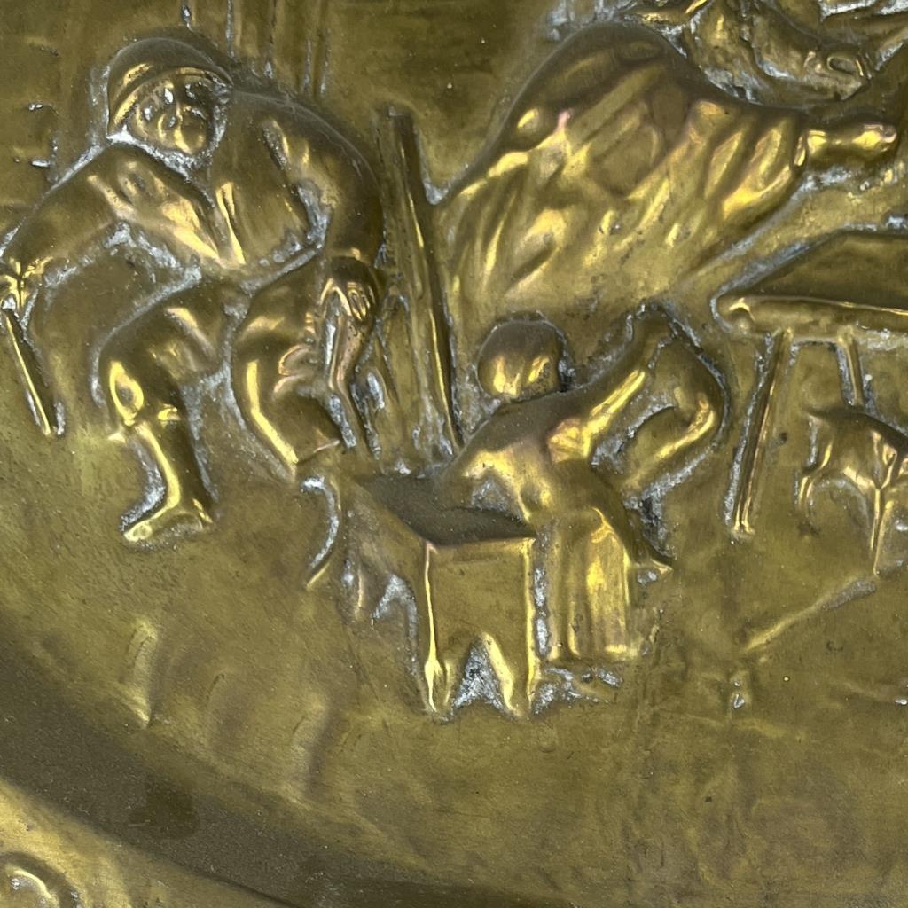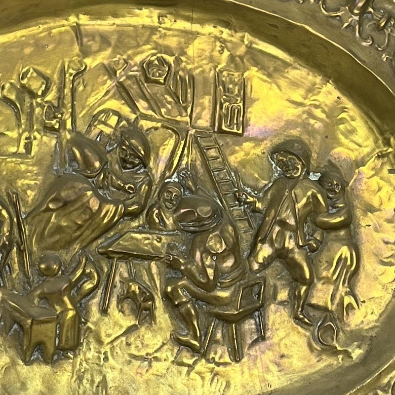 Antique Repousse Brass Wall Plaque Tavern Scene
