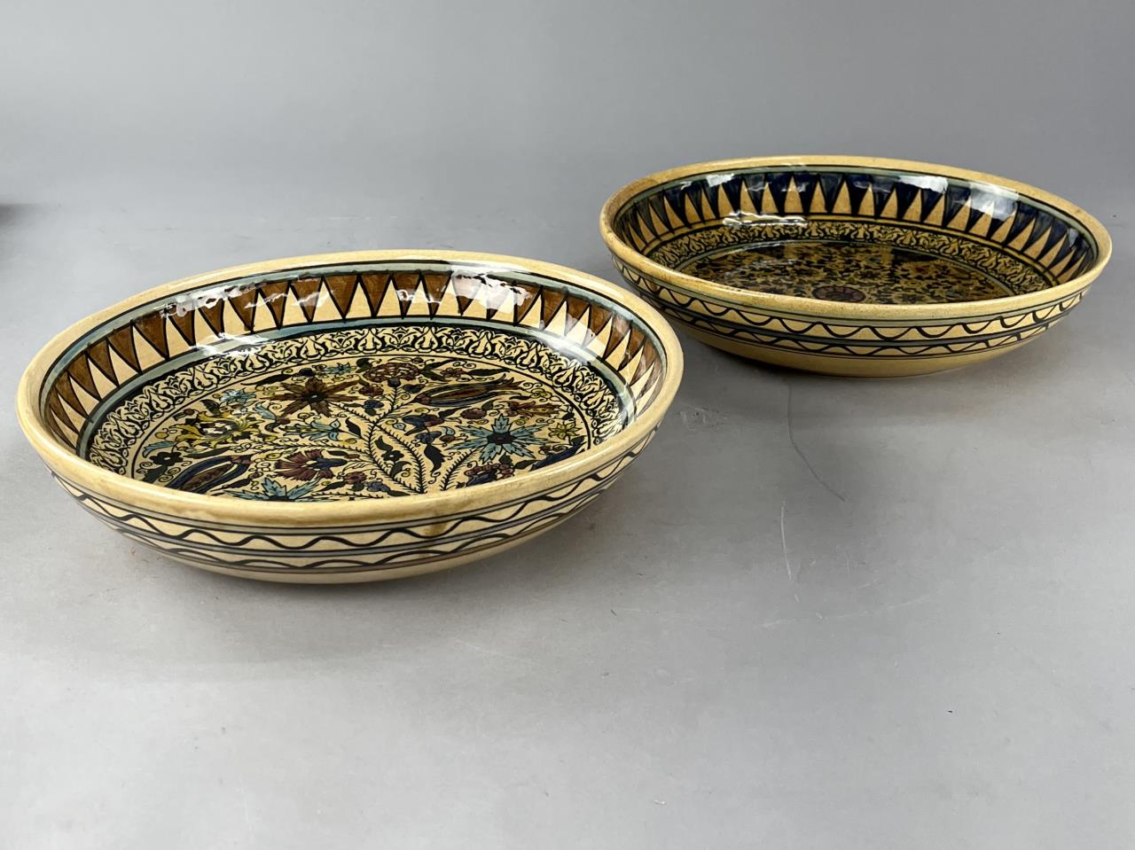 2 Large Armenian Style Pottery Fruit Bowls