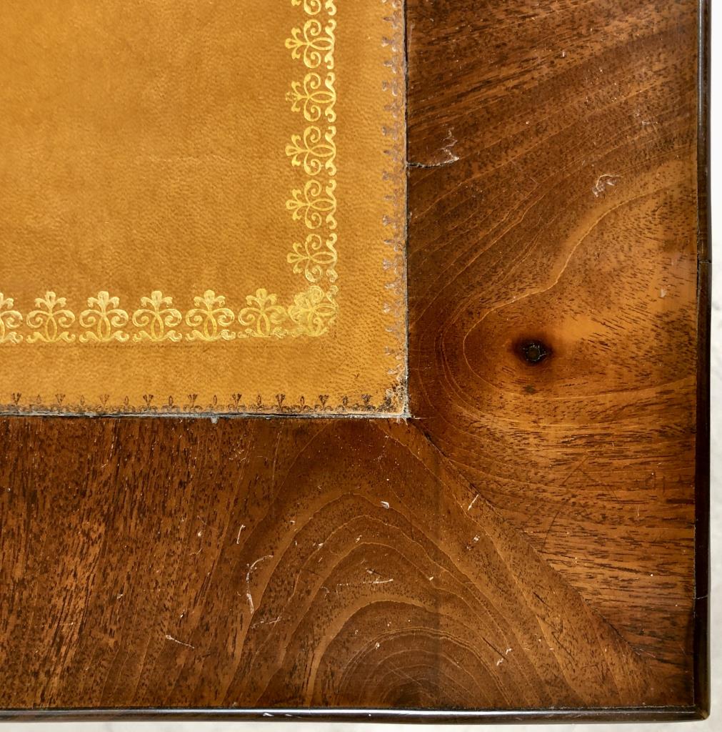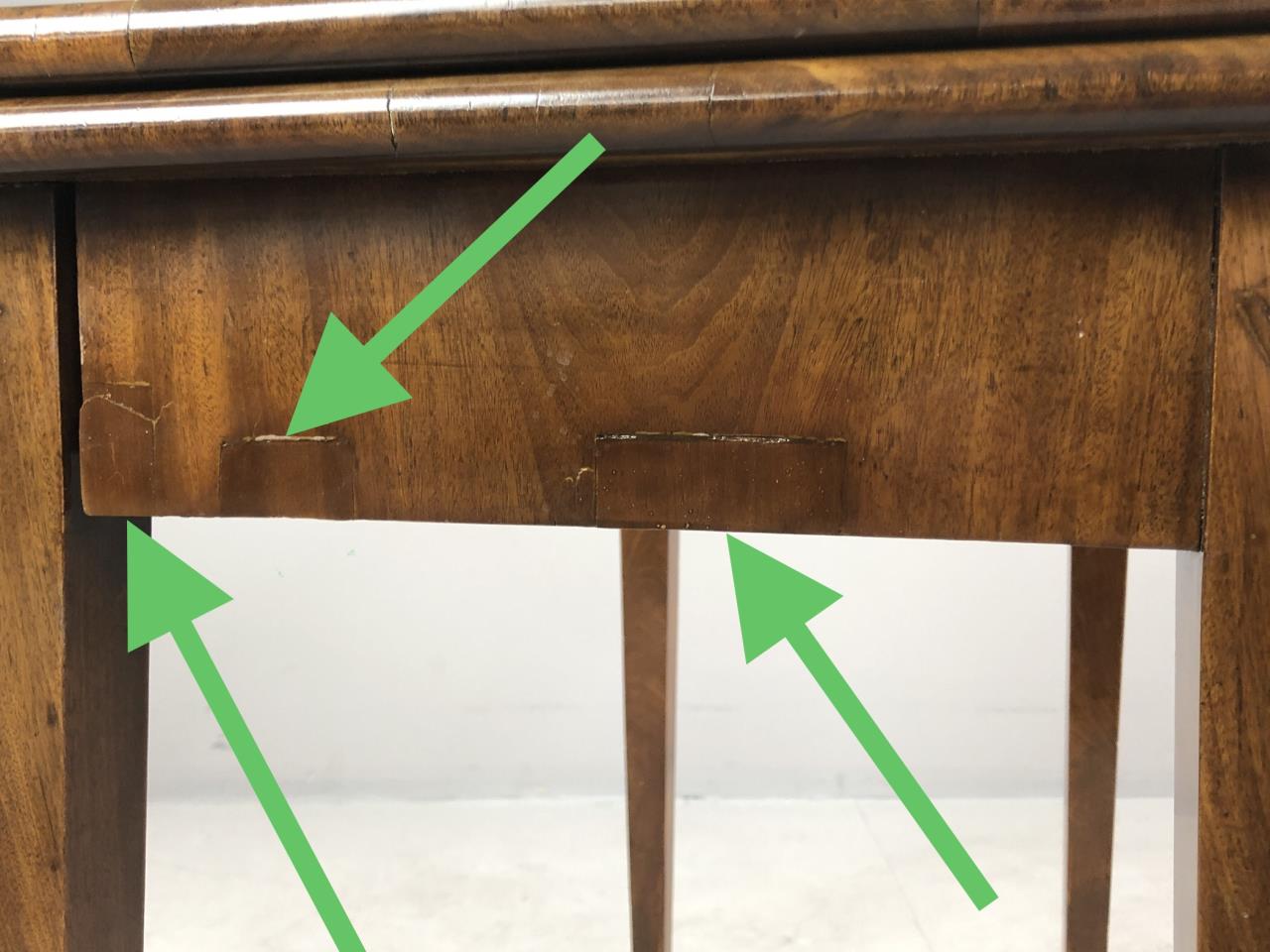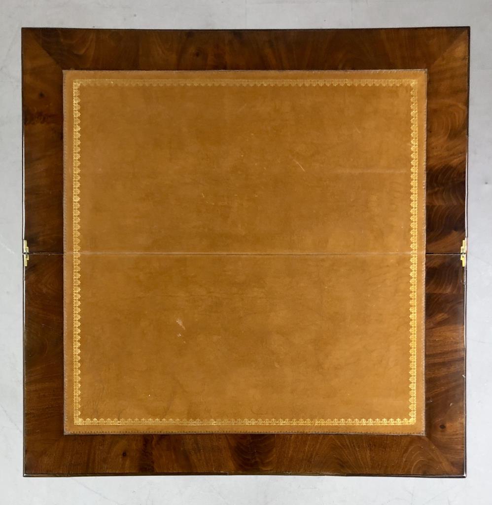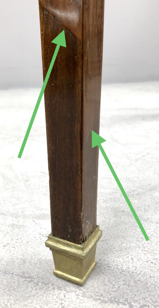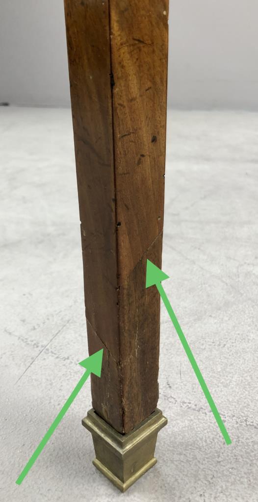 Antique French flip-top game table / console table, mahogany, tooled gilt leather, and brass foot caps, circa early 19th Century, 33″ x 16-1/2″ (33″ when opened) x 28-3/4″. CONDITION: Areas of repairs and restoration throughout, including two legs which appear to have been broken and partially replaced towards their bases, sections of the slides and drawer also appear to have been ether repaired or replaced, and the leather pad is most likely a later replacement. SHIPPING: Local pick-up or third party shipping only for this lot. Please see the Shipping Policy for information on suggested shippers. We recommend the Pak Mail Store of Battle Creek to assist you. Please contact the shipper of your choice for shipping estimates on this lot. Refer to the Shipping section in our full Terms and Conditions for all information on shipping.