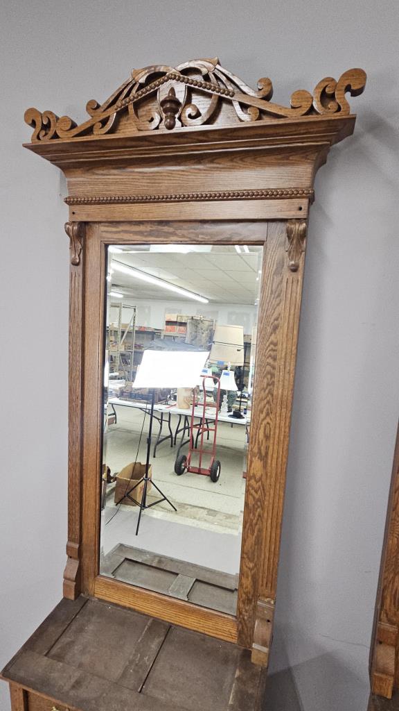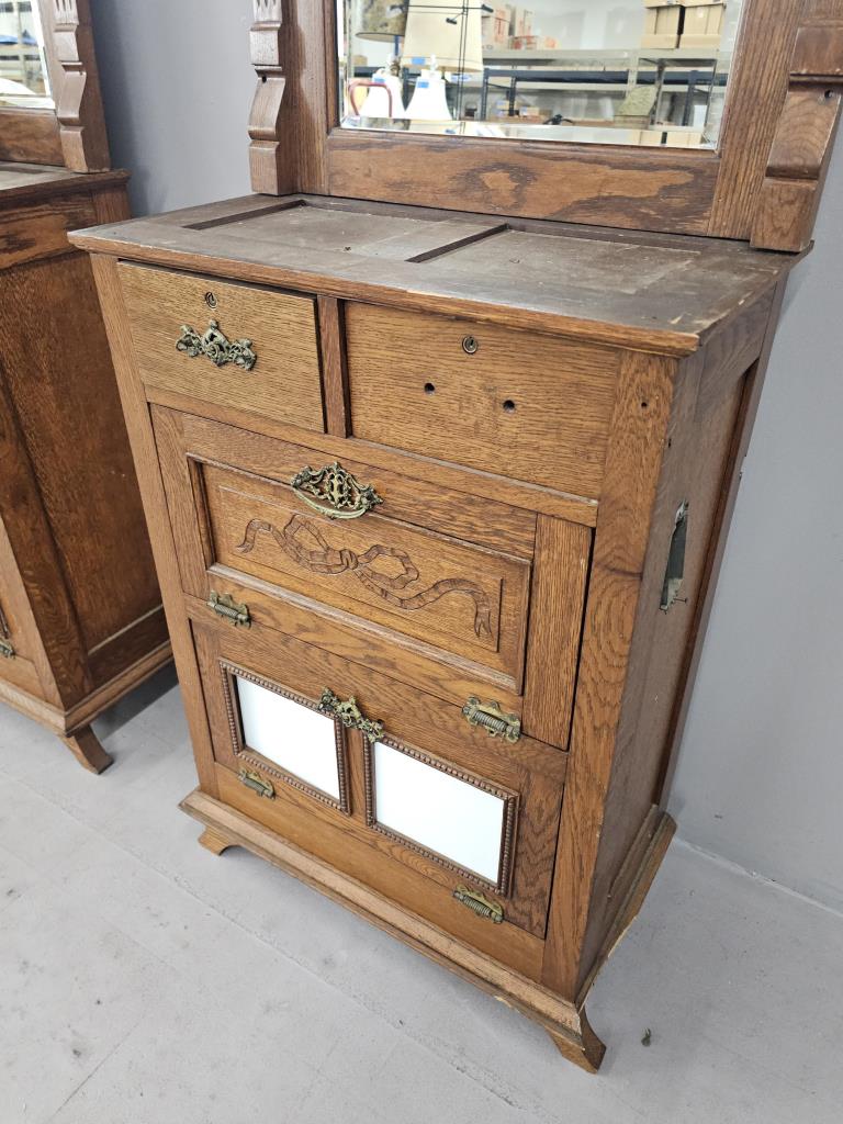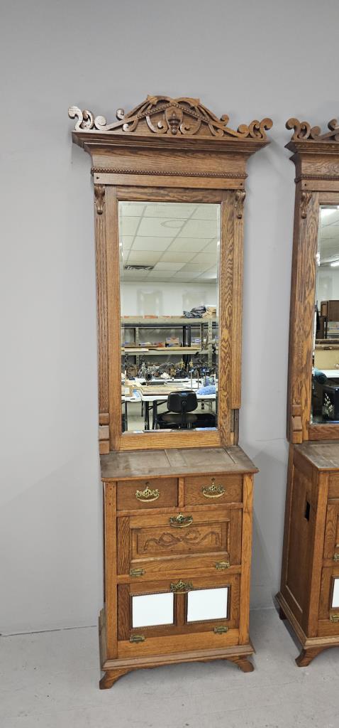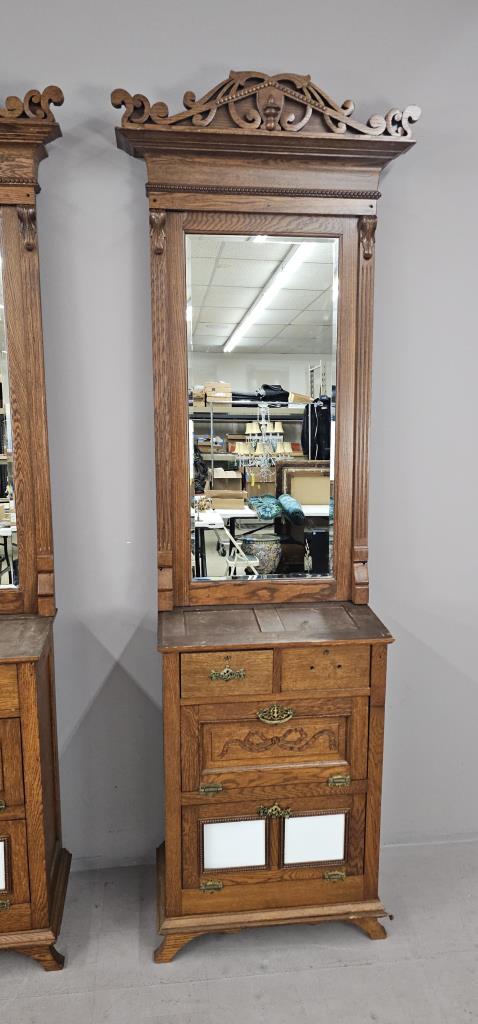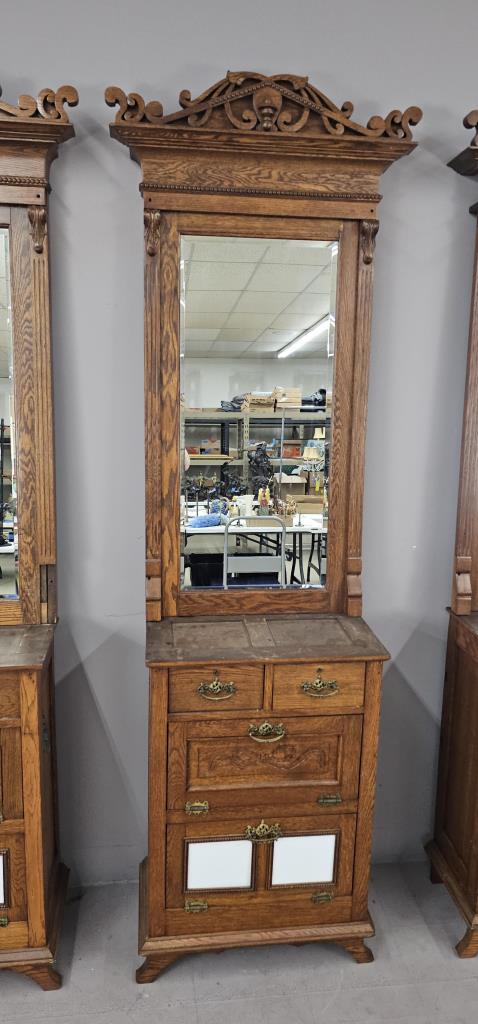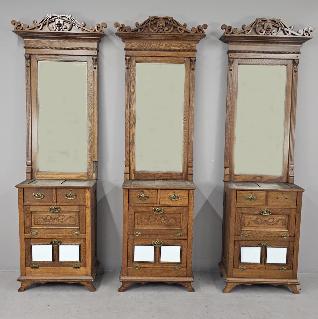 3 Antique Oak Barber Stations or Back Bar c. 1890s
