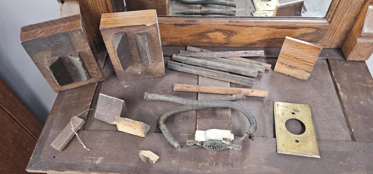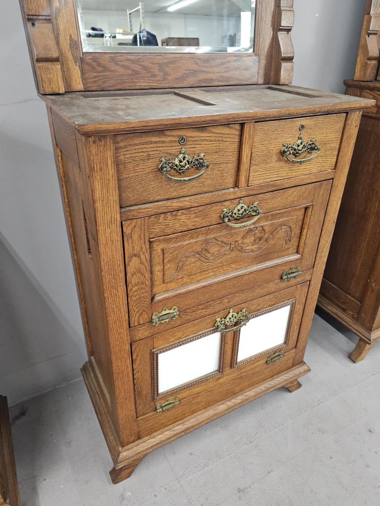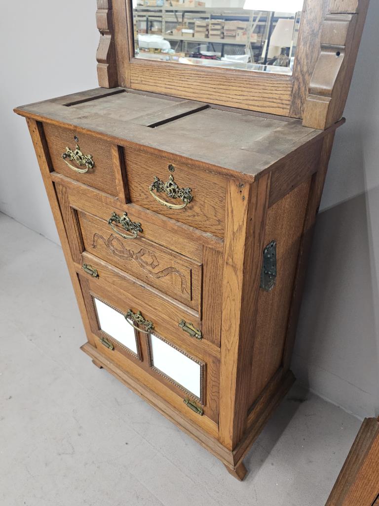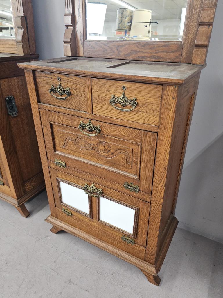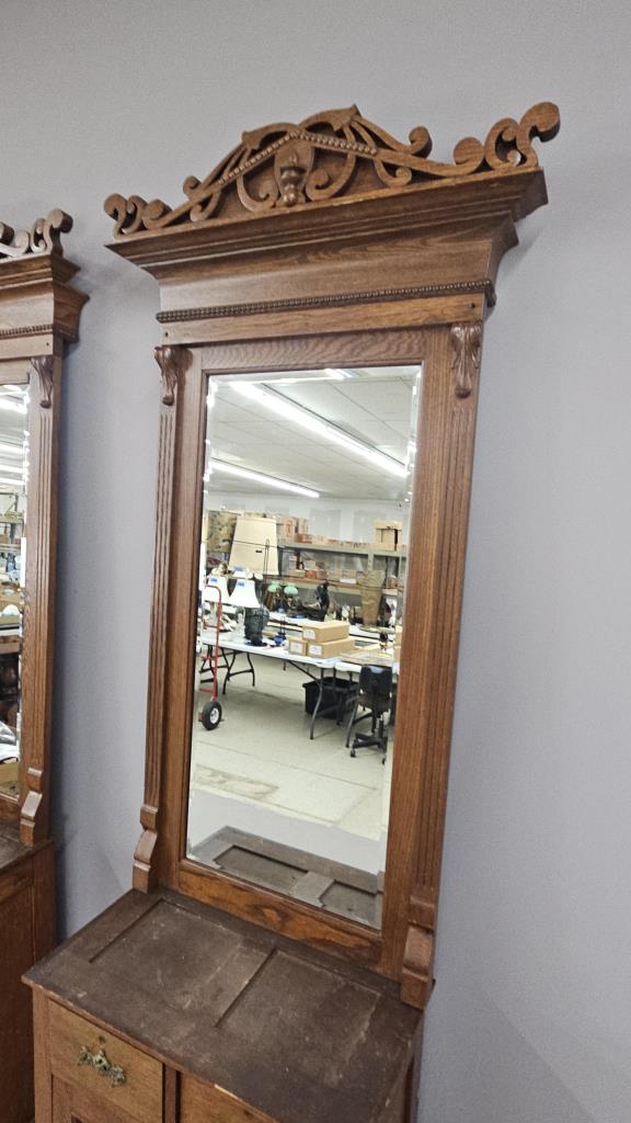 3 Antique Oak Barber Stations or Back Bar c. 1890s