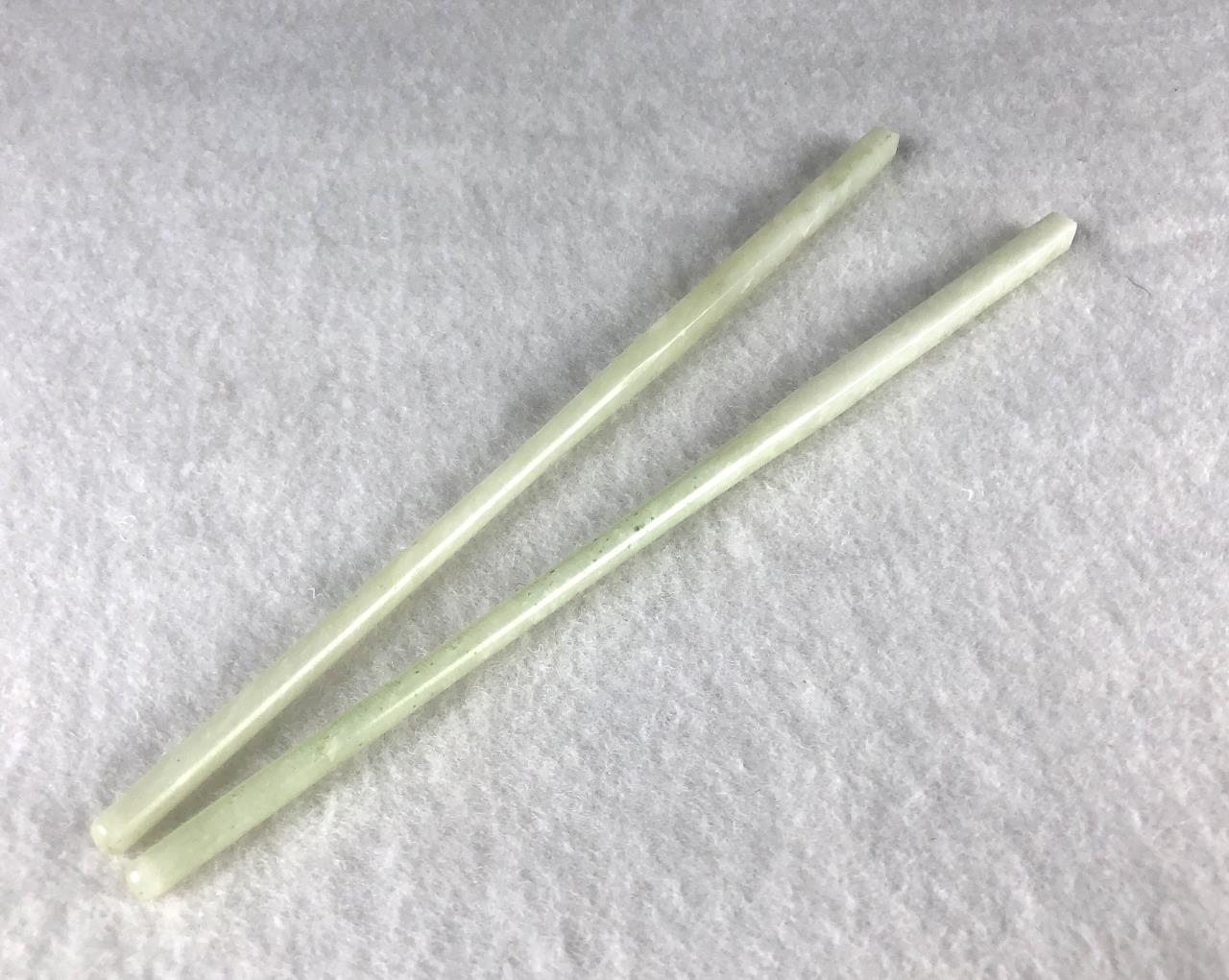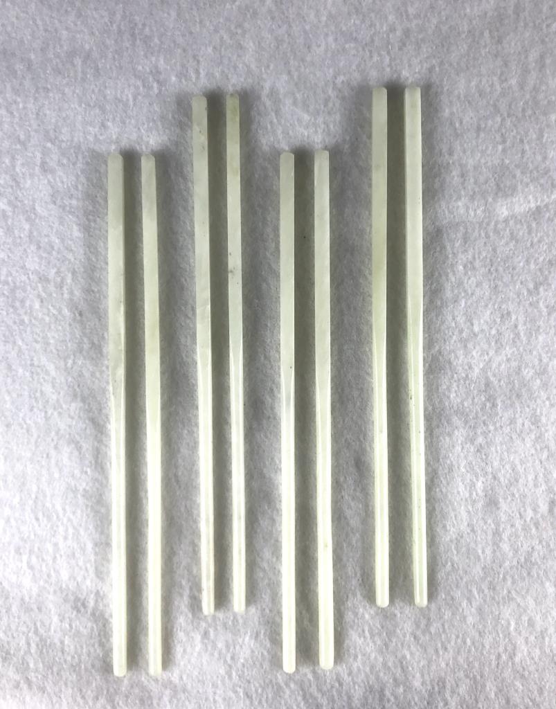 Four pairs of hand carved pale green jade chopsticks. CONDITION: SHIPPING: In-House Shipping Available. Please read our Shipping Policies and Terms and Conditions