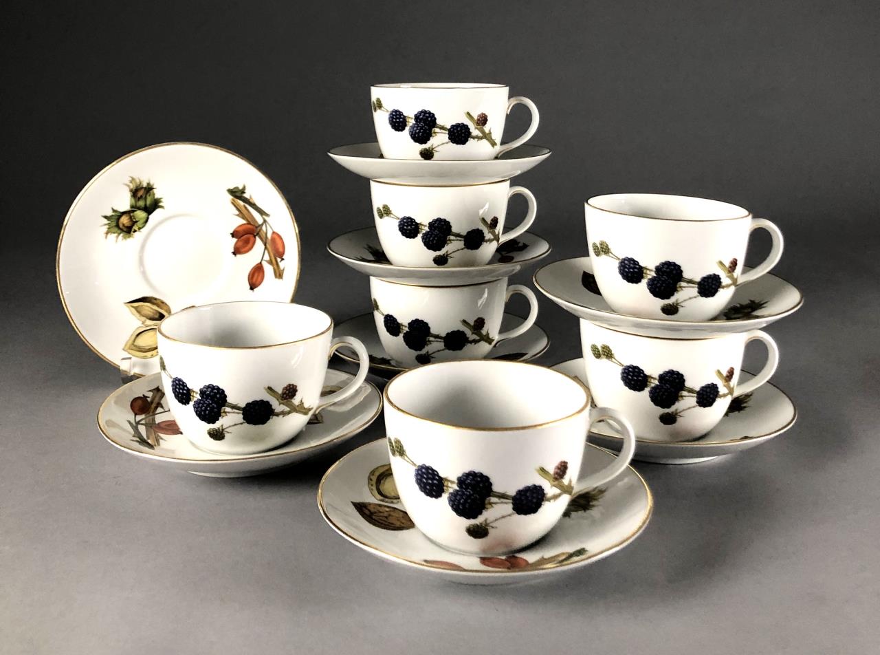 7 Royal Worcester Wild Harvest Gold Cups & Saucers
