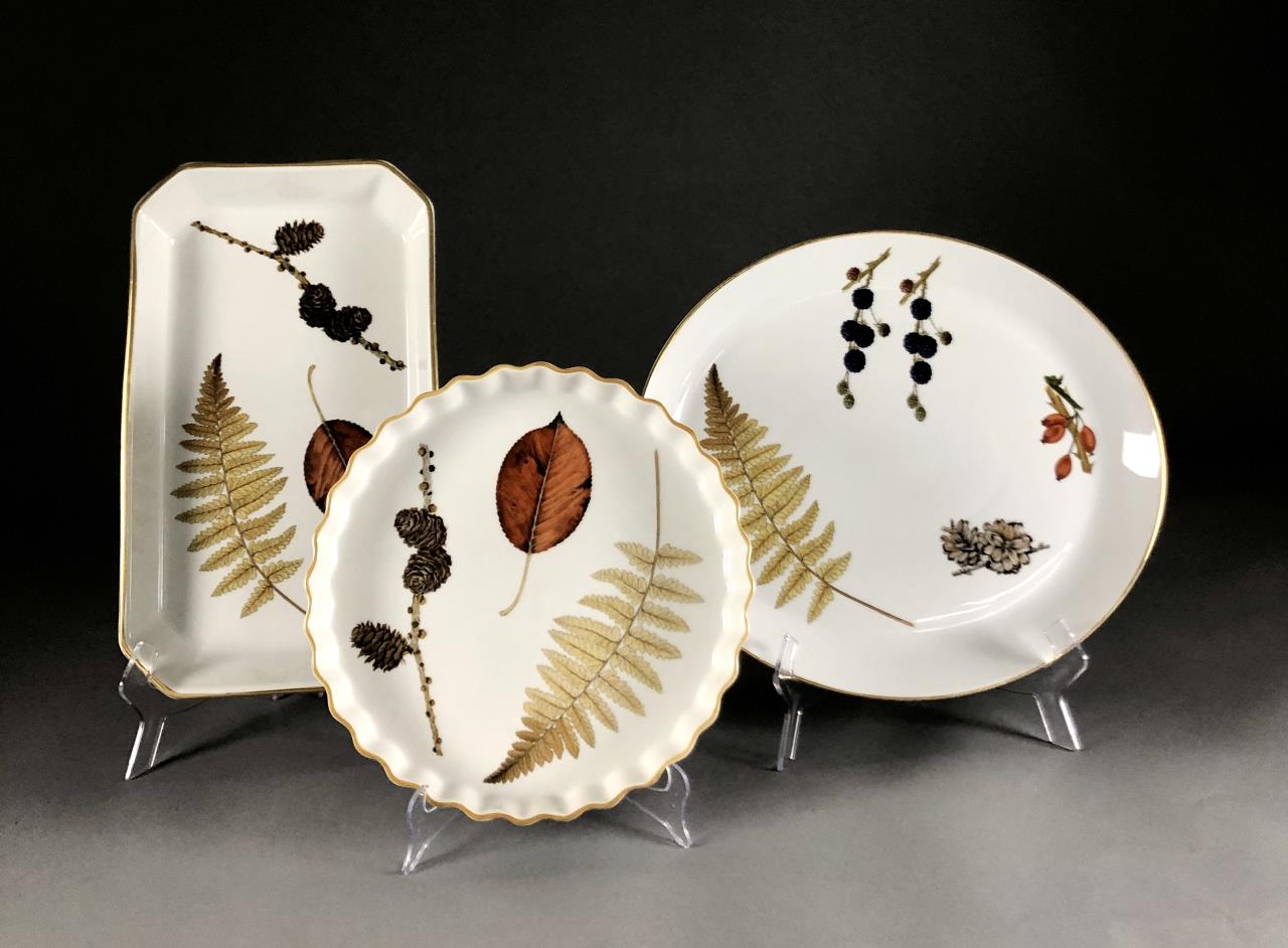 Royal Worcester serving pieces, in the “Wild Harvest Gold” pattern, all pieces are made in England, circa mid to late 20th Century. Includes: (1) 10-2/3″ quiche dish; (1) 14-5/8″ oval serving platter; (1) 14″ x 8-1/8″ rectangular serving dish. CONDITION: SHIPPING: In-House Shipping Available. Please read our Shipping Policies and Terms and Conditions