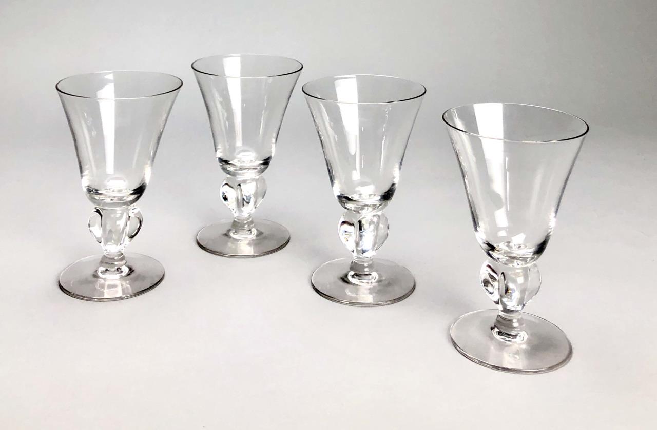 Four Seneca Glass Company water goblets, in the “Ingrid” pattern, 5-5/8″ in height. CONDITION: SHIPPING: In-House Shipping Available. Please read our Shipping Policies and Terms and Conditions
