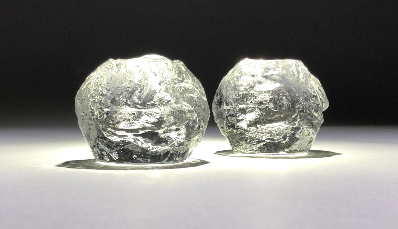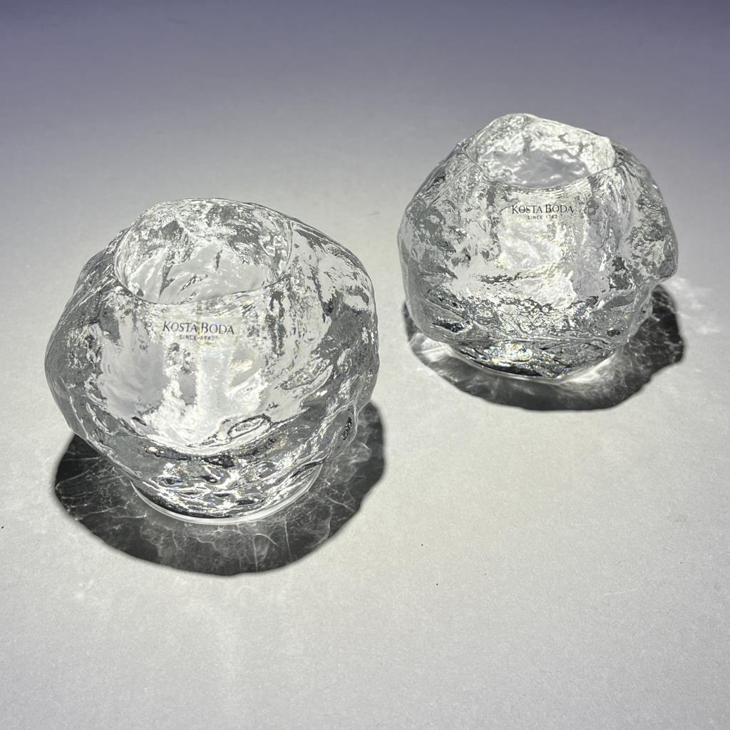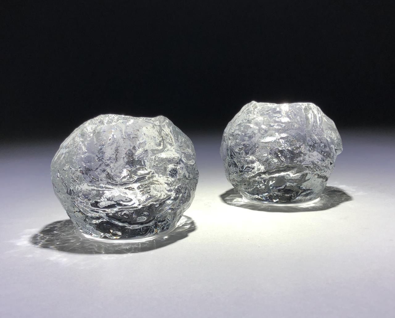 Two Kosta Boda snowball votive candle holders, designed by Ann Wolff (German/Swedish, B. 1937), introduced in 1973, each with label near rim and etched mark on bottom, approximately 2-7/8″ H. CONDITION: SHIPPING: In-House Shipping Available. Please read our Shipping Policies and Terms and Conditions