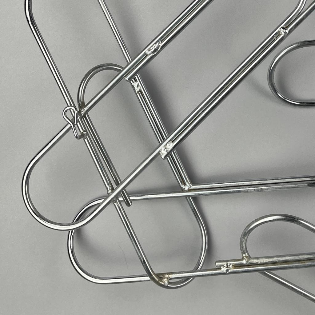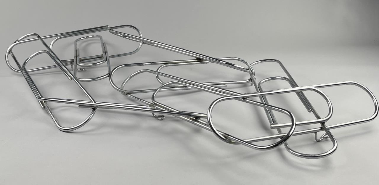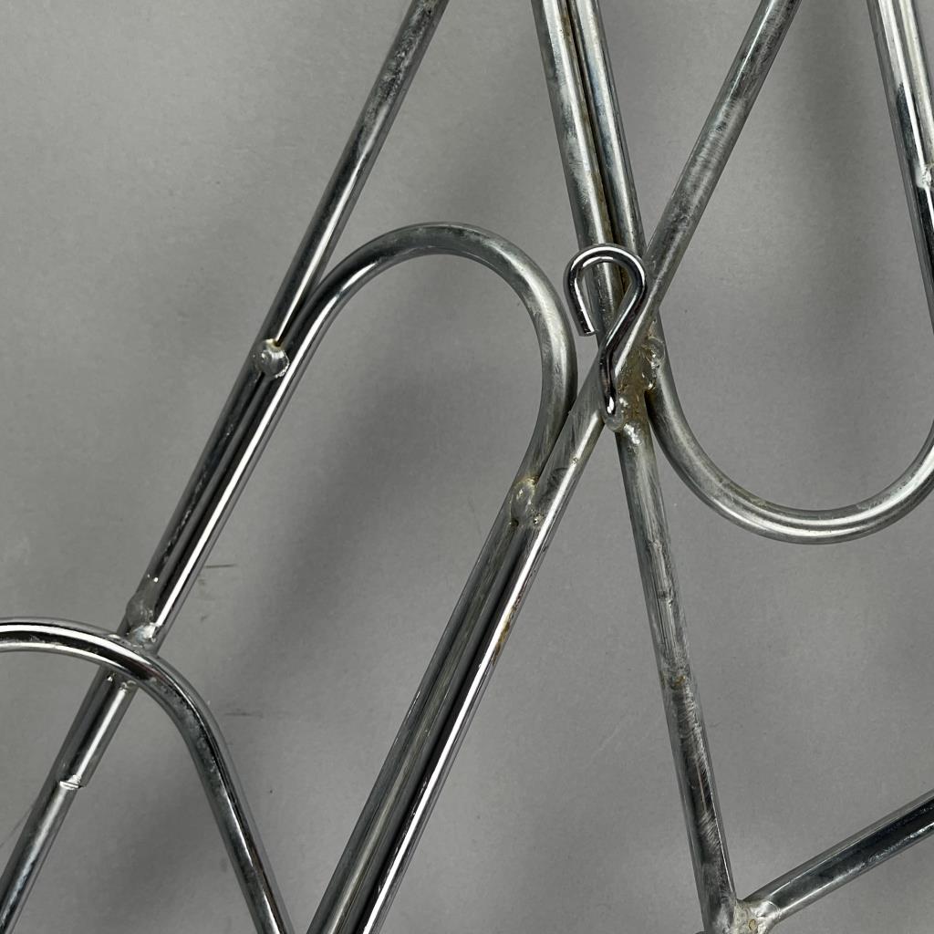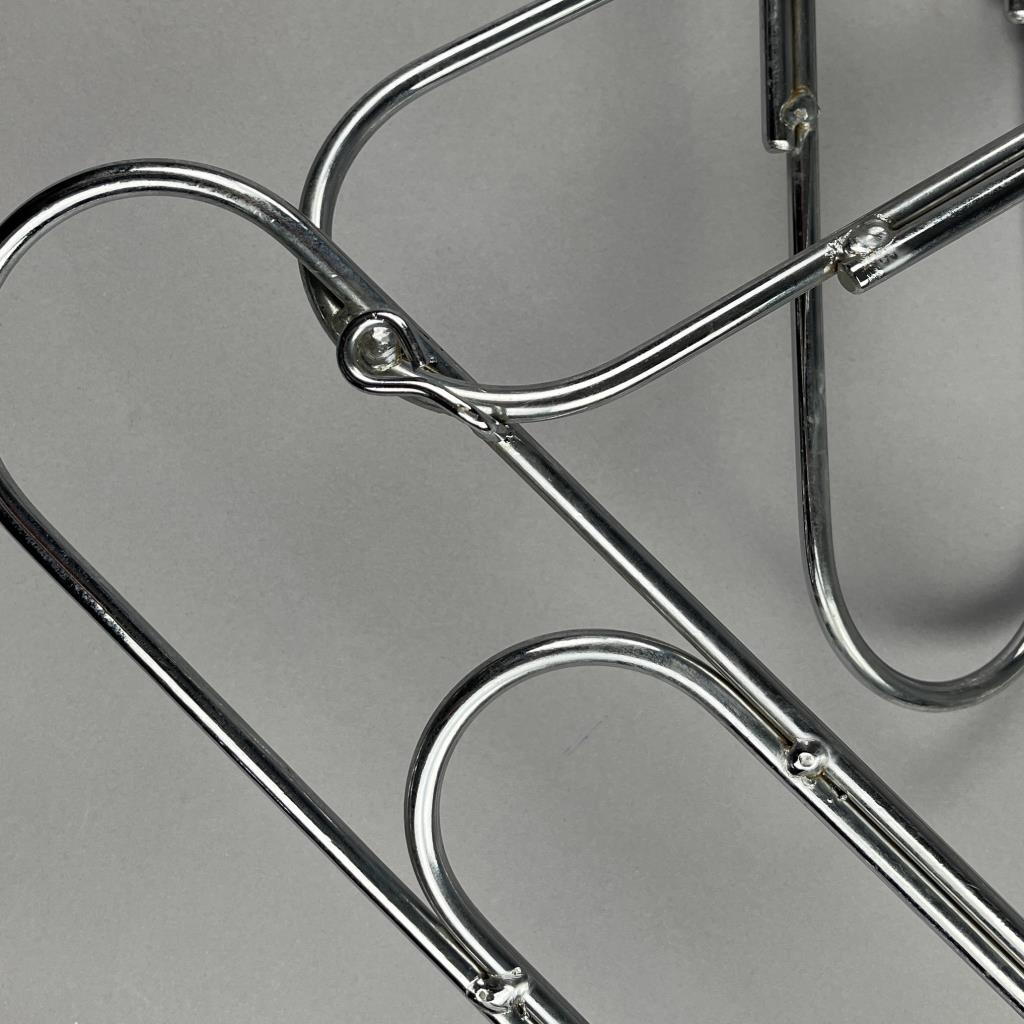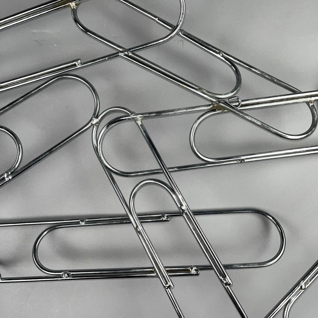 Mid Century Modern, Pop Art wall sculpture, titled “Paper Clip” by Curtis Jere and distributed through Artisan House. Both companies were established in the 1960s in Los Angles by Curtis Freiler (American, 1910 – 2013) and Jerry Fels (American, 1917 – 2008). Welded chrome with four loop hangers on the back, which allows the piece to be hung either horizontally or vertically, approximately 41″ x 23″ x 5″. CONDITION: SHIPPING: Local pick-up or third party shipping only for this lot. Please see the Shipping Policy for information on suggested shippers. We recommend the Pak Mail Store of Battle Creek to assist you. Please contact the shipper of your choice for shipping estimates on this lot. Refer to the Shipping section in our full Terms and Conditions for all information on shipping.