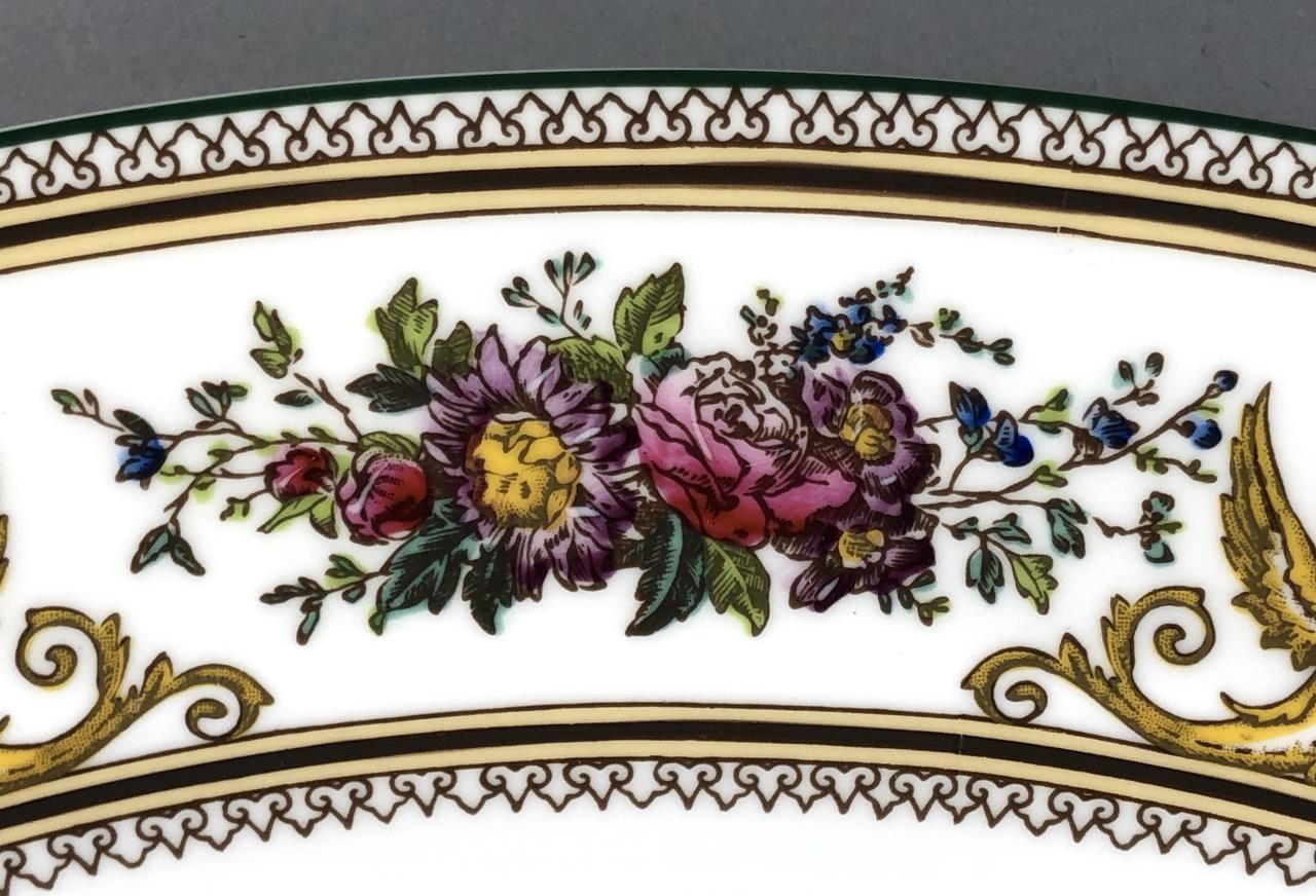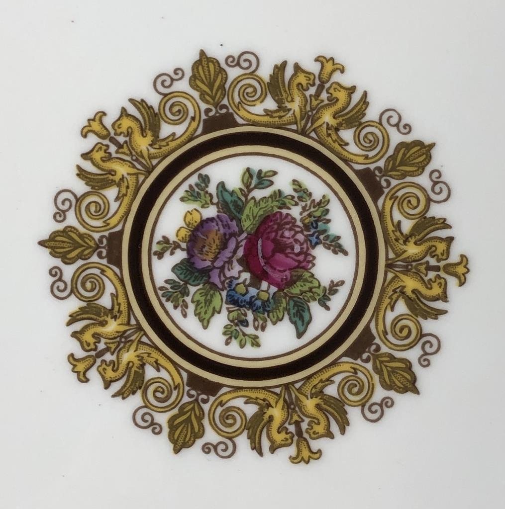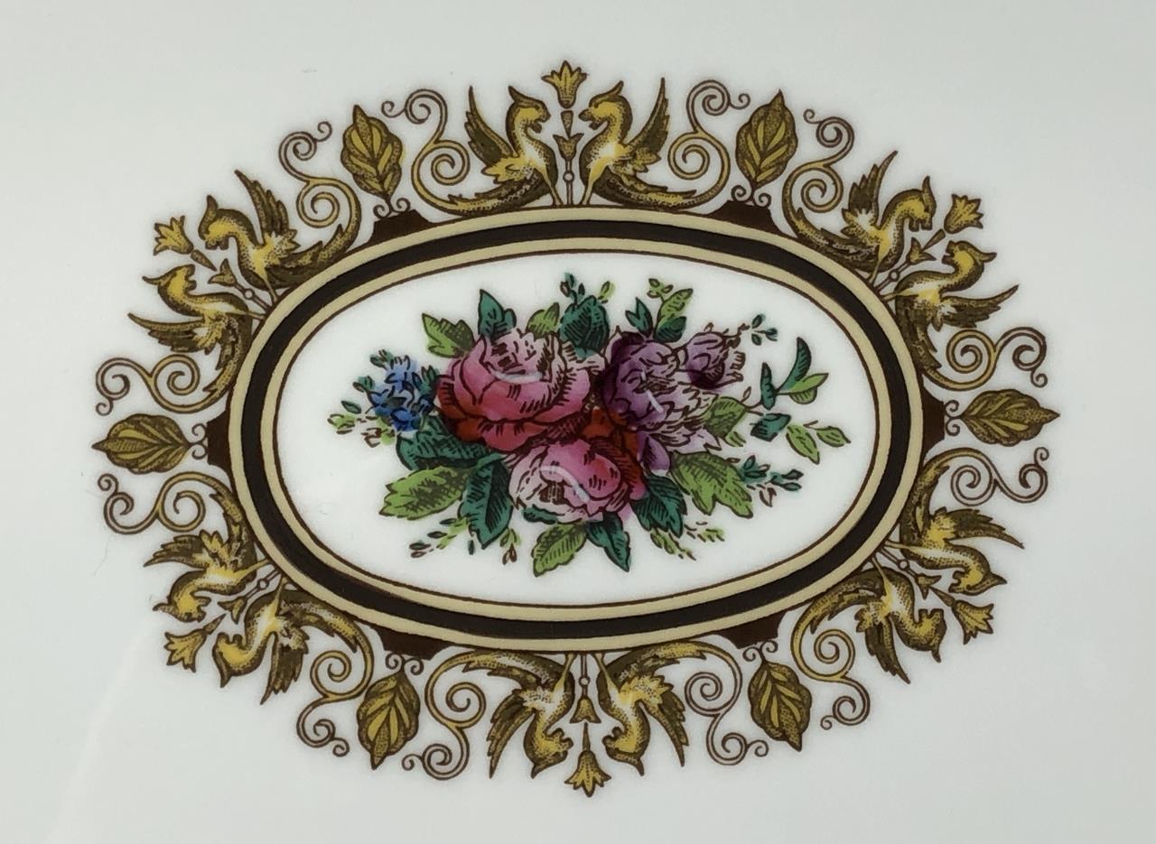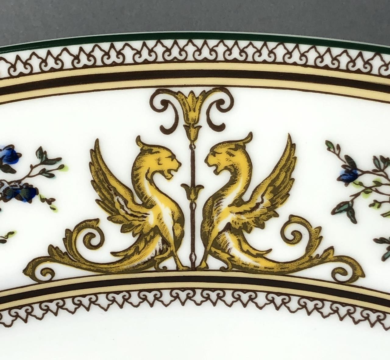 Hand painted Wedgwood oval platter (15-3/8″) and doubled handled square cake plate (11-1/8″), in the “Columbia” pattern, which was introduced in 1924 and discontinued in 1997. CONDITION: SHIPPING: In-House Shipping Available. Please read our Shipping Policies and Terms and Conditions