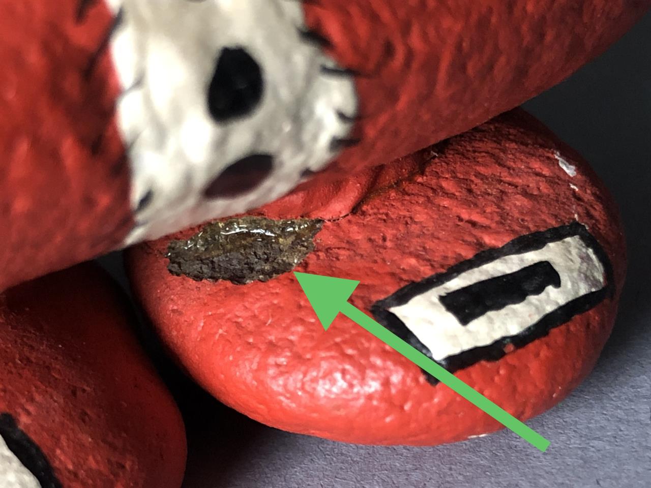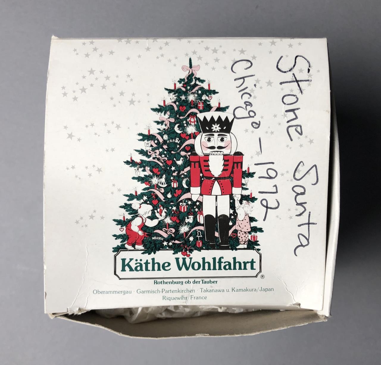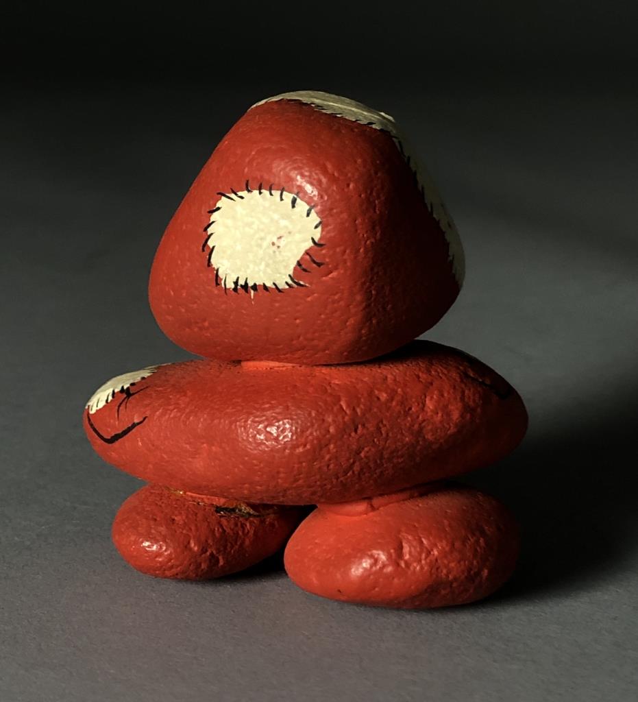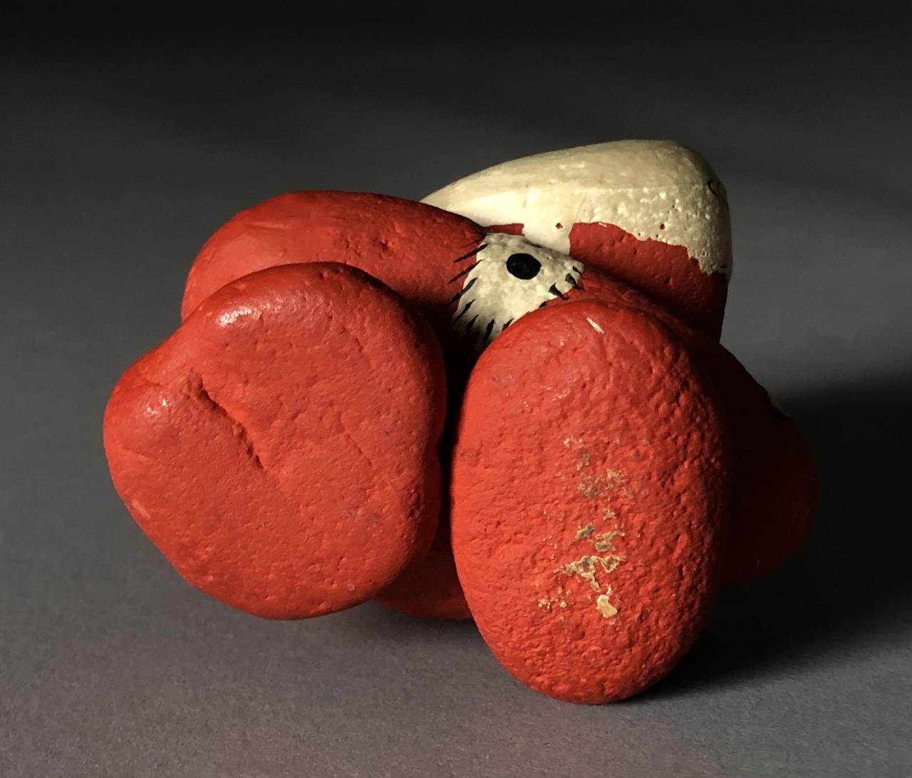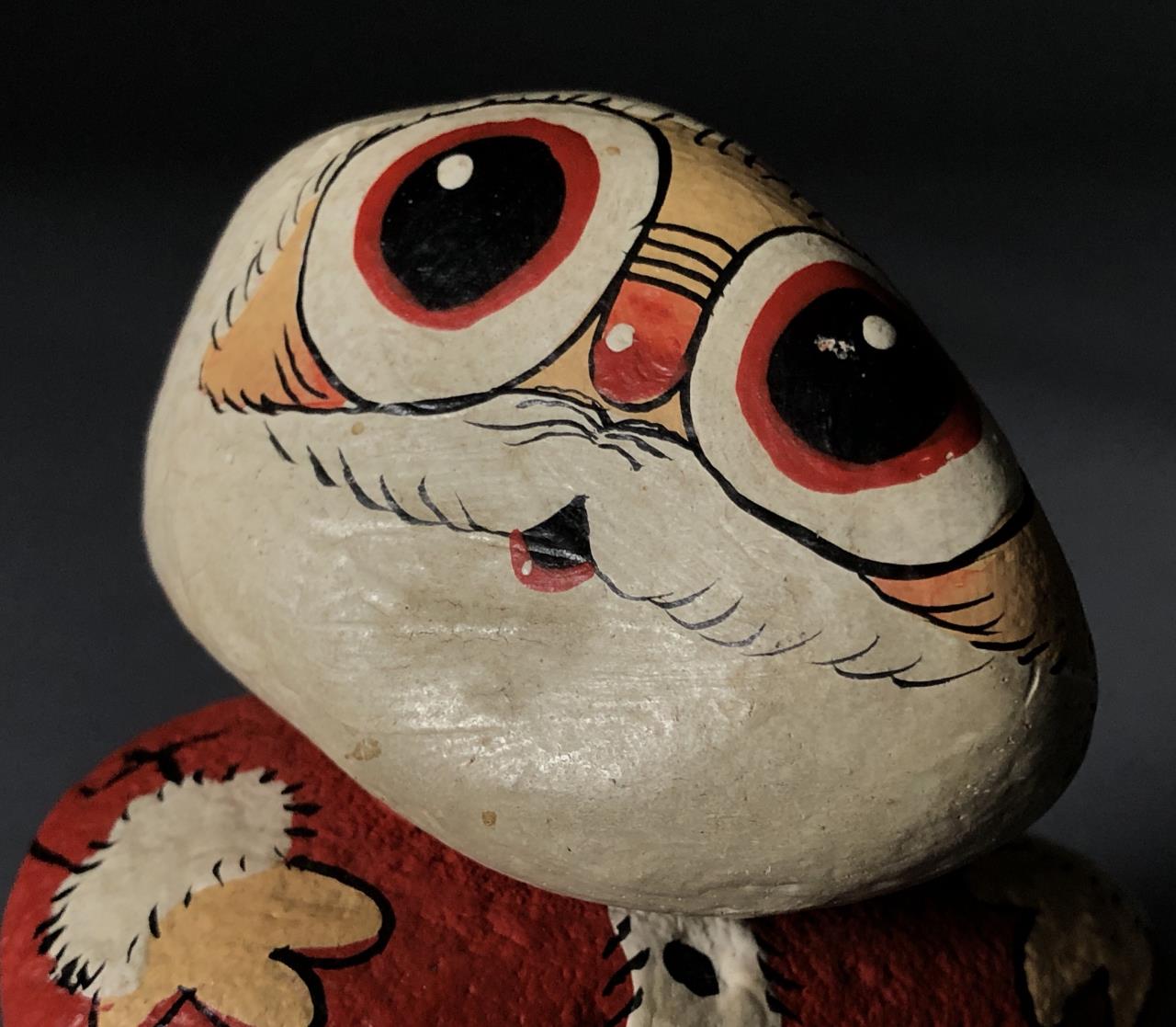 Hand painted rock art, depicting a Santa, attributed to Stoney Maloney and painted by Rune Manning (American, B. 1938), circa early 1970s, approximately 3″ in height, in a box with a notation that it was purchased in Chicago in 1972. CONDITION: Small chip on the top of one foot where it connects with another rock, please see last photo. SHIPPING: In-House Shipping Available. Please read our Shipping Policies and Terms and Conditions