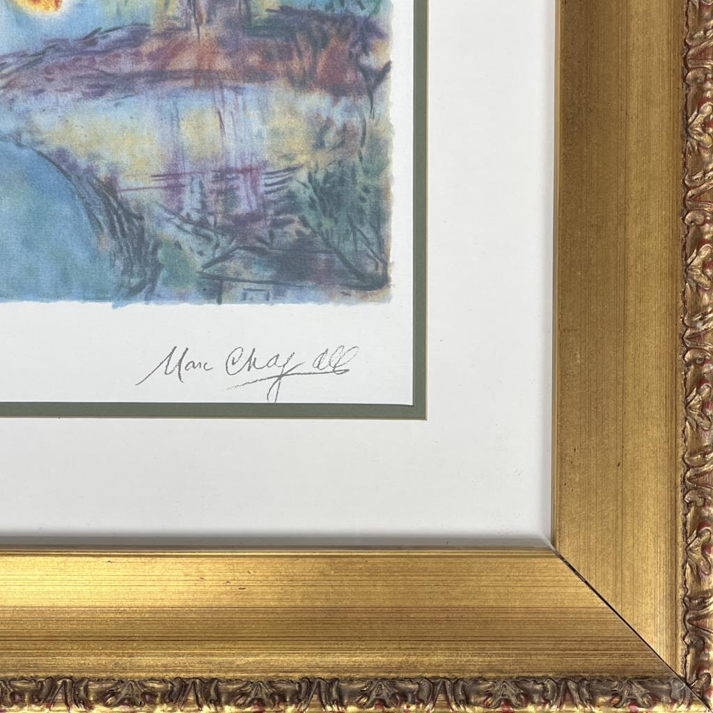 Marc Chagall (Russian/French/American, 1887 – 1985), “Floral Bouquet,” numbered limited edition lithograph (I 343/500), with printed facsimile signature, in a gilt and black painted gesso and wood frame measuring 35-3/16″ x 41-3/4″. CONDITION: Not examined out of frame. Some minor chipping and separating at corners of frame. SHIPPING: Local pick-up or third party shipping only for this lot. Please see the Shipping Policy for information on suggested shippers. We recommend the Pak Mail Store of Battle Creek to assist you. Please contact the shipper of your choice for shipping estimates on this lot. Refer to the Shipping section in our full Terms and Conditions for all information on shipping.