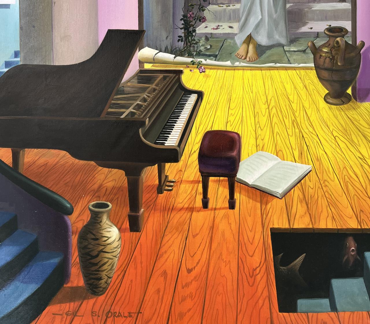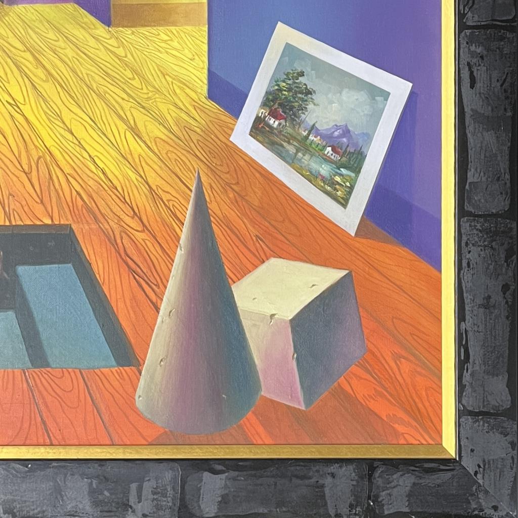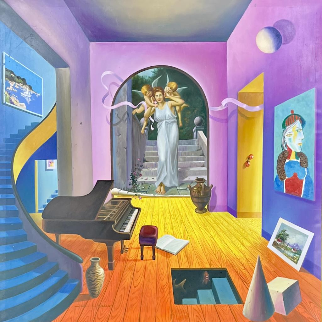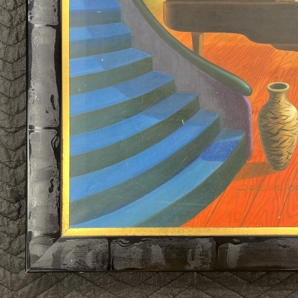 Copy of “Picasso & Angels,” the surrealist work by Alexander Astahov (Russian, b. 1955), oil on stretched canvas, signed lower left “Gil S. Orale,” in a black painted wood frame measuring 43-7/16″ square. Includes an undated appraisal. CONDITION: Scratching and flaking to artwork in upper left corner. Scratching and chipping to frame. Please see last photos. SHIPPING: Local pick-up or third party shipping only for this lot. Please see the Shipping Policy for information on suggested shippers. We recommend the Pak Mail Store of Battle Creek to assist you. Please contact the shipper of your choice for shipping estimates on this lot. Refer to the Shipping section in our full Terms and Conditions for all information on shipping.