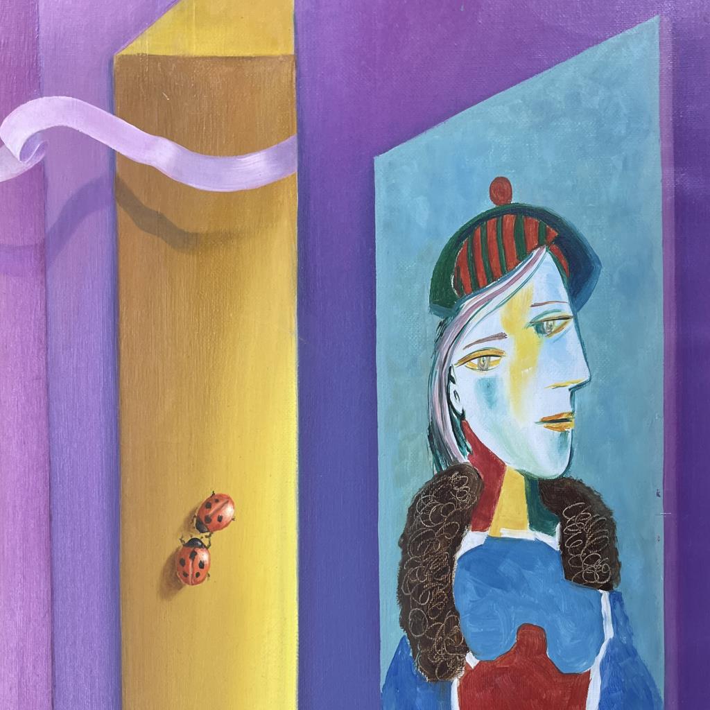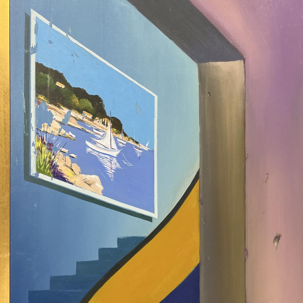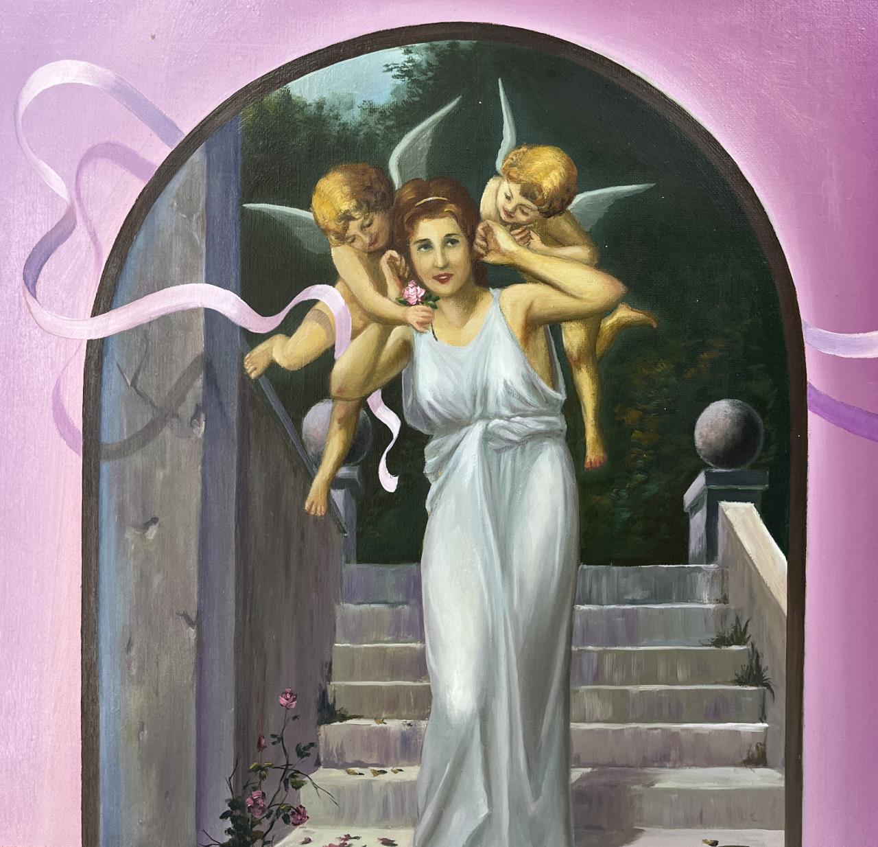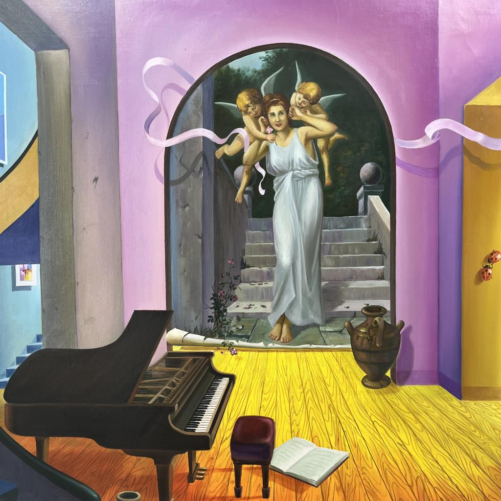 Copy of “Picasso & Angels,” the surrealist work by Alexander Astahov (Russian, b. 1955), oil on stretched canvas, signed lower left “Gil S. Orale,” in a black painted wood frame measuring 43-7/16″ square. Includes an undated appraisal. CONDITION: Scratching and flaking to artwork in upper left corner. Scratching and chipping to frame. Please see last photos. SHIPPING: Local pick-up or third party shipping only for this lot. Please see the Shipping Policy for information on suggested shippers. We recommend the Pak Mail Store of Battle Creek to assist you. Please contact the shipper of your choice for shipping estimates on this lot. Refer to the Shipping section in our full Terms and Conditions for all information on shipping.