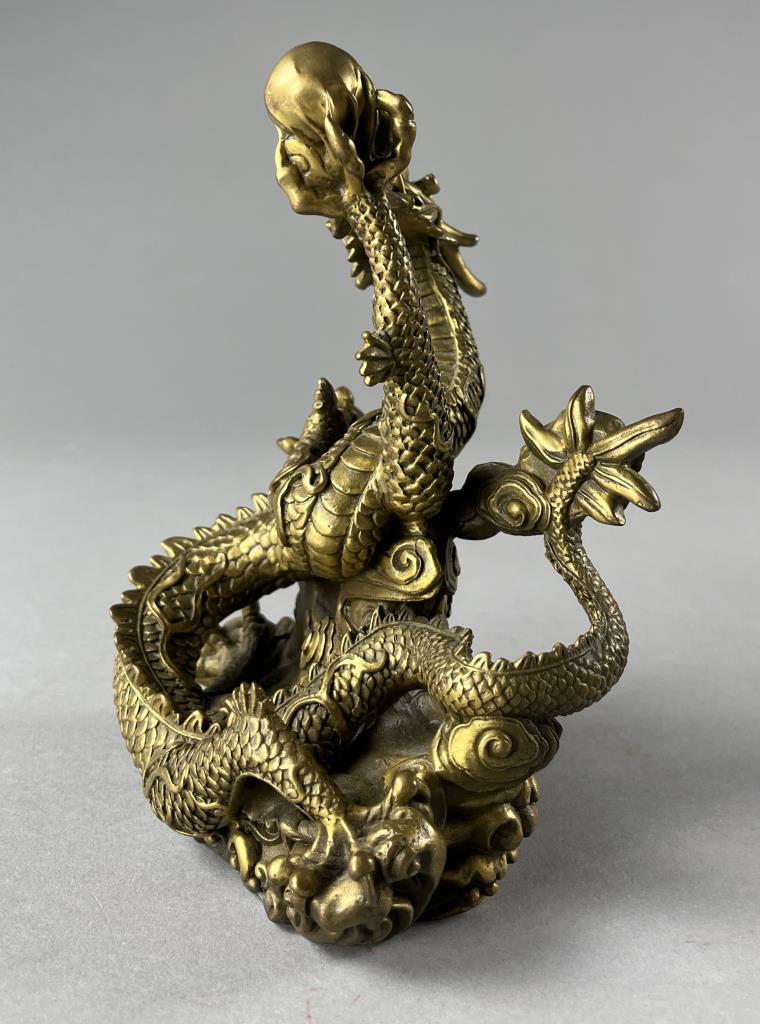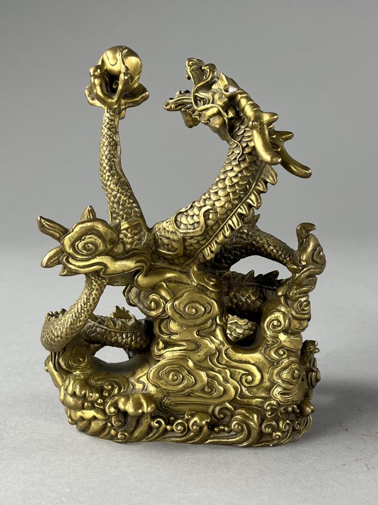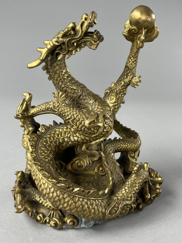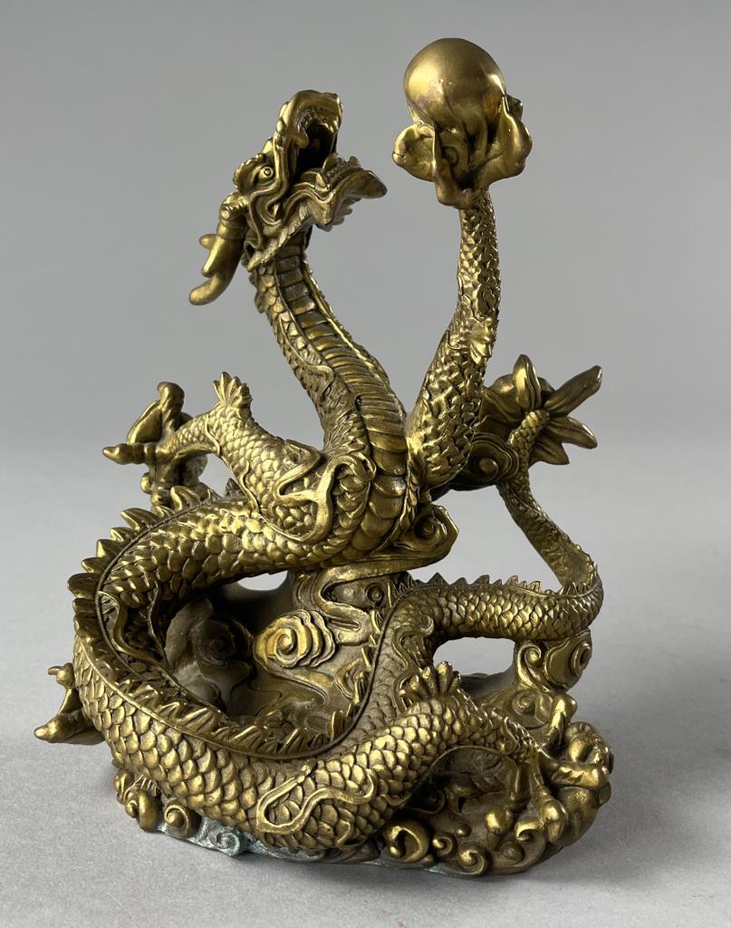Brass Dragon Grasping the Pearl of Wisdom Figure