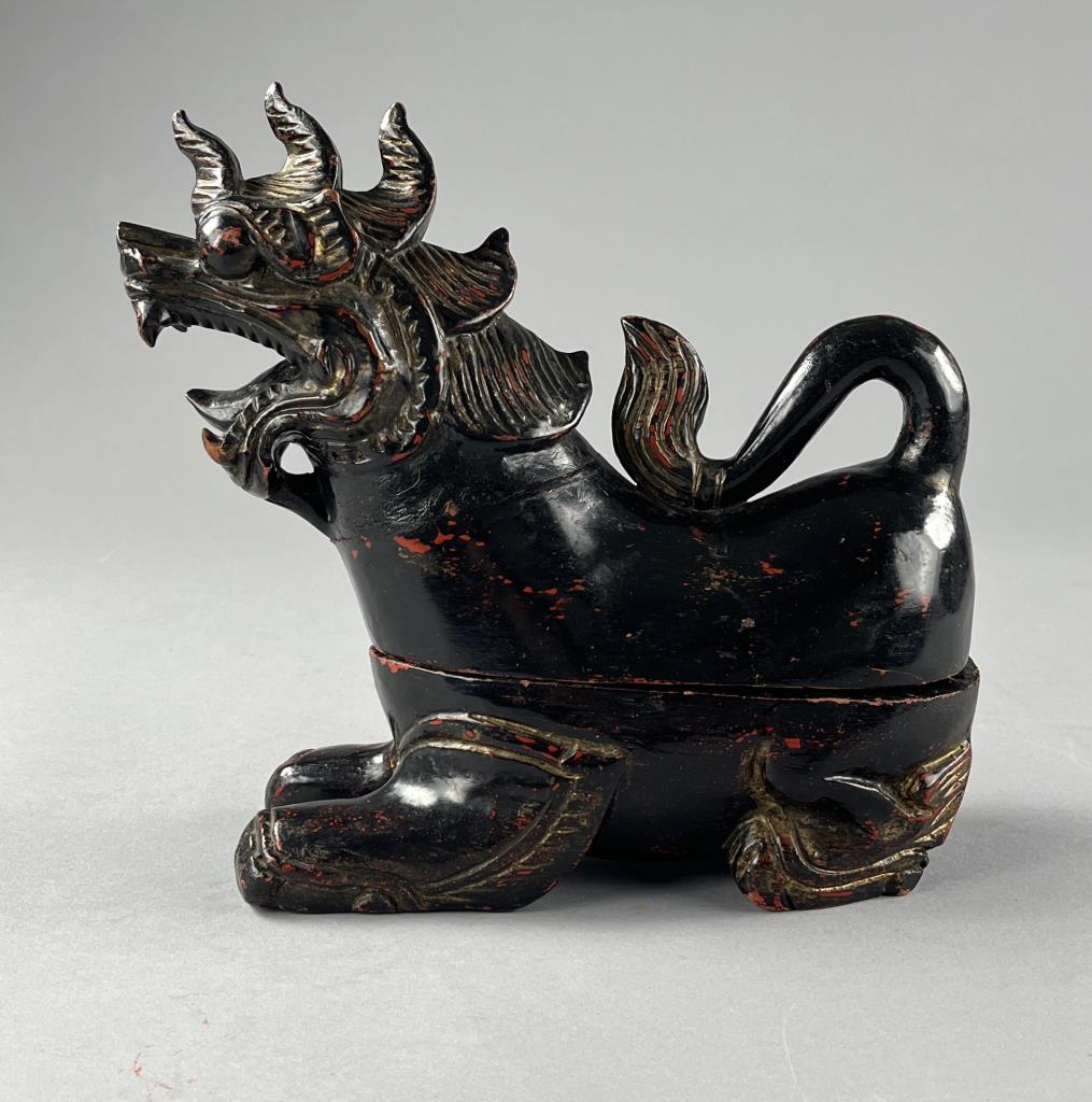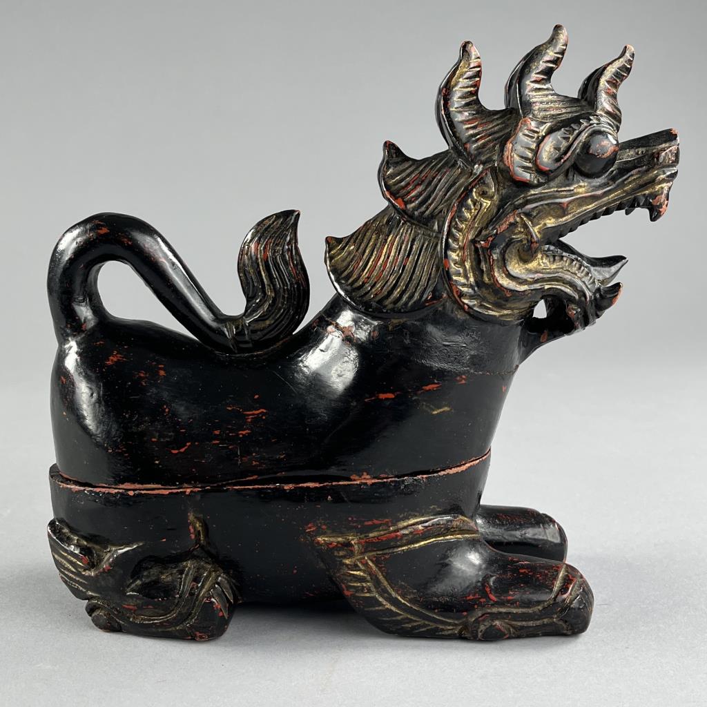 Edo Style Carved Wood Shishi or Foo Dog Box