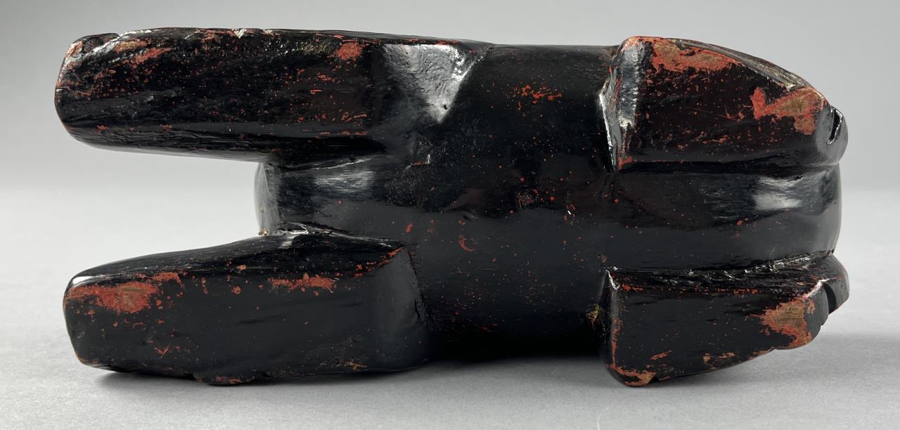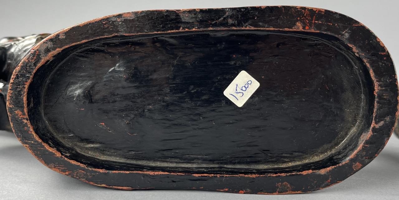 Japanese Edo style Shishi, also known as a foo dog or lion dog, painted and gilded carved wood, in the form of a box with a detachable lid, approximately 10″ x 3-1/3″ x 9-1/4″. CONDITION: Some minor chipping and loss to surface, especially at edges. SHIPPING: In-House Shipping Available. Please read our Shipping Policies and Terms and Conditions