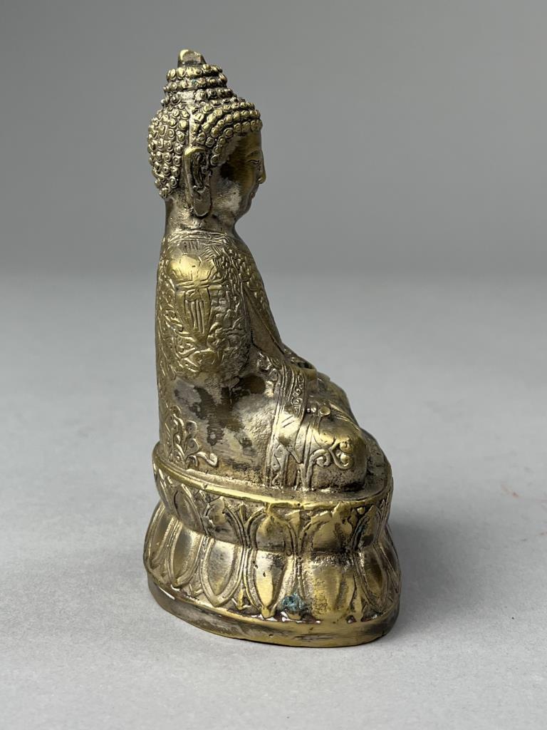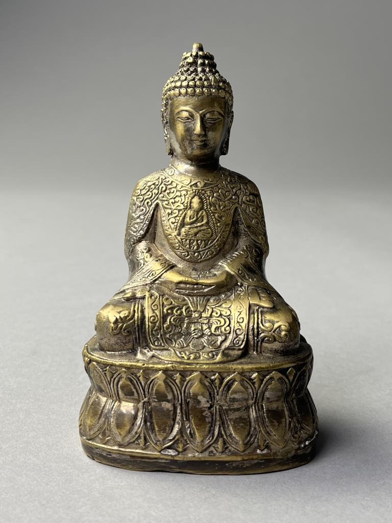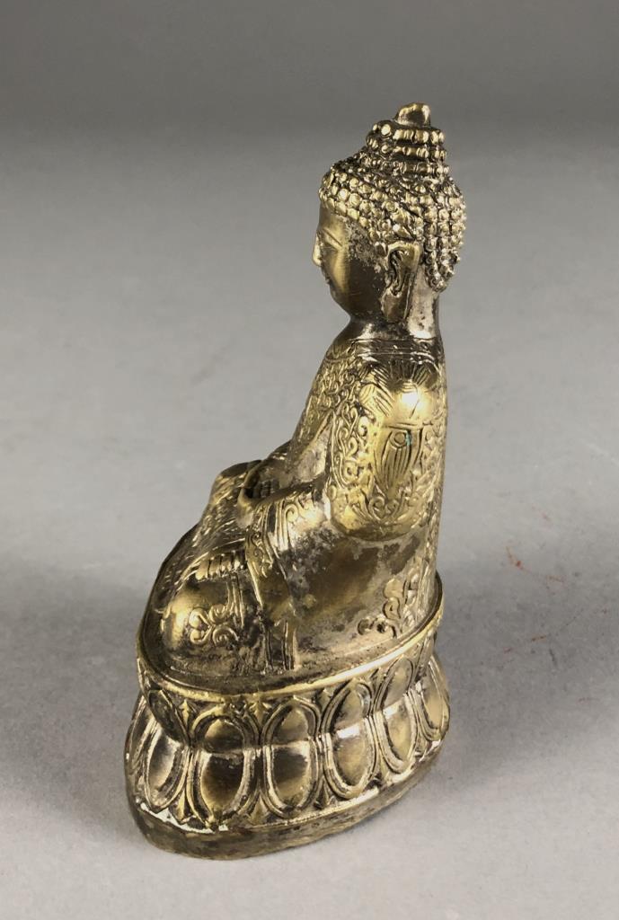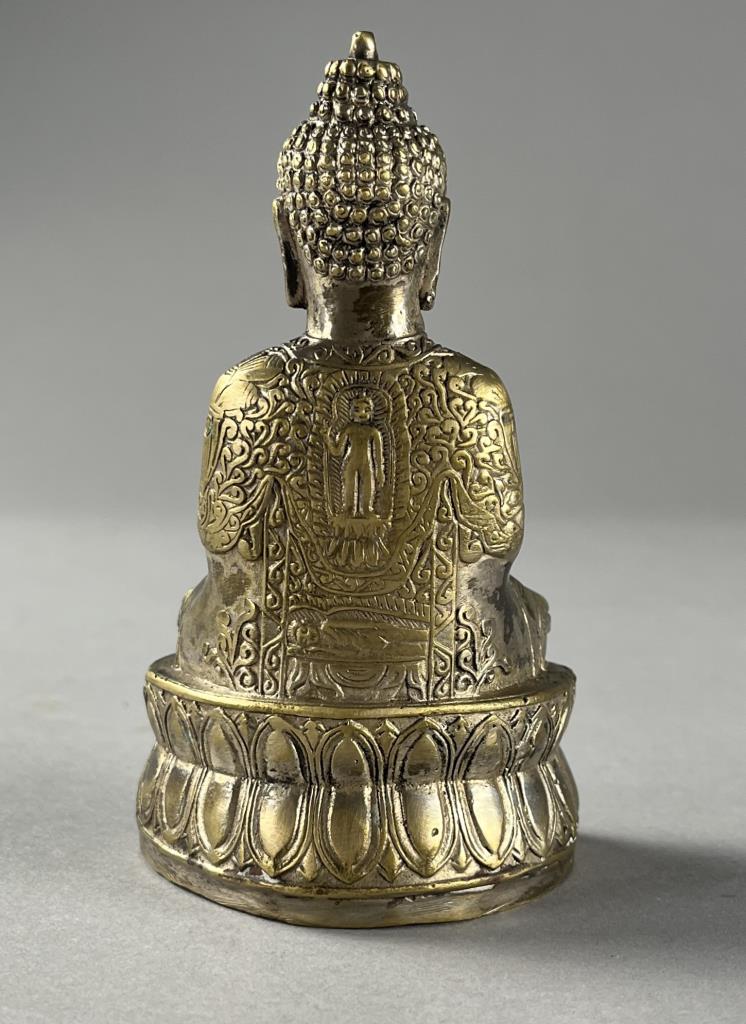 Sino Tibetan figure of the Buddha, seated atop a lotus base, hallmark on base, 4-3/5″ H. CONDITION: SHIPPING: In-House Shipping Available. Please read our Shipping Policies and Terms and Conditions