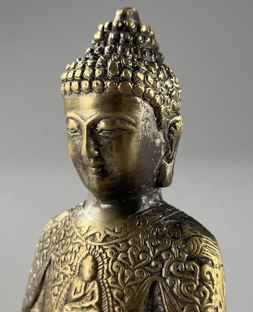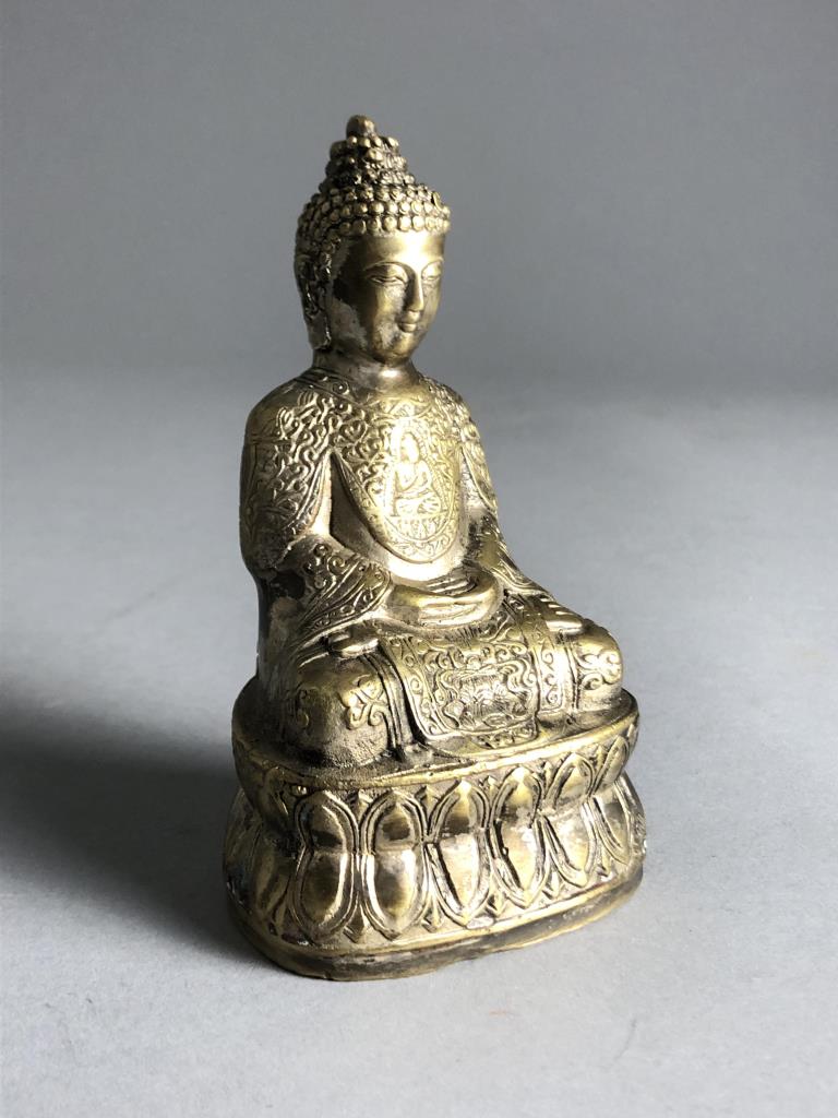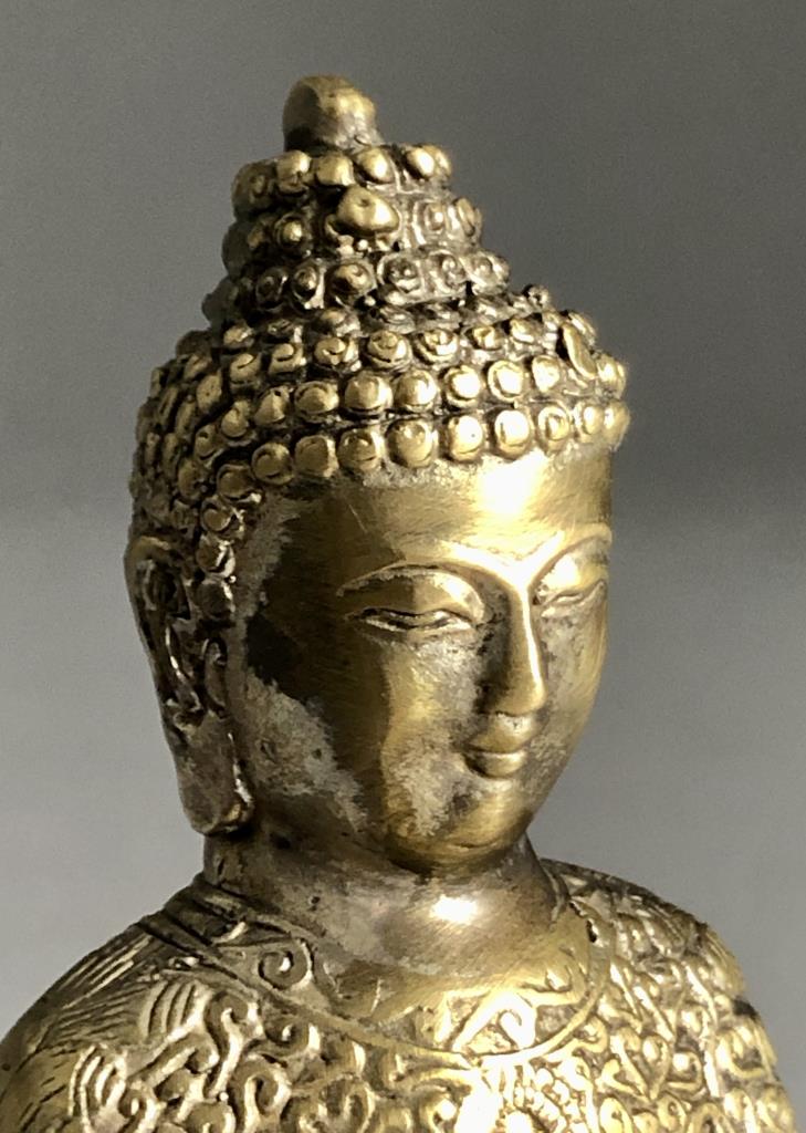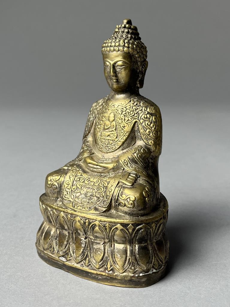 Sino Tibetan figure of the Buddha, seated atop a lotus base, hallmark on base, 4-3/5″ H. CONDITION: SHIPPING: In-House Shipping Available. Please read our Shipping Policies and Terms and Conditions